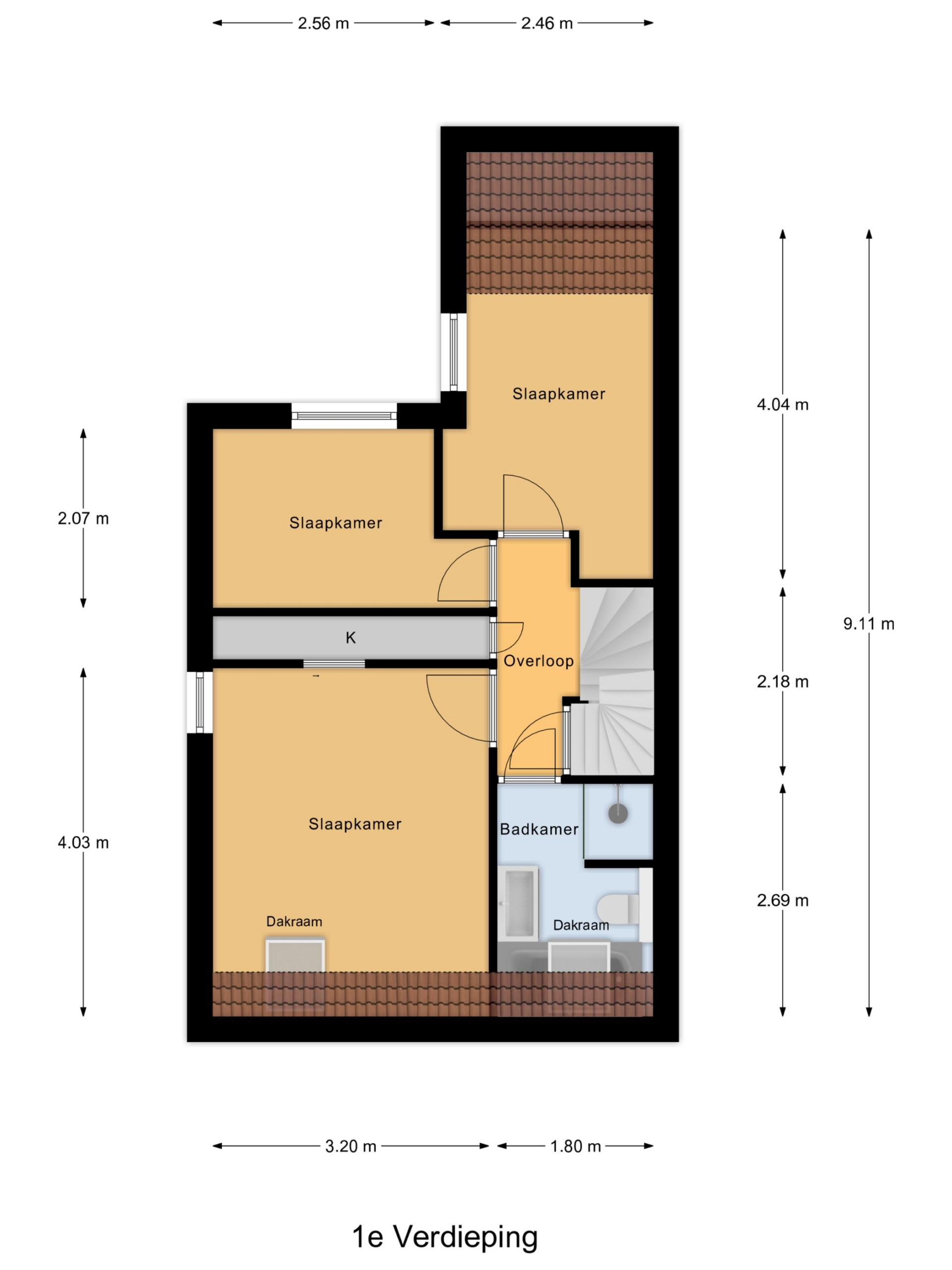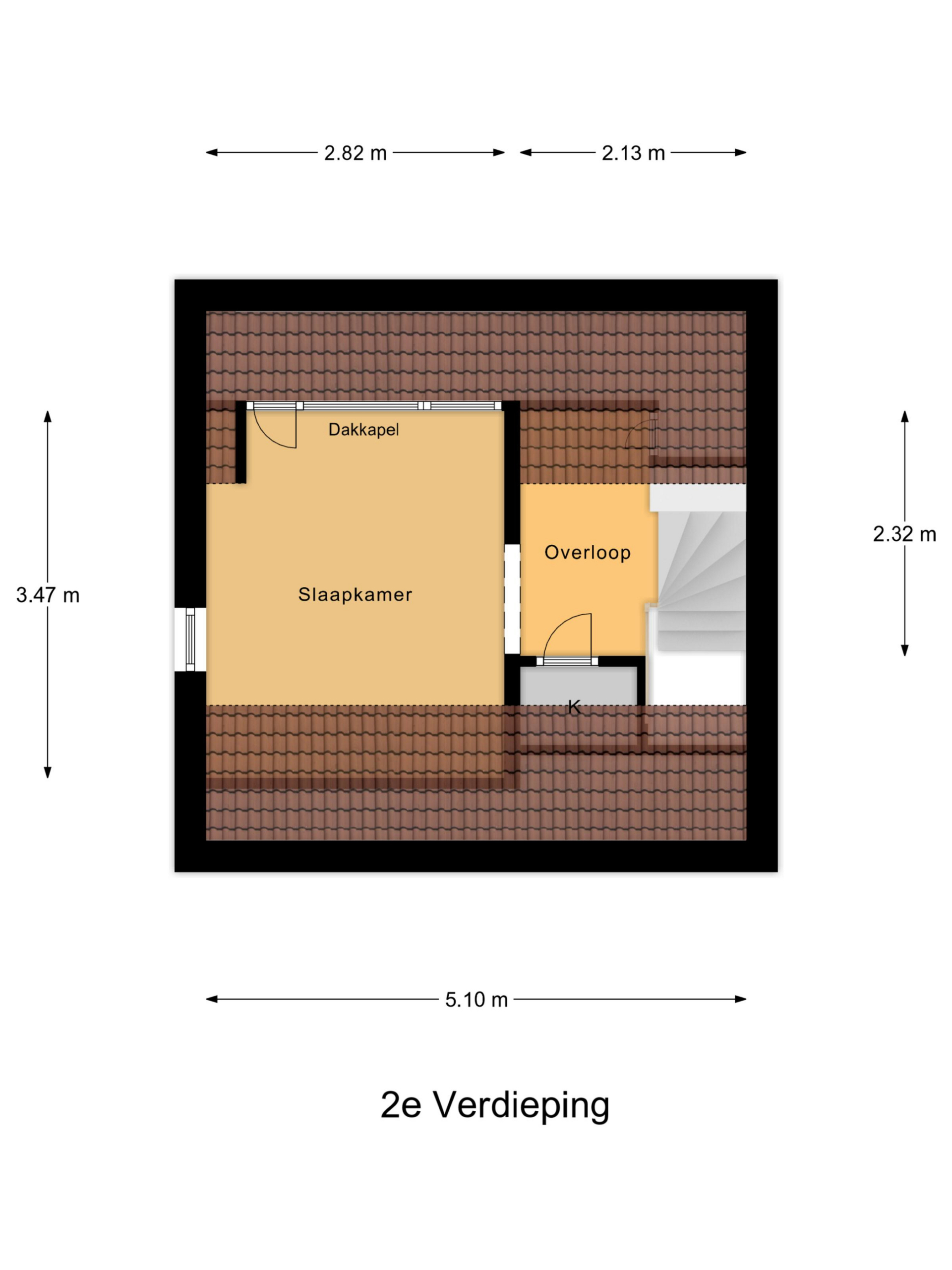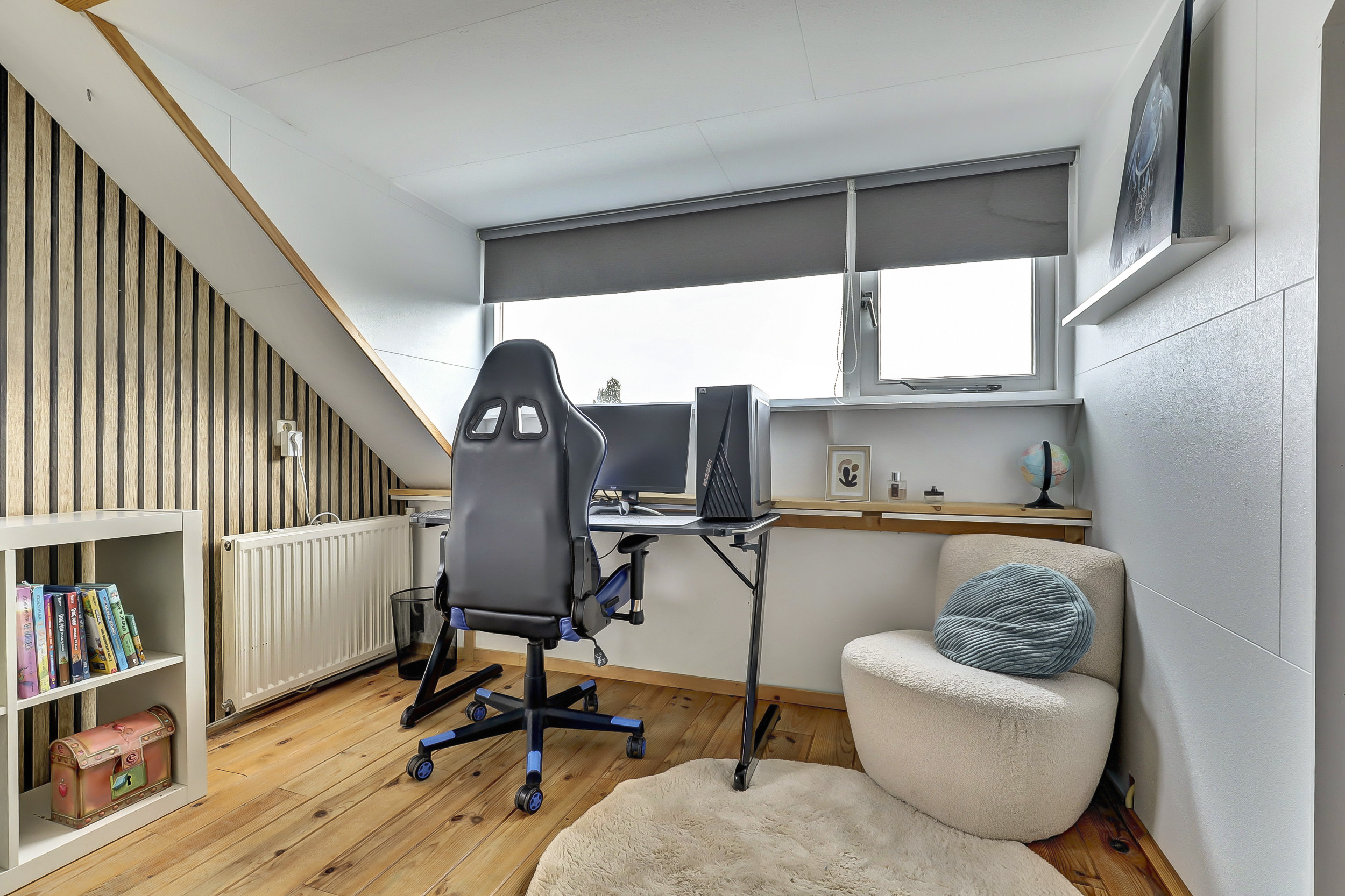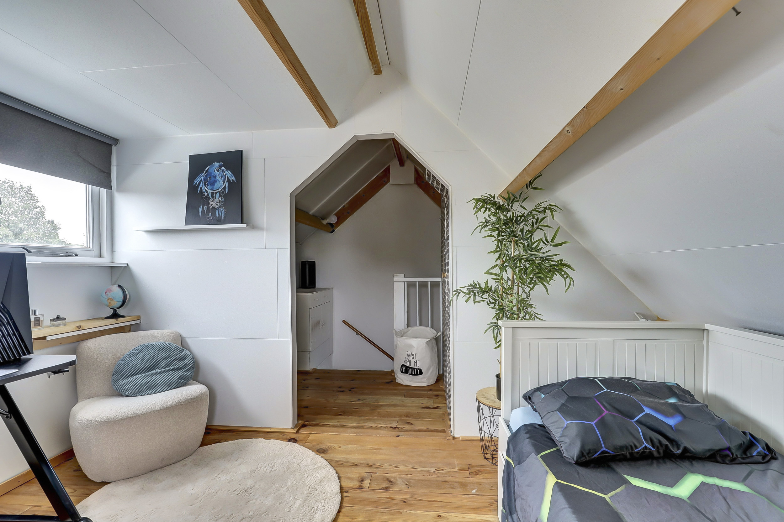 Tweede verdieping: open zolderruimte, 4e slaapkamer met dakkapel. Verder is er veel opbergruimte achter de knieschotten.