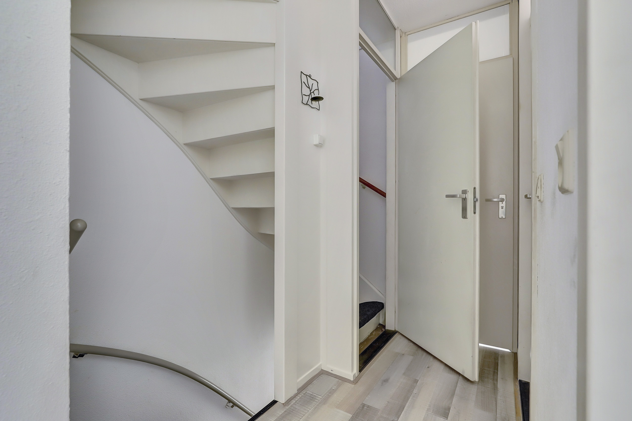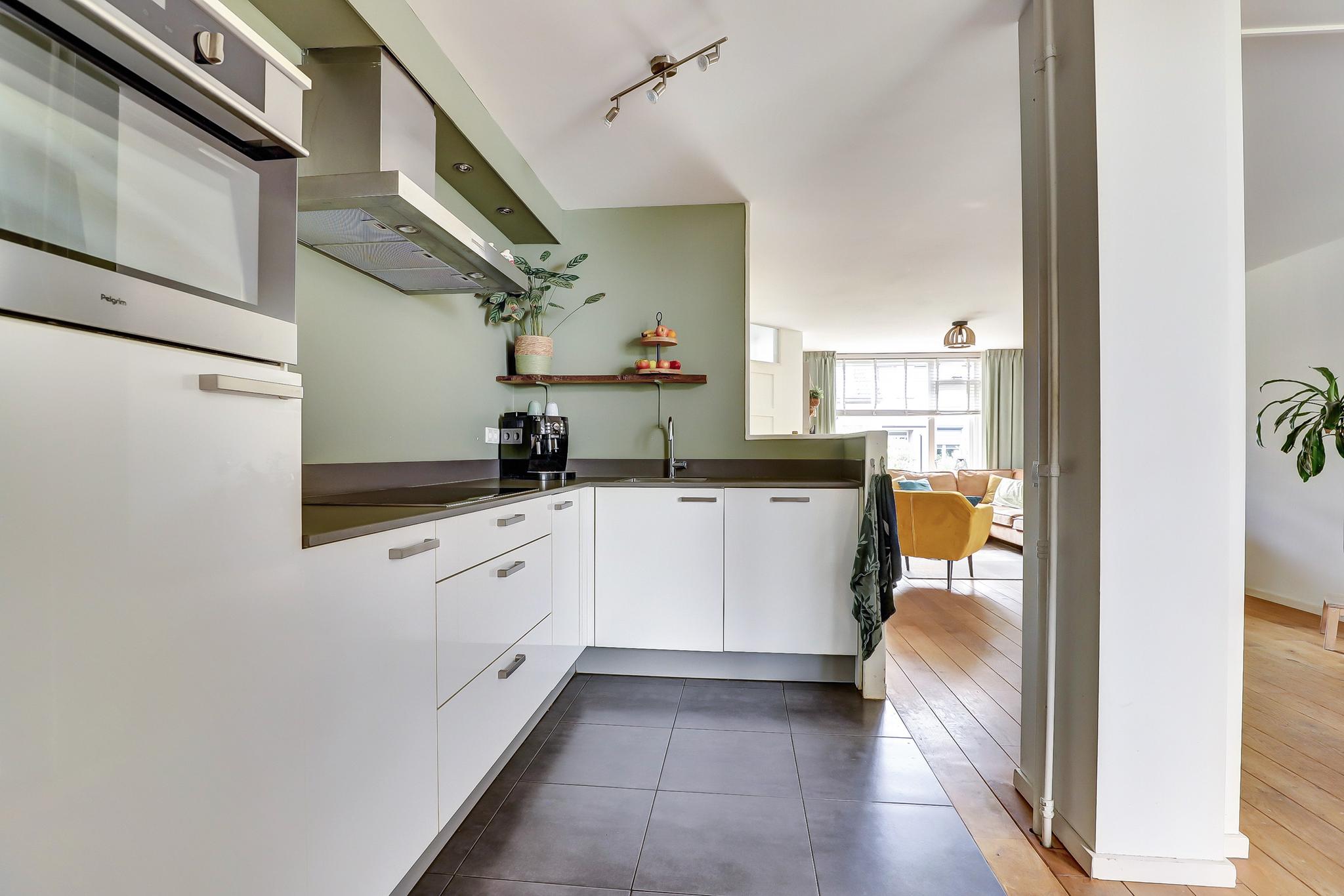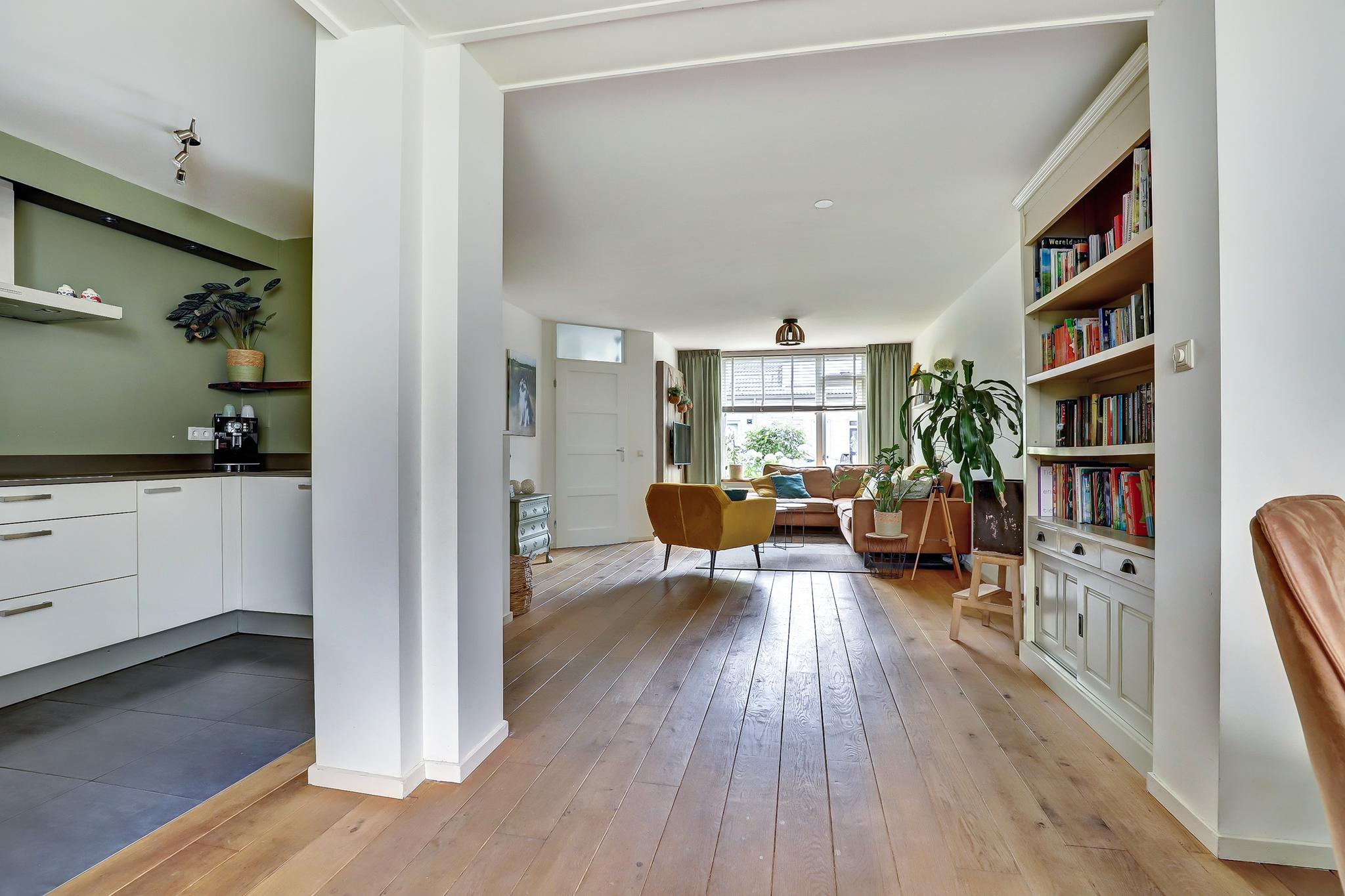 Begane grond: entree/hal, wc, vernieuwde meterkast, ruime uitgebouwde woonkamer, in 2017 vernieuwde open keuken met diverse inbouwapparatuur, bijkeuken met wasmachine-aansluiting en cv-ketel (2012).
