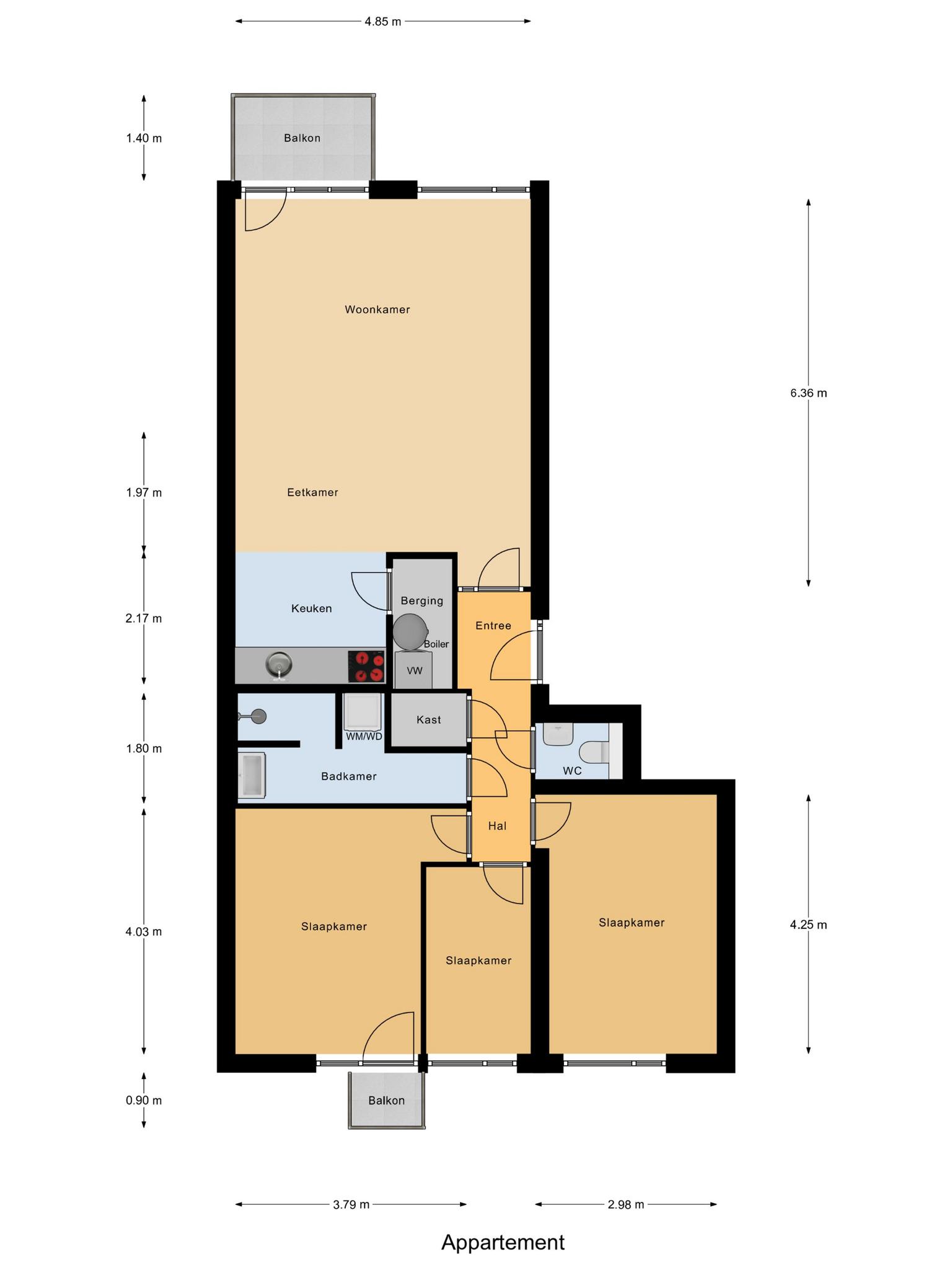 - de keuken is voorzien van een koelkast, een keramische kookplaat en een afzuigkap