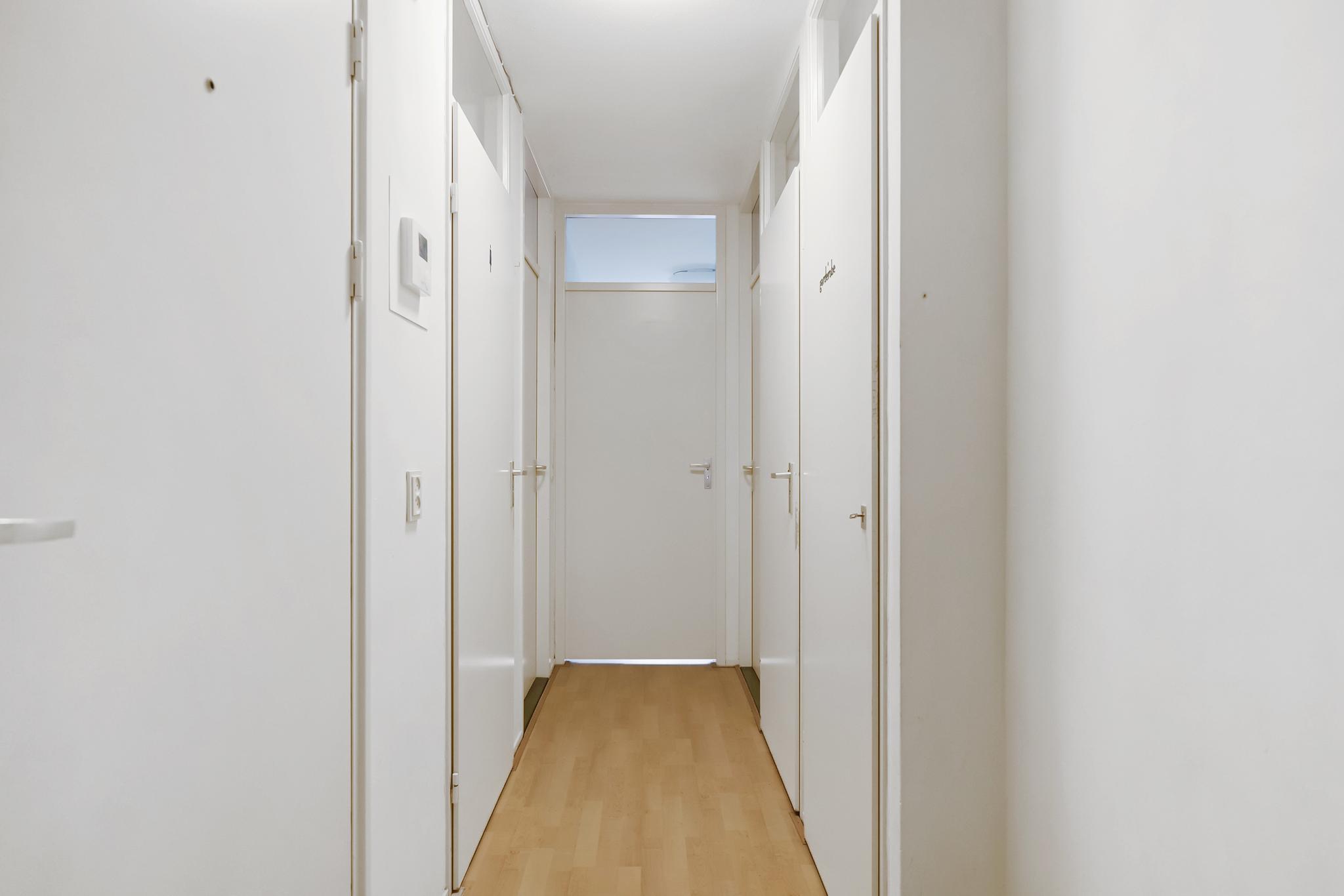 Begane grond: gezamenlijke entree, toegang tot de berging in het souterrain, meterkast, voordeur op de 1e woonlaag.