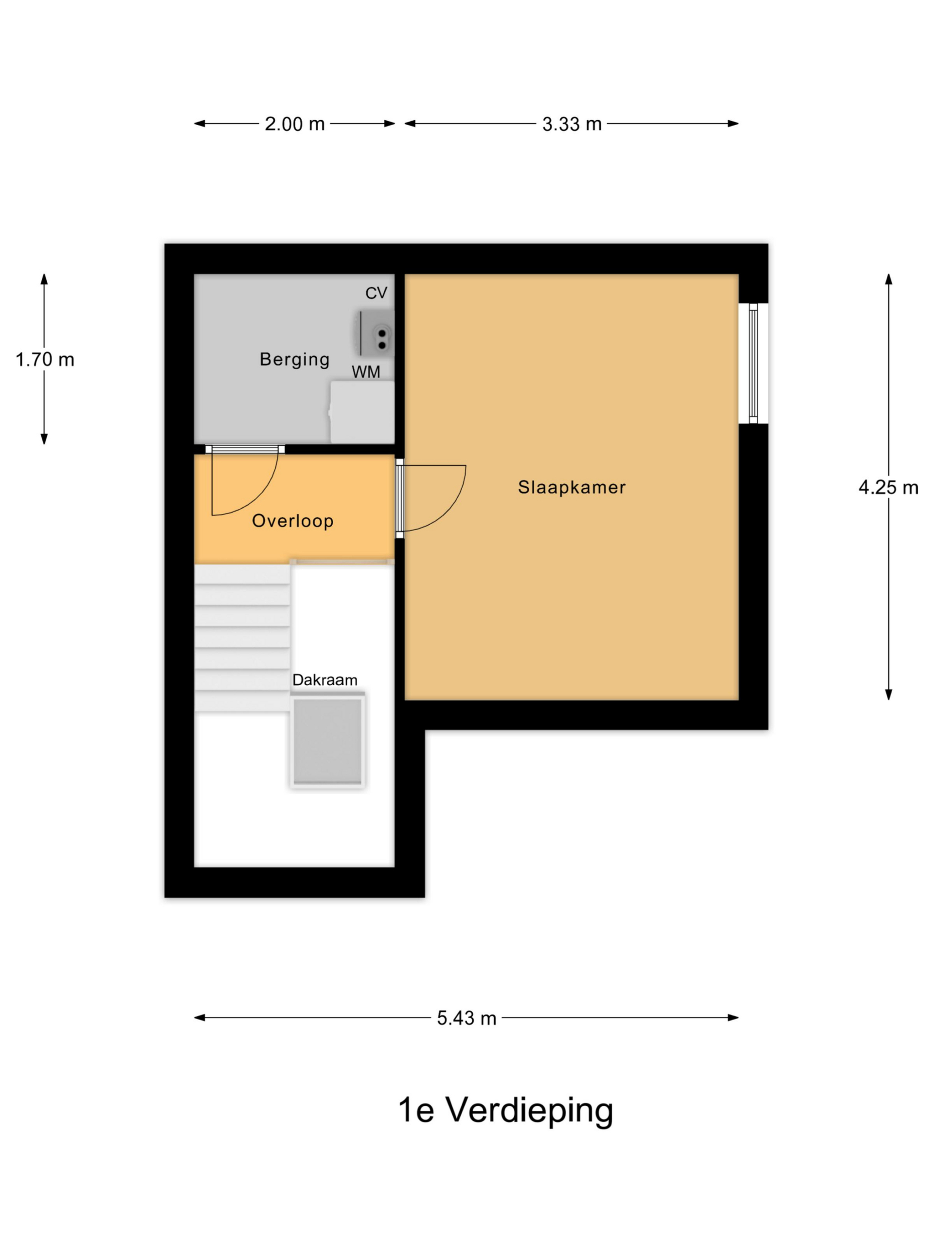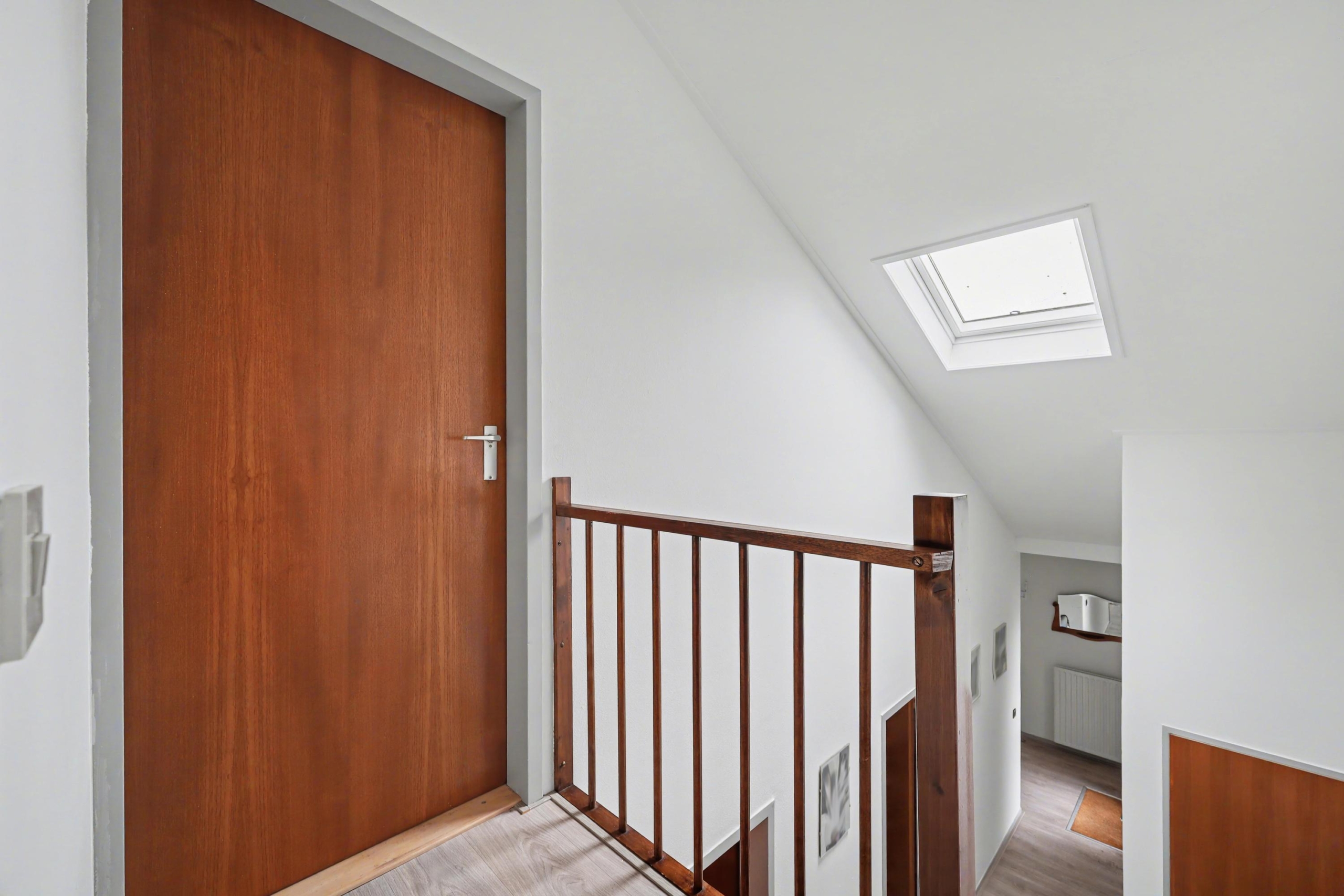 Eerste verdieping: overloop met vide, bergkast met cv-ketel (Atag HR 2021) en wasmachine-aansluiting, slaapkamer III.