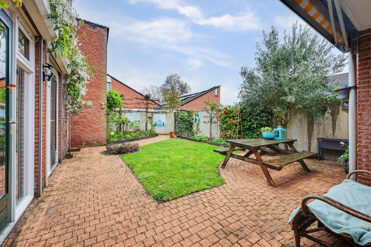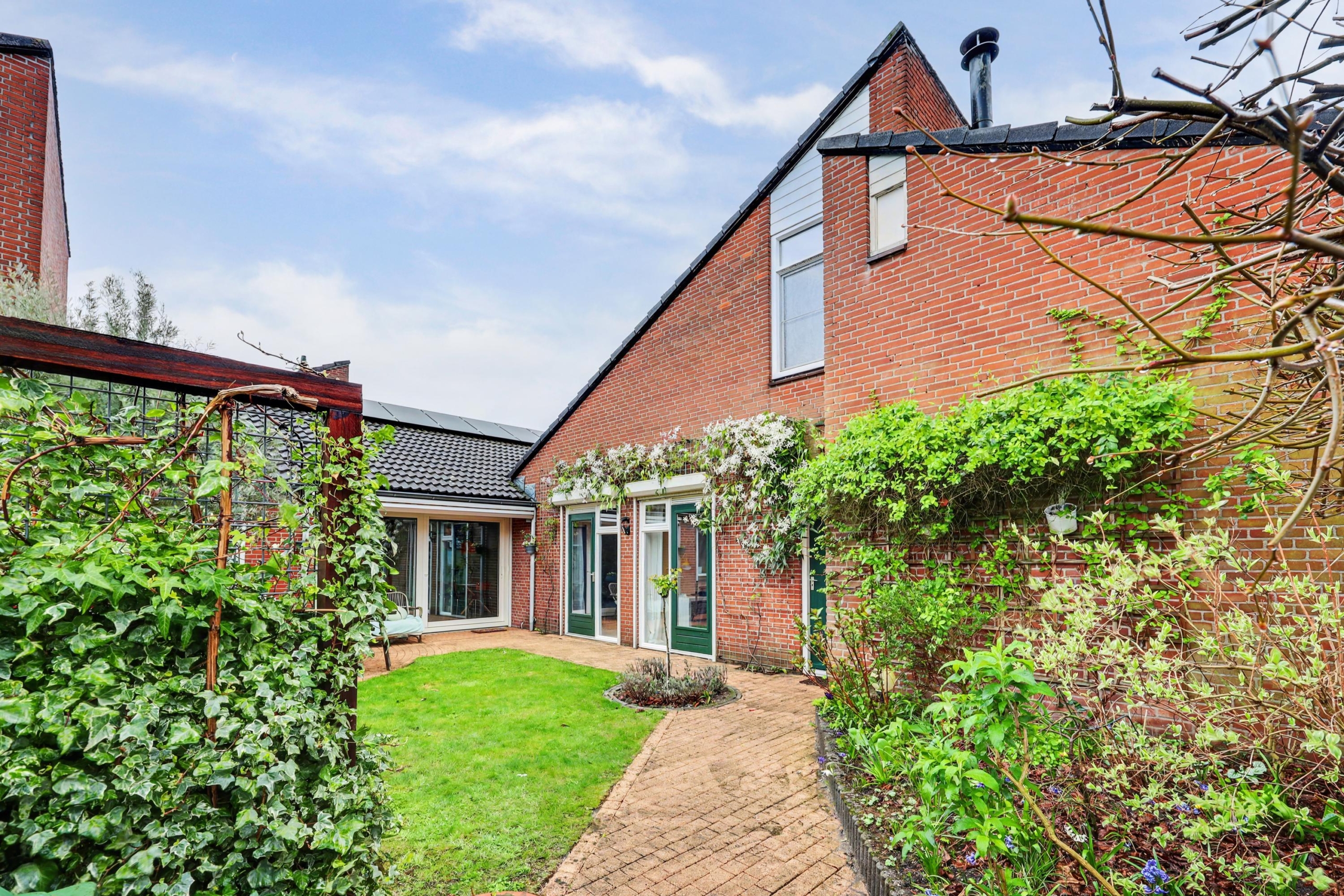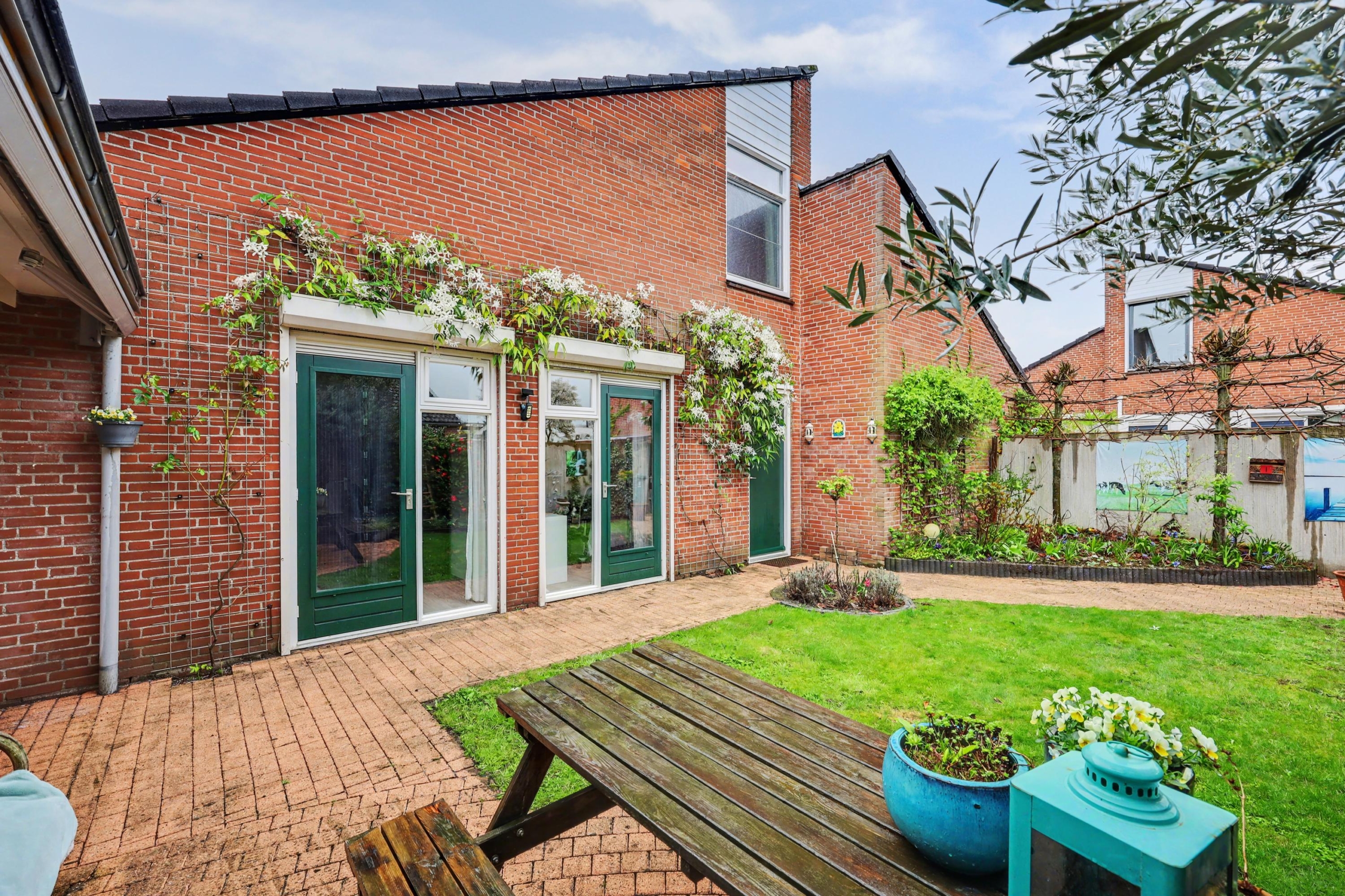 De achtertuin is keurig onderhouden en voorzien van diverse mooie vaste planten. Er is een inpandige berging en via een poort is de achterom bereikbaar. Aan de voorzijde van de woning staat de aangebouwde stenen garage. Deze is voorzien van een elektrische kanteldeur, een vide en elektra.