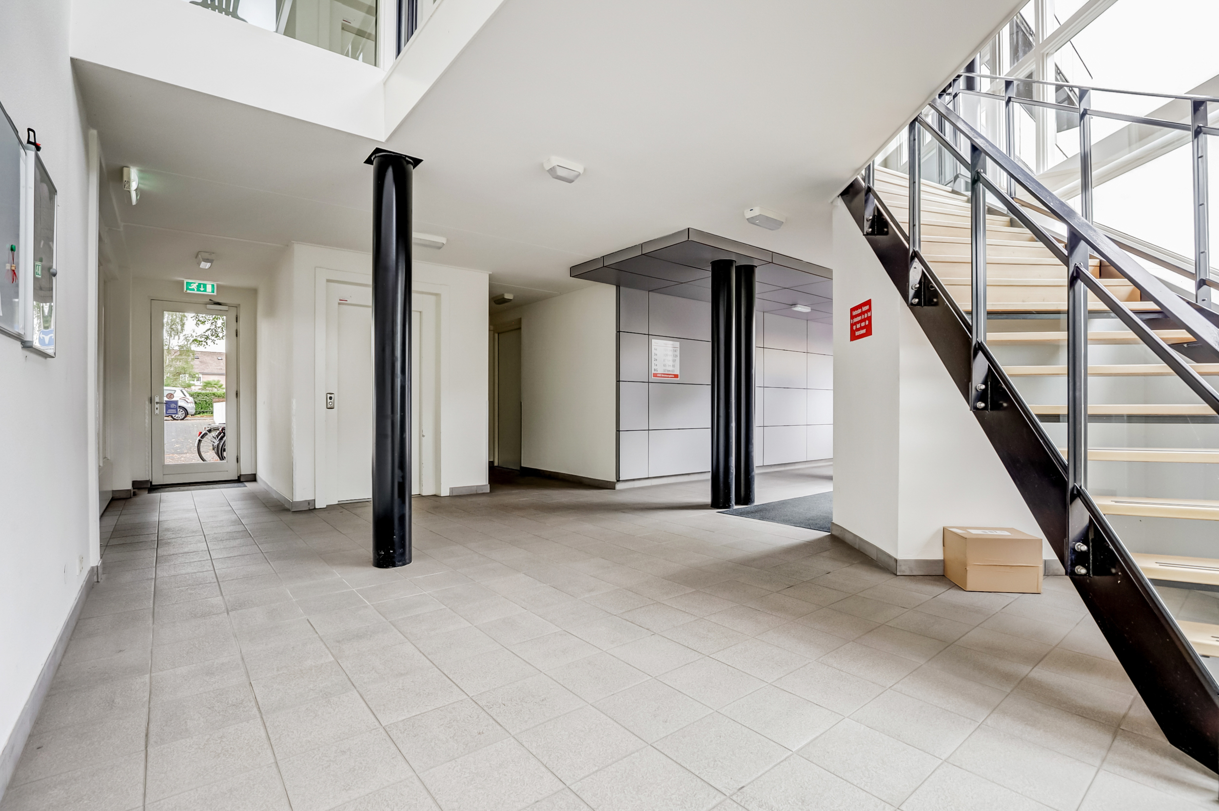Begane grond: gezamenlijke entree, toegang naar de eigen berging en de privé parkeerplaats, lift en trappartij.