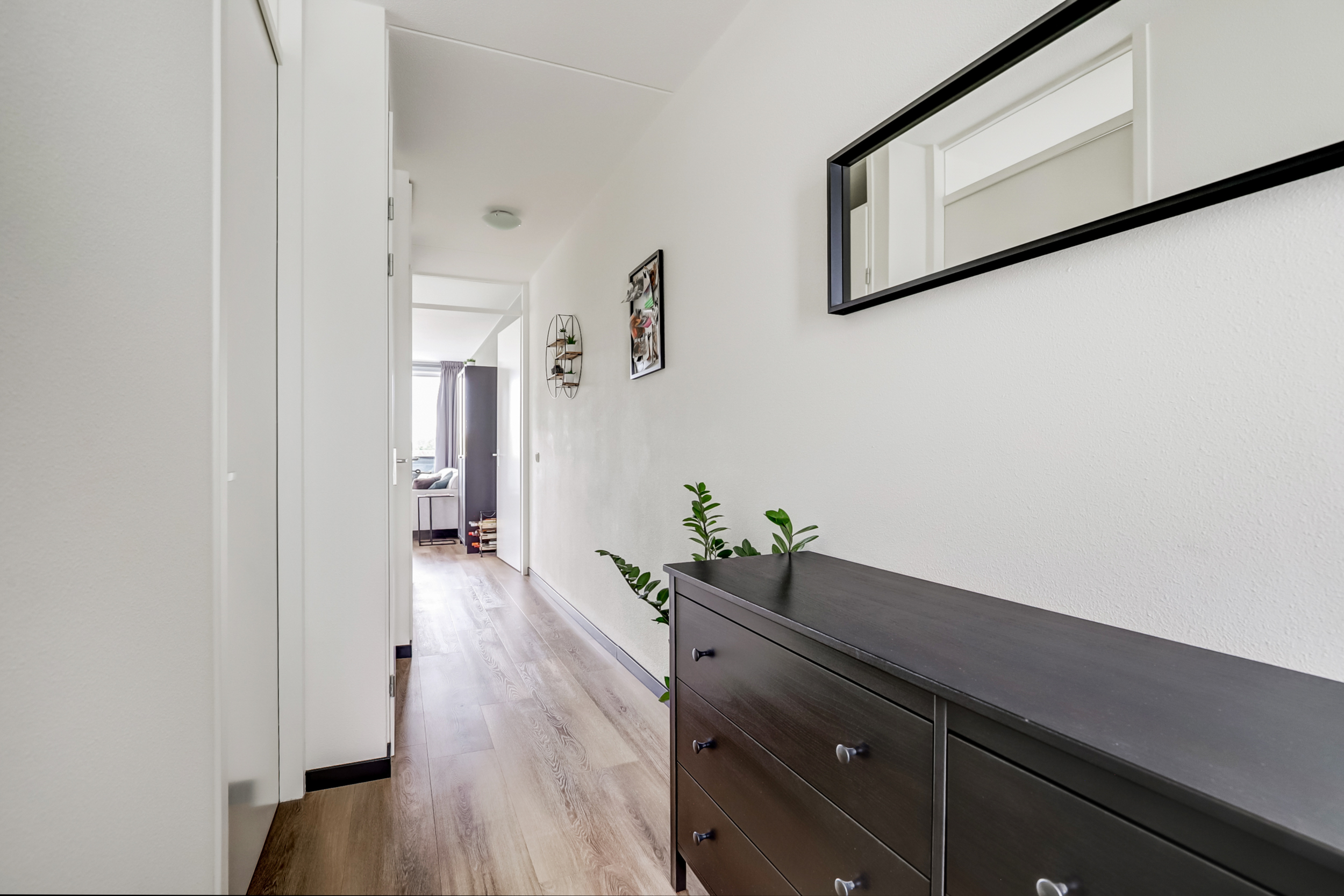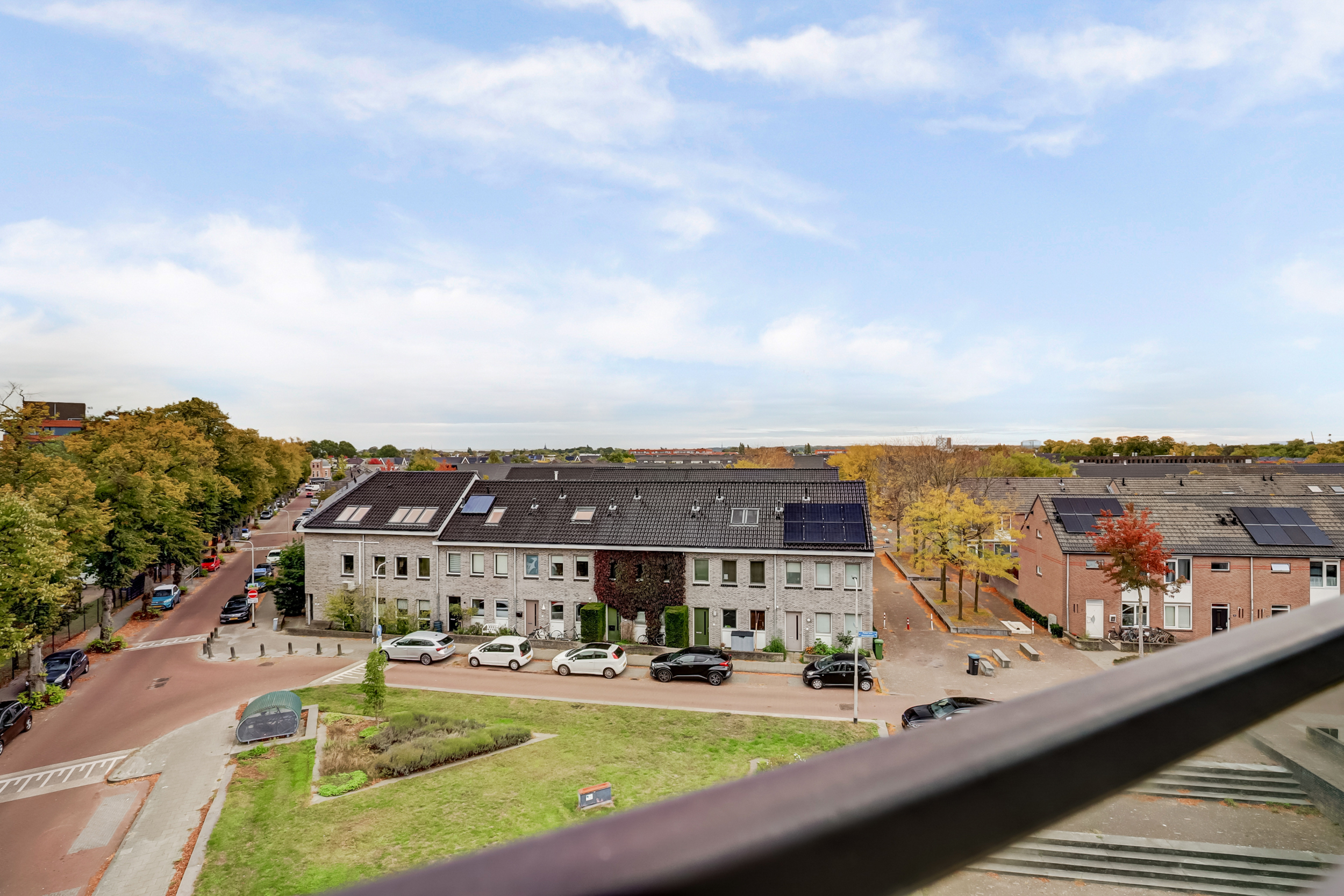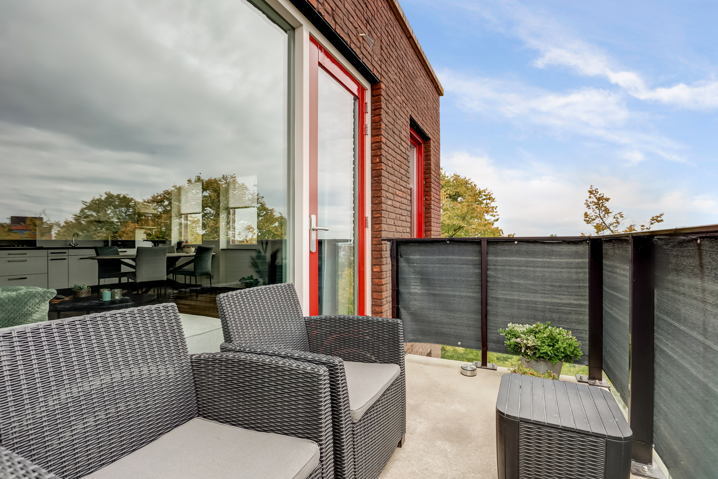 De woonkamer is voorzien van veel raamwerk waardoor het een ontzettend lichte ruimte is en je overal ver van je af kijkt. Door de hoekligging geniet je van diverse vergezichten. Vanuit de woonkamer is het balkon bereikbaar, deze ligt op het noorden en biedt in de zomer tot circa 13.30 uur nog zon.