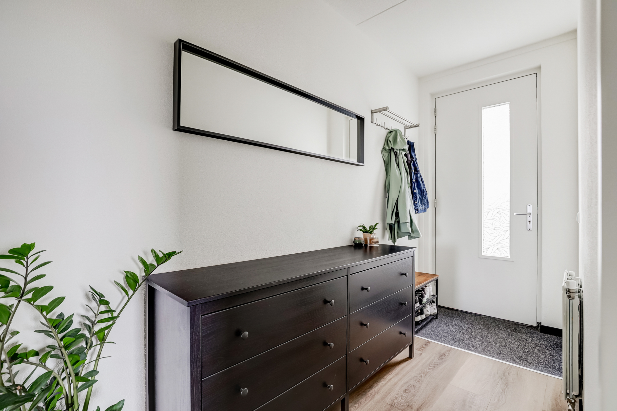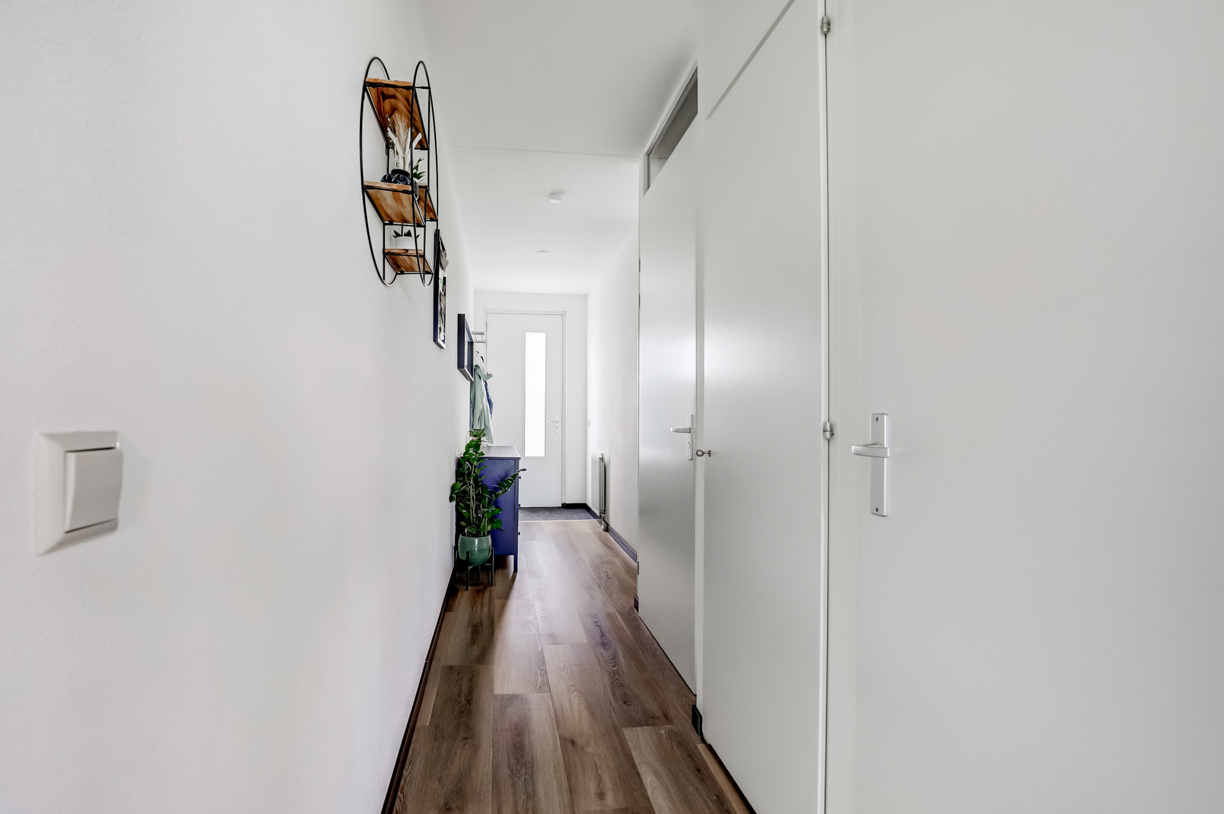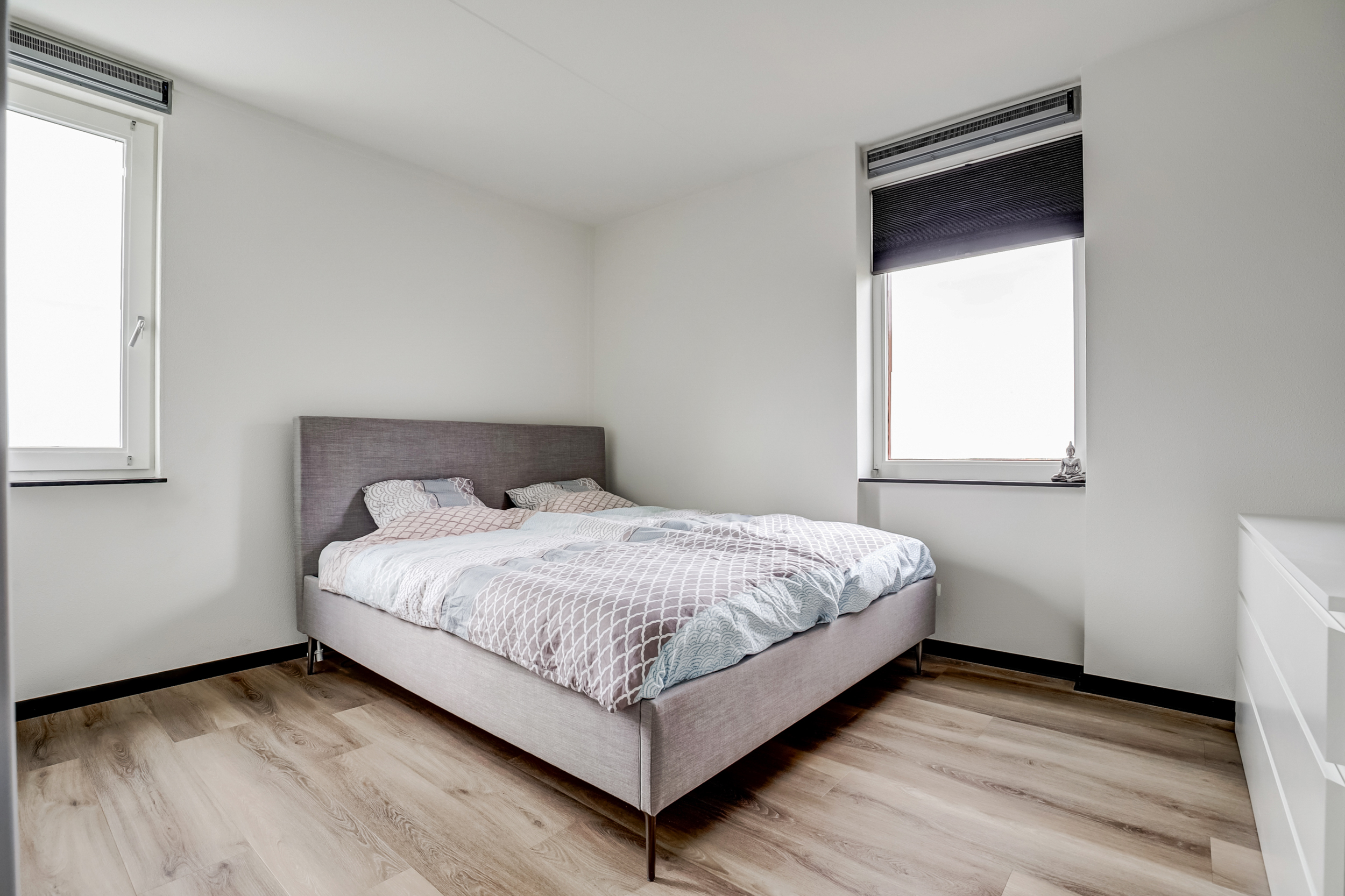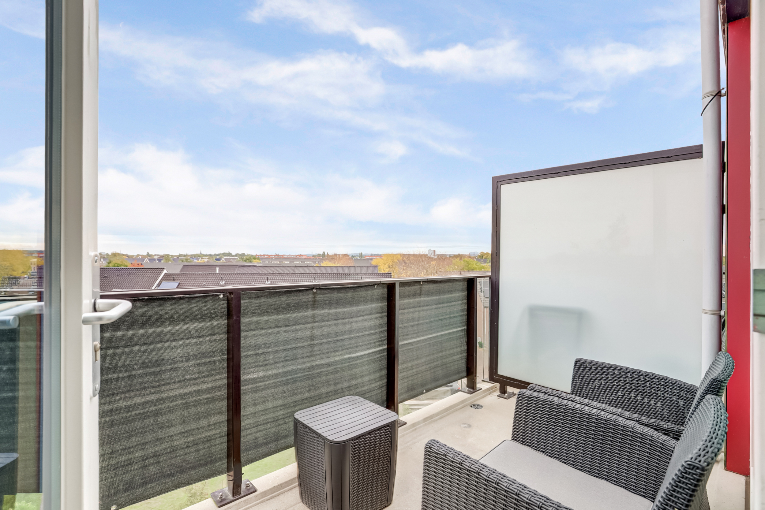 De woonkamer is voorzien van veel raamwerk waardoor het een ontzettend lichte ruimte is en je overal ver van je af kijkt. Door de hoekligging geniet je van diverse vergezichten. Vanuit de woonkamer is het balkon bereikbaar, deze ligt op het noorden en biedt in de zomer tot circa 13.30 uur nog zon.