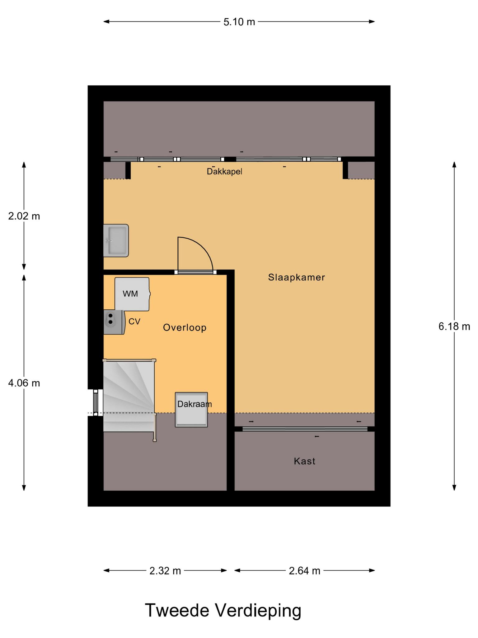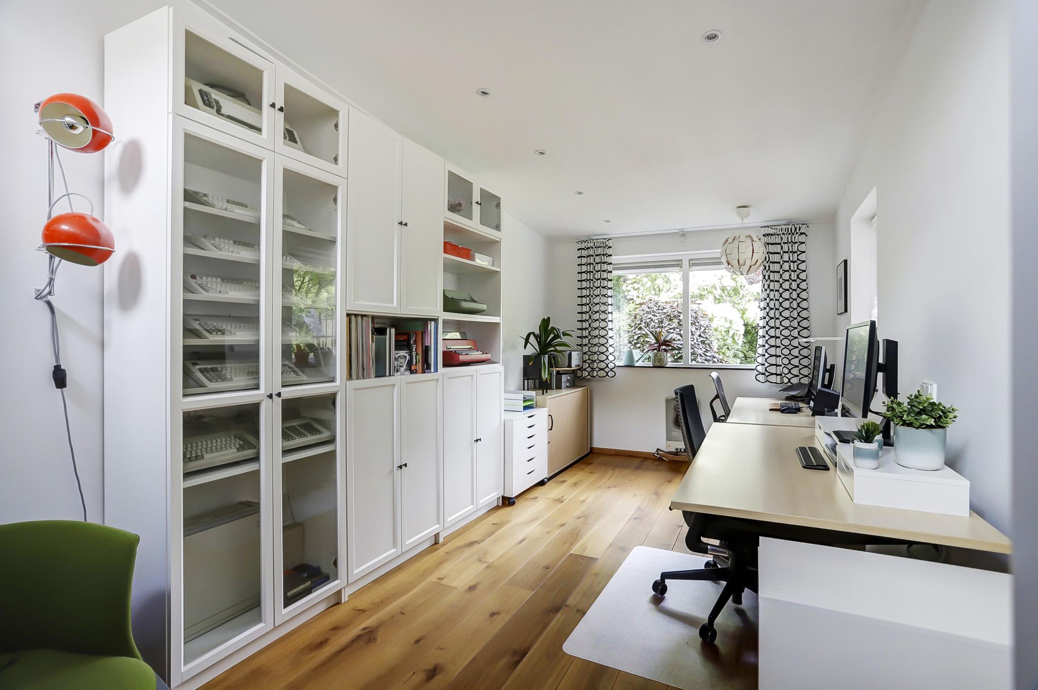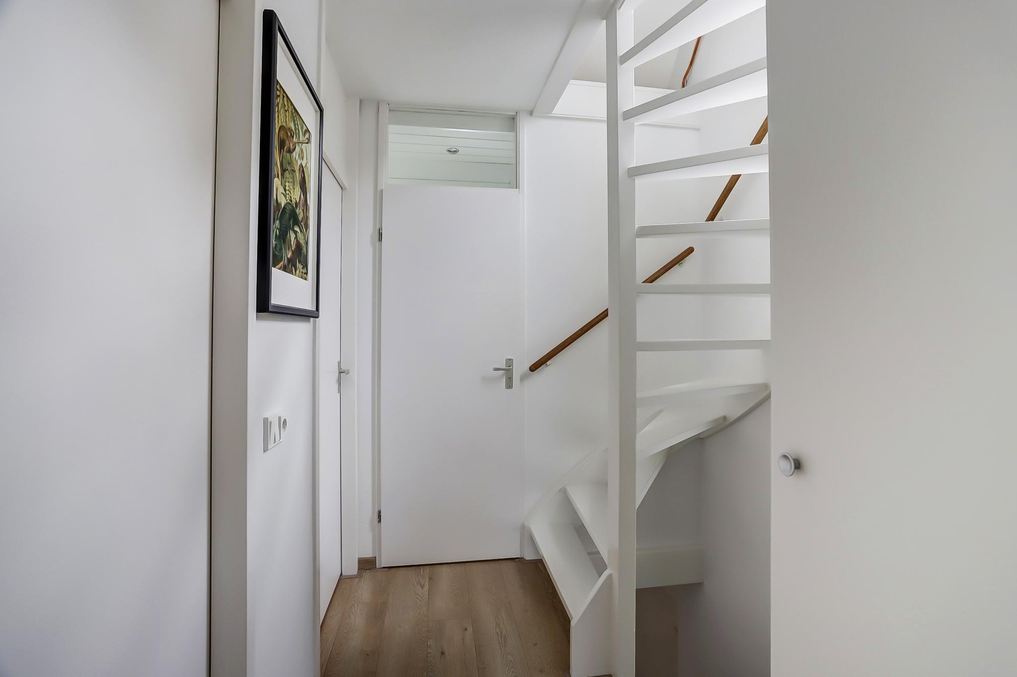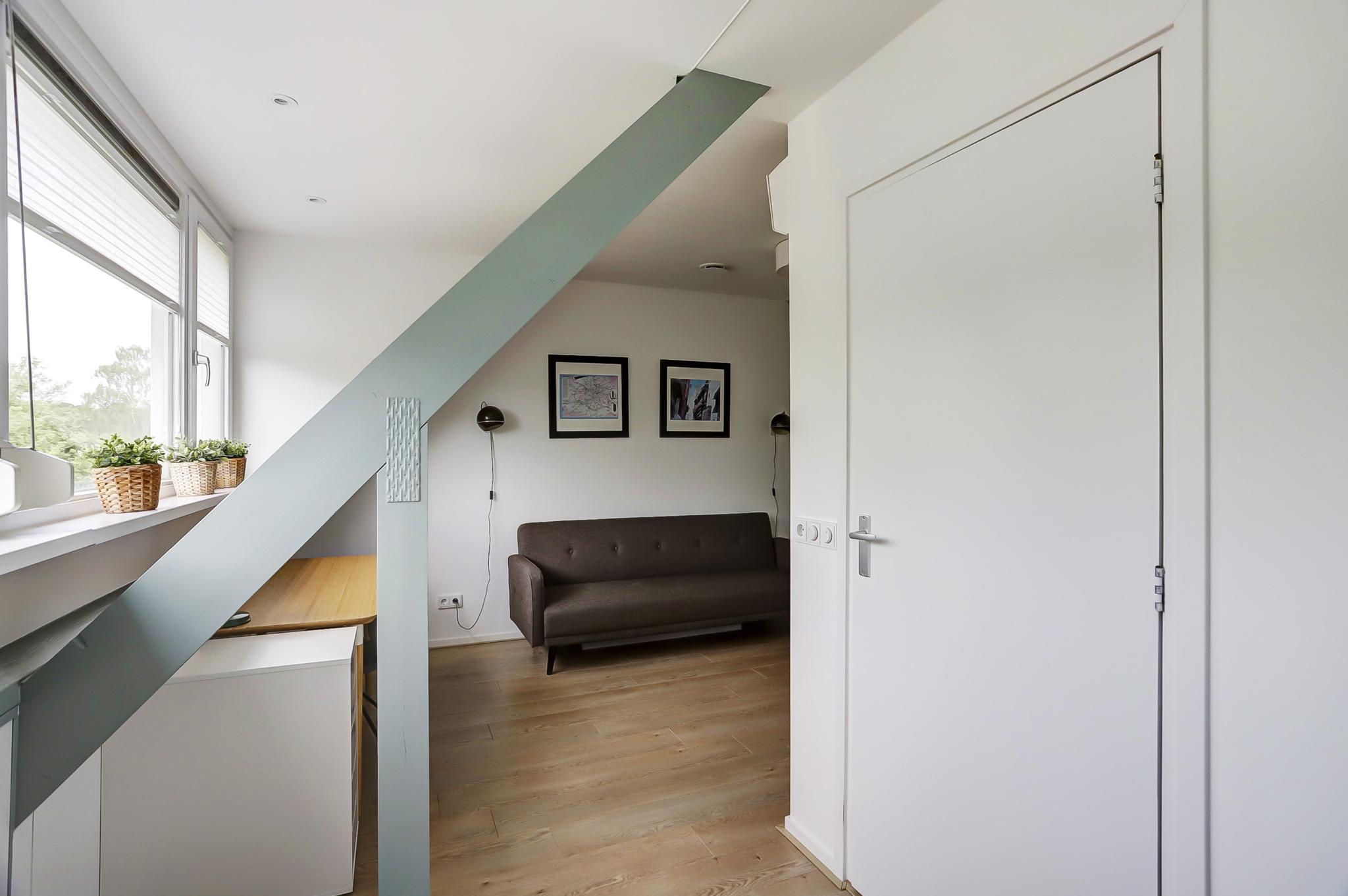 Tweede verdieping: voorzolder met cv-ketel (Brink heteluchtverwarming 2014 en Brink/Intergas HR 2014 voor het warme water) en wasmachine-aansluiting, uitgebouwde zolderkamer met airco.