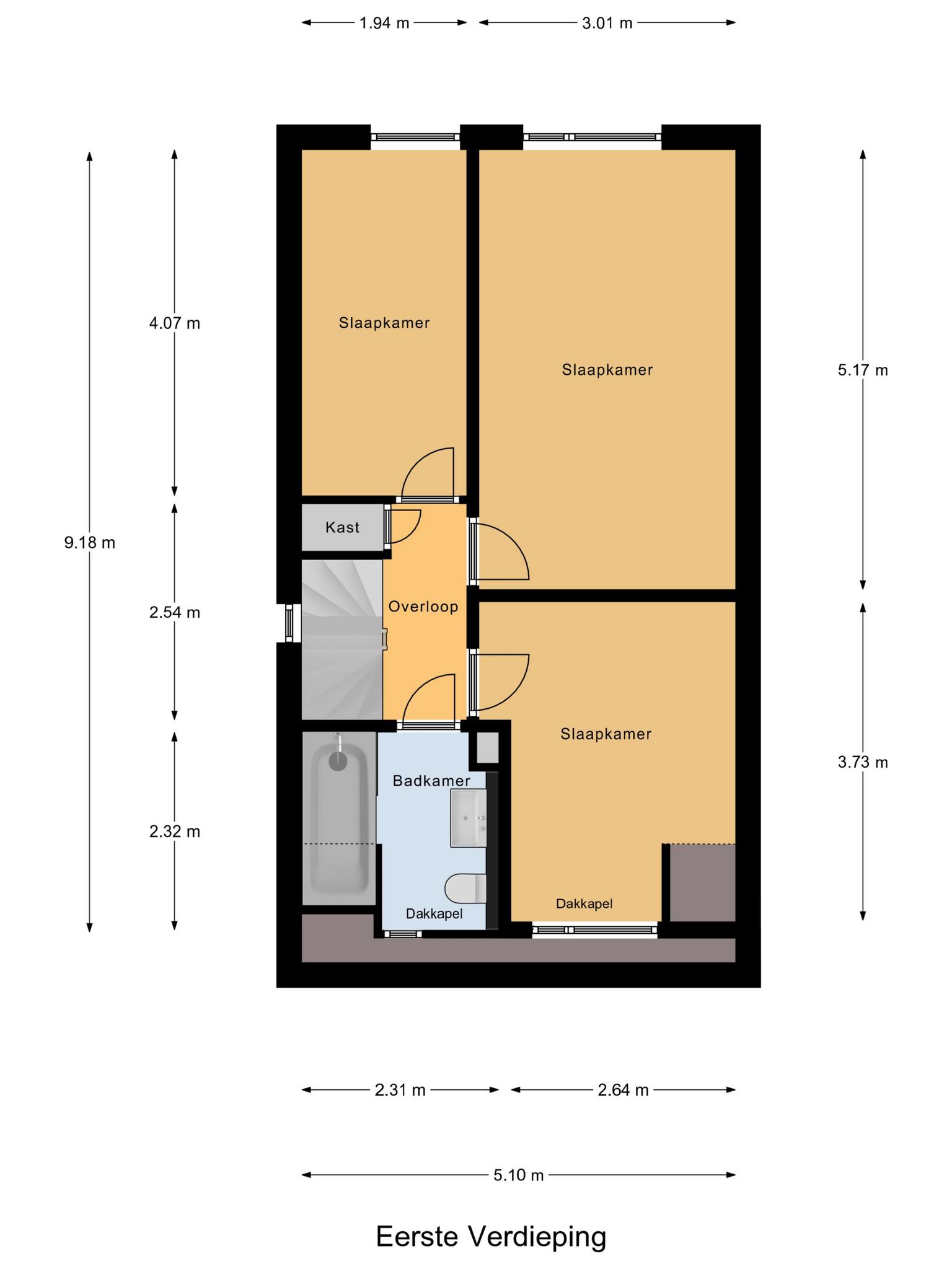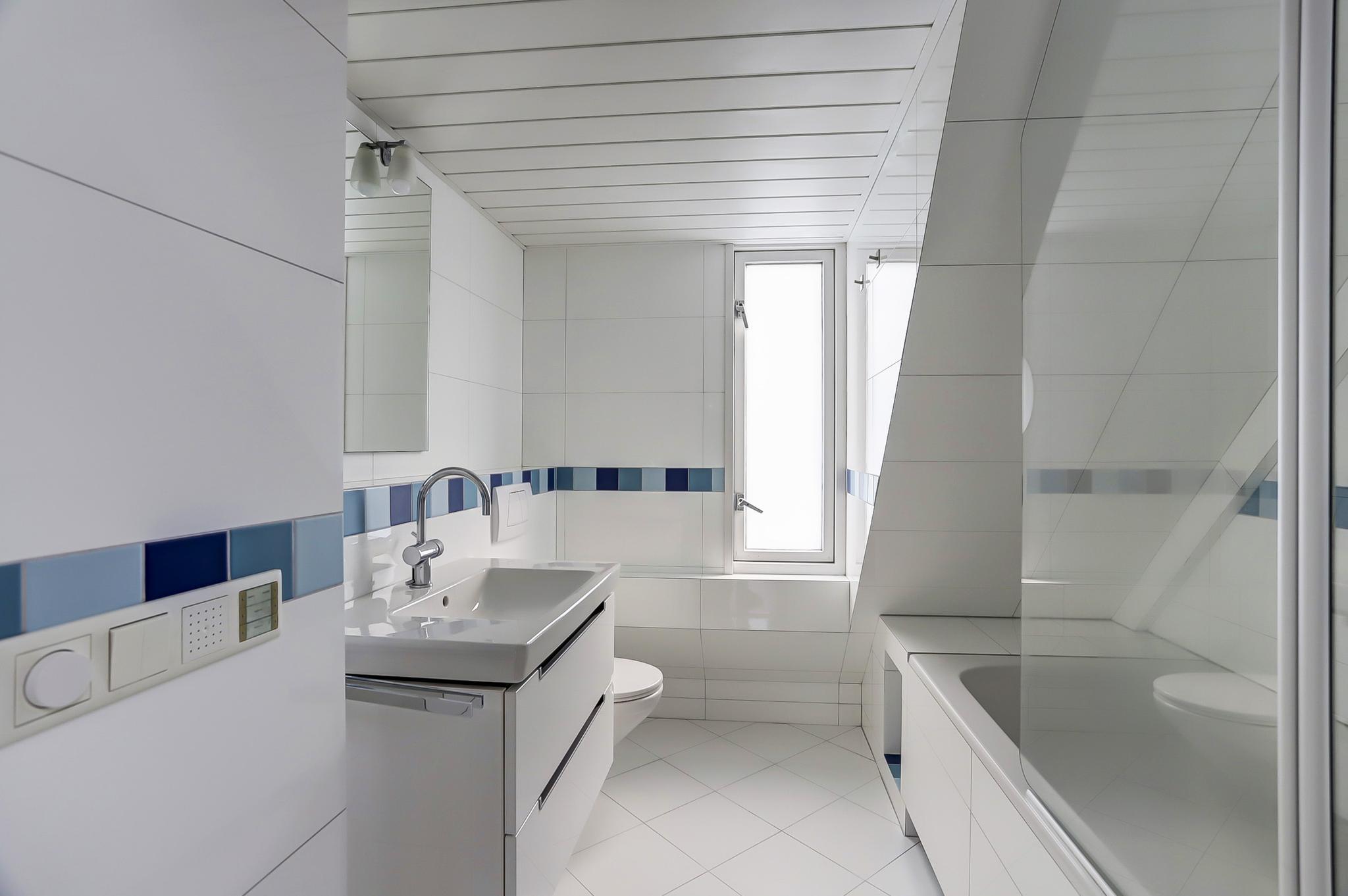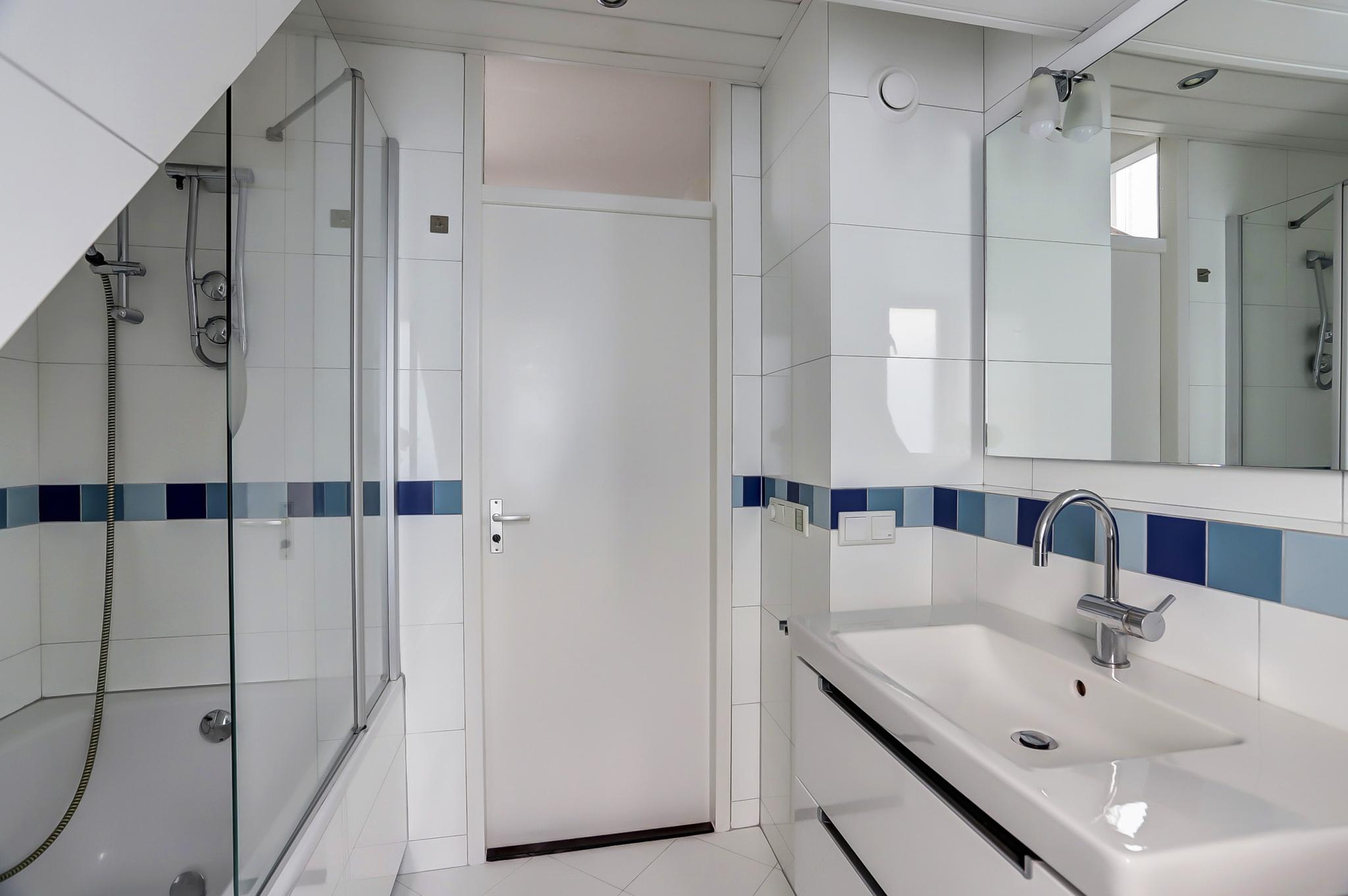 Eerste verdieping: overloop met een vaste kast, 3 slaapkamers (waarvan 1 met een airco), keurige badkamer met ligbad/douche, wandcloset en een wastafelmeubel.