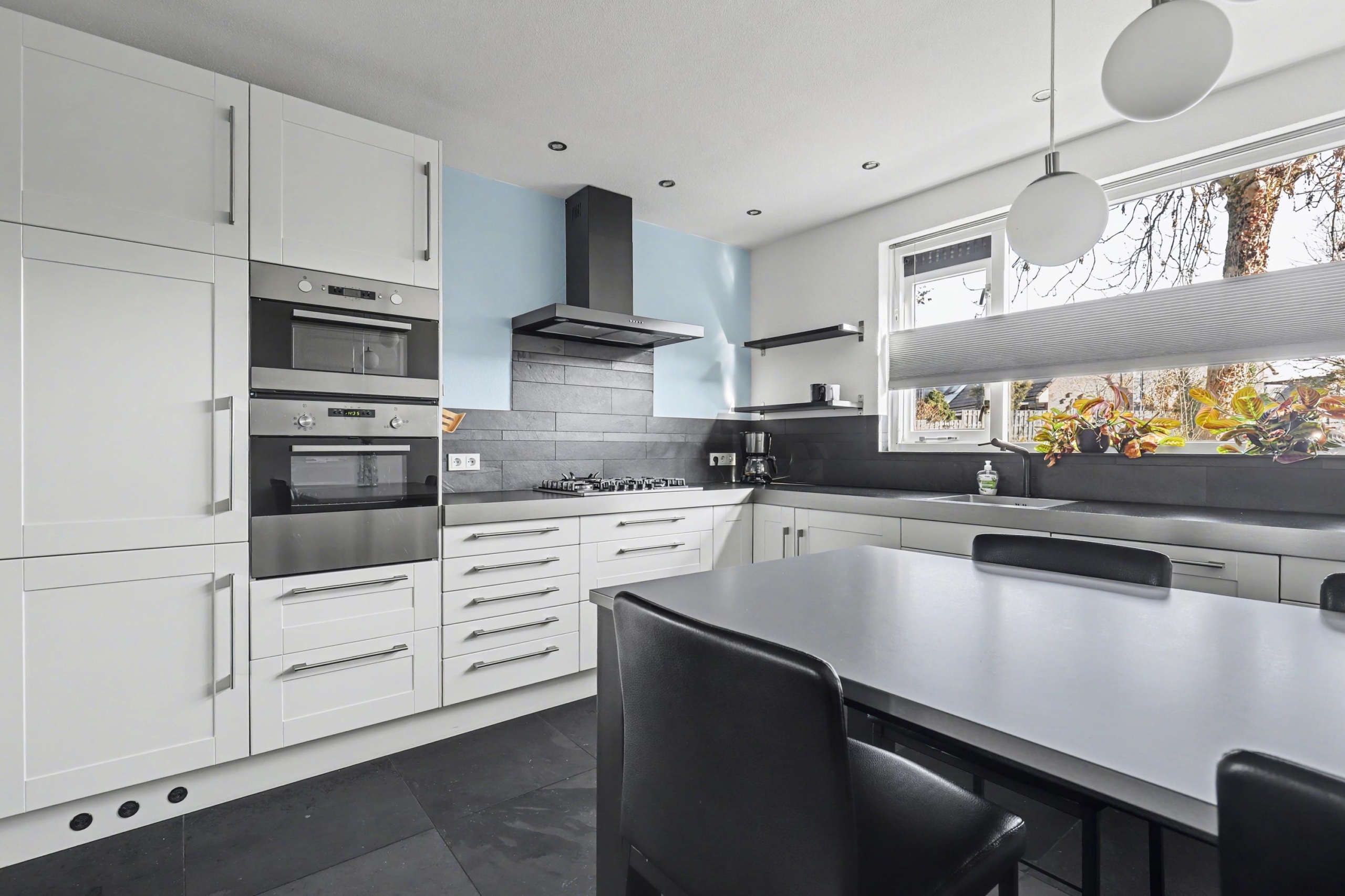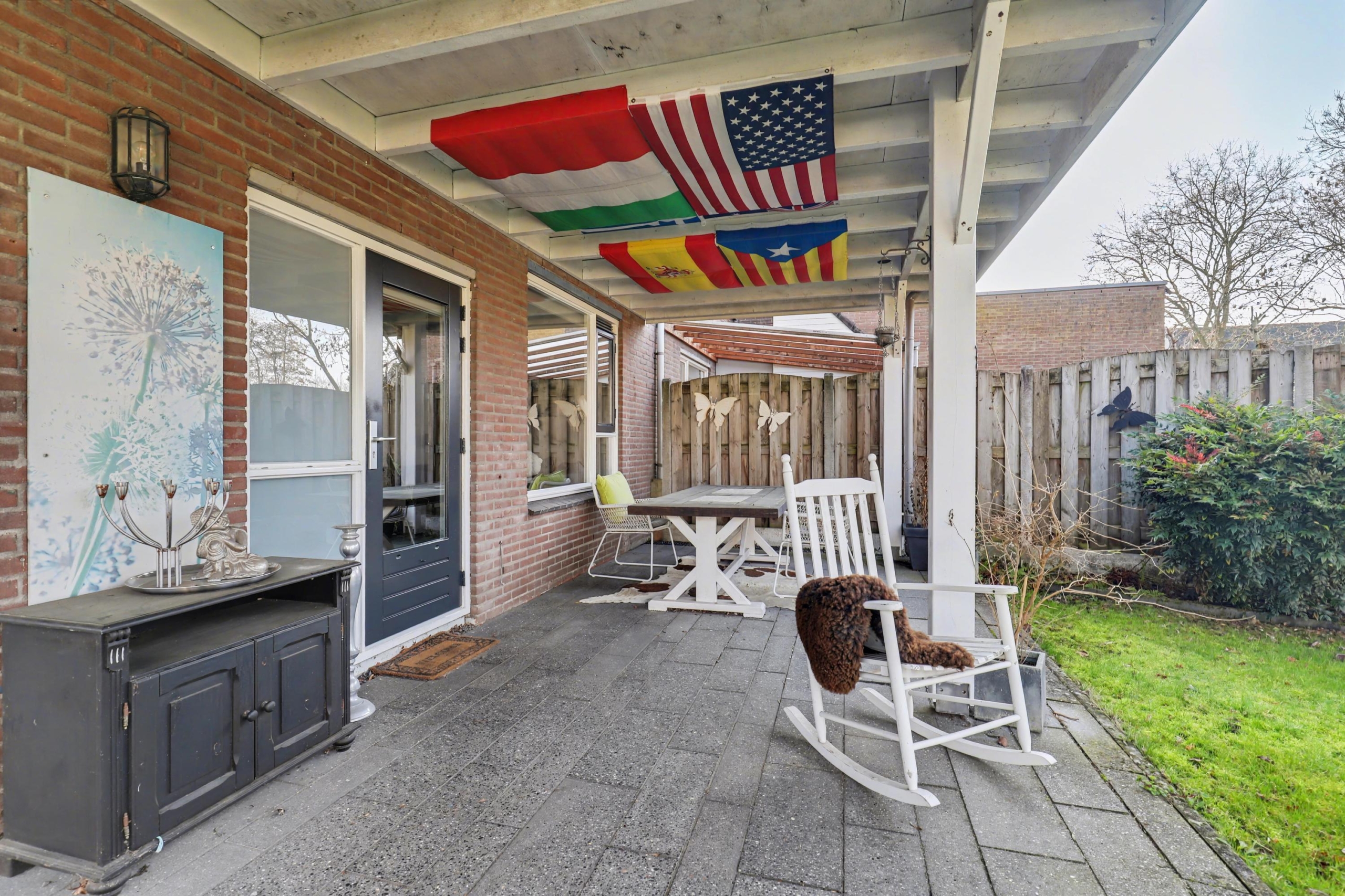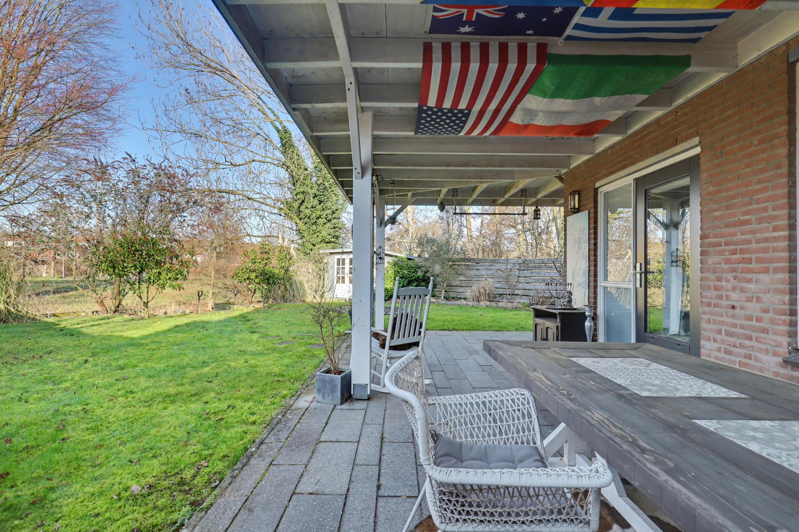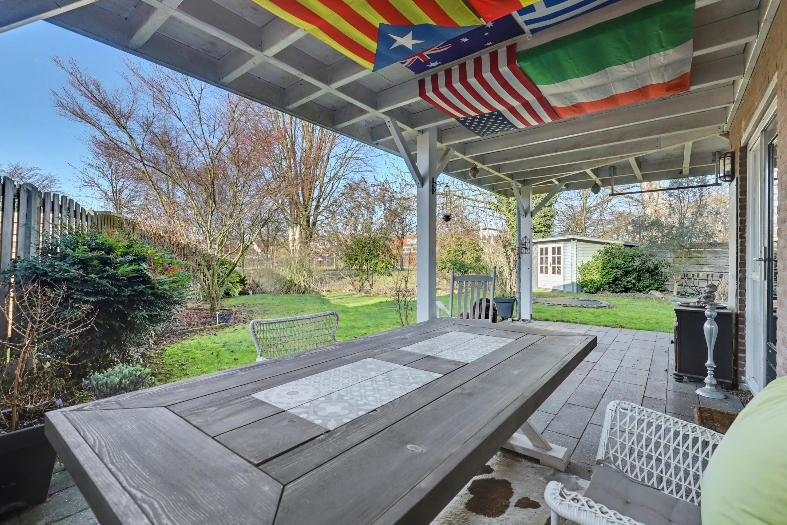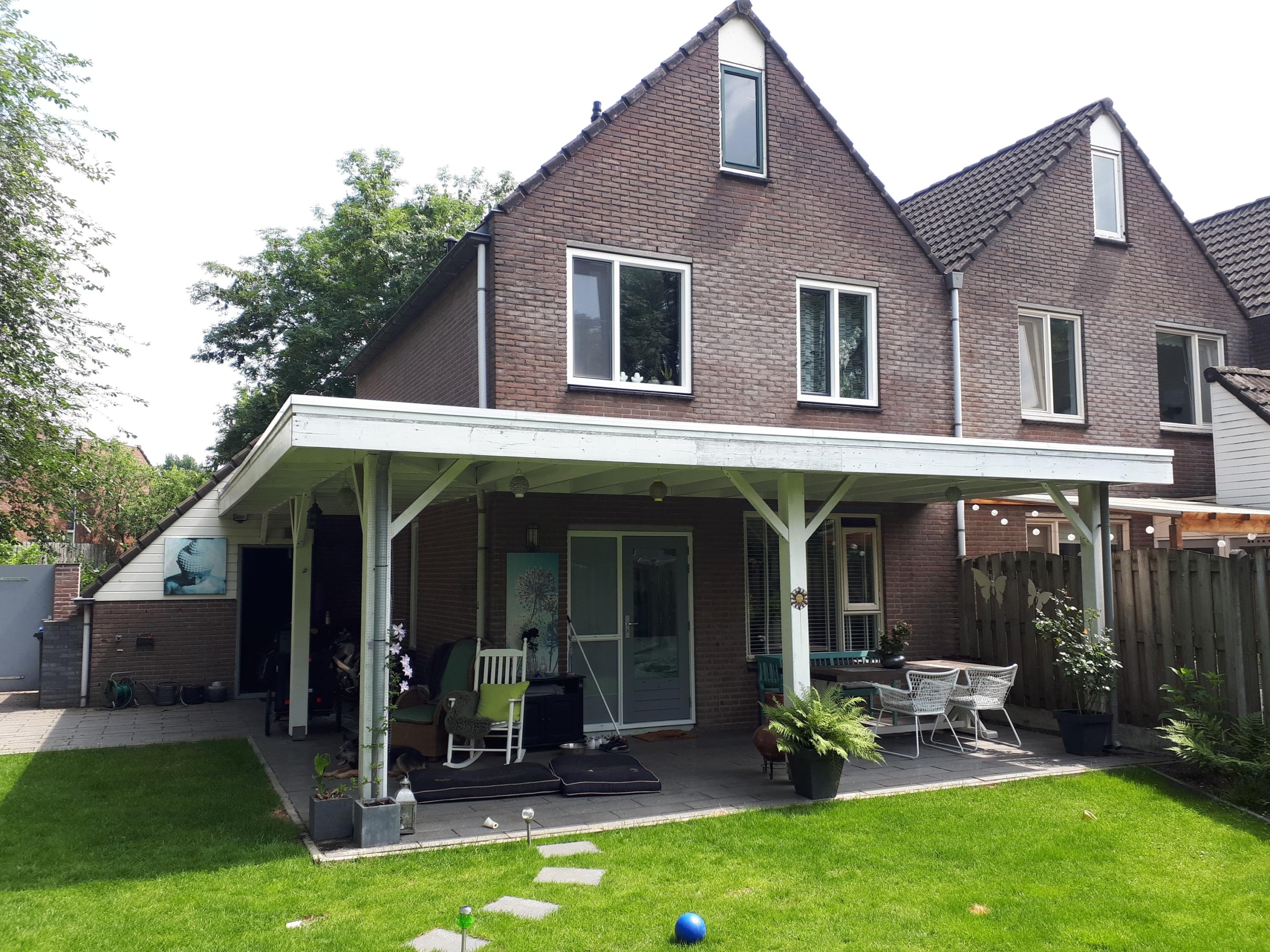 - mooie ruime veranda die tegen de achter- en zijgevel aan staat