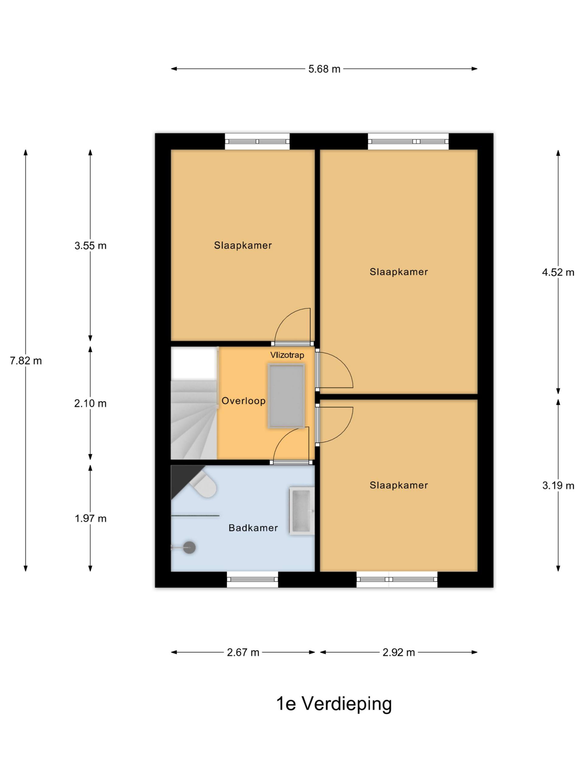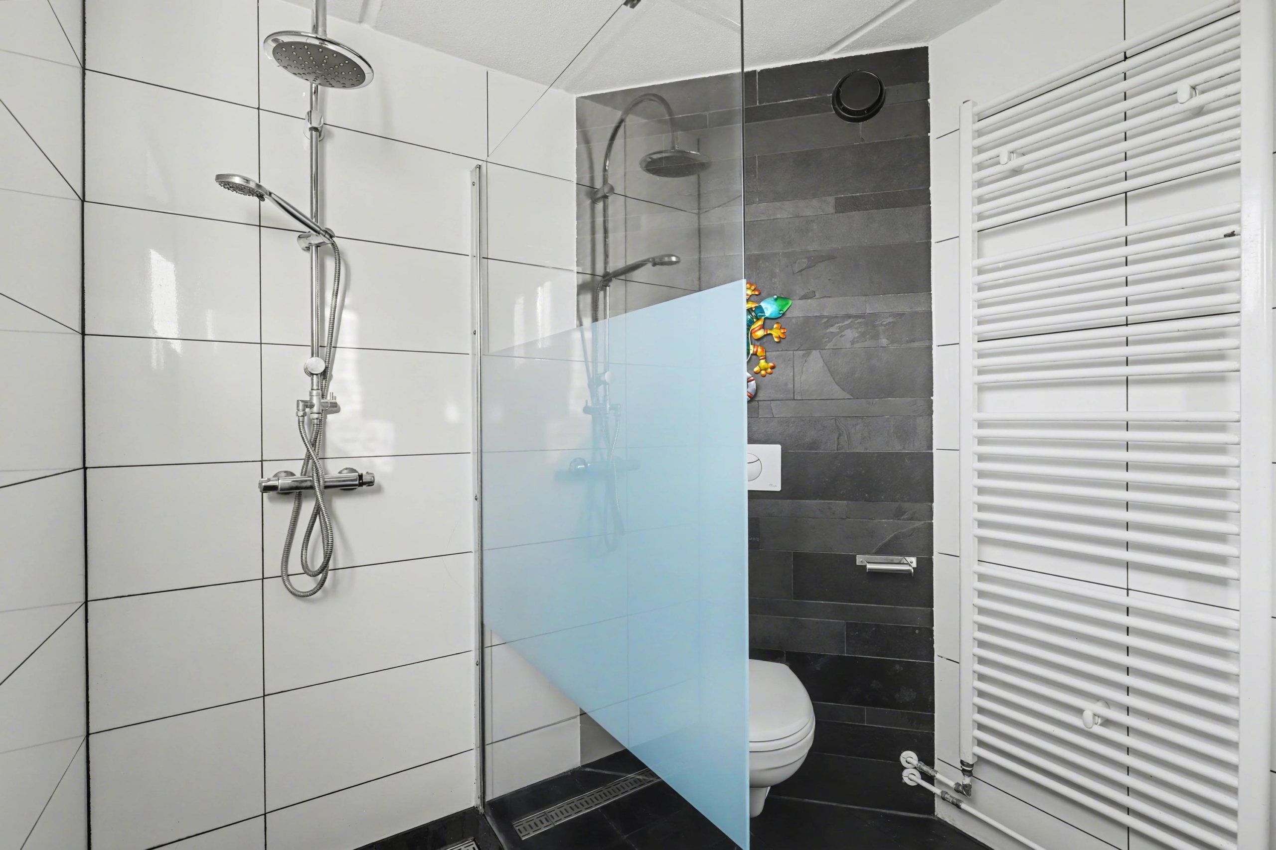 Eerste verdieping: overloop, in totaal 3 slaapkamers, keurige badkamer met inloopdouche, wandcloset en wastafelmeubel.