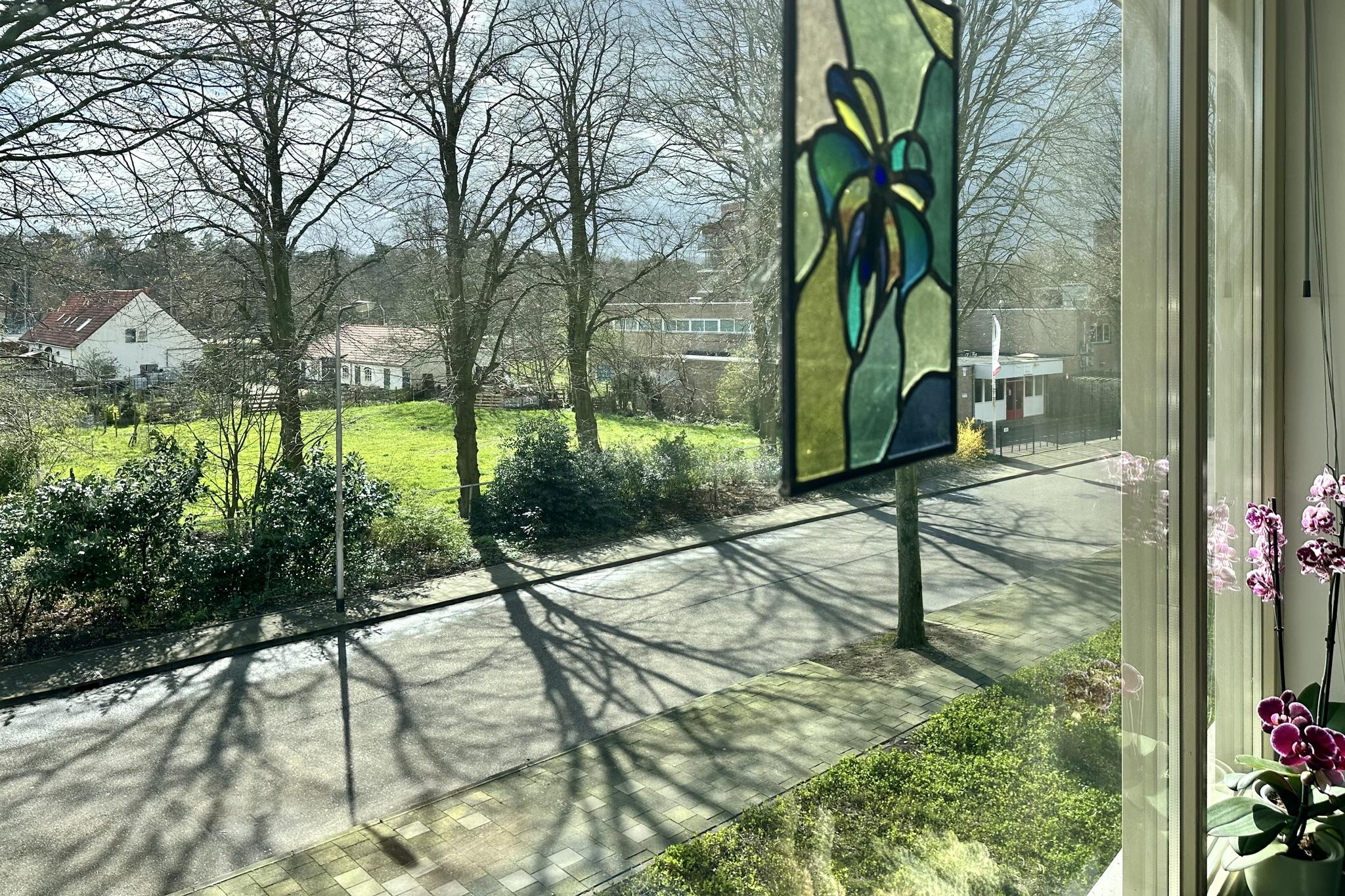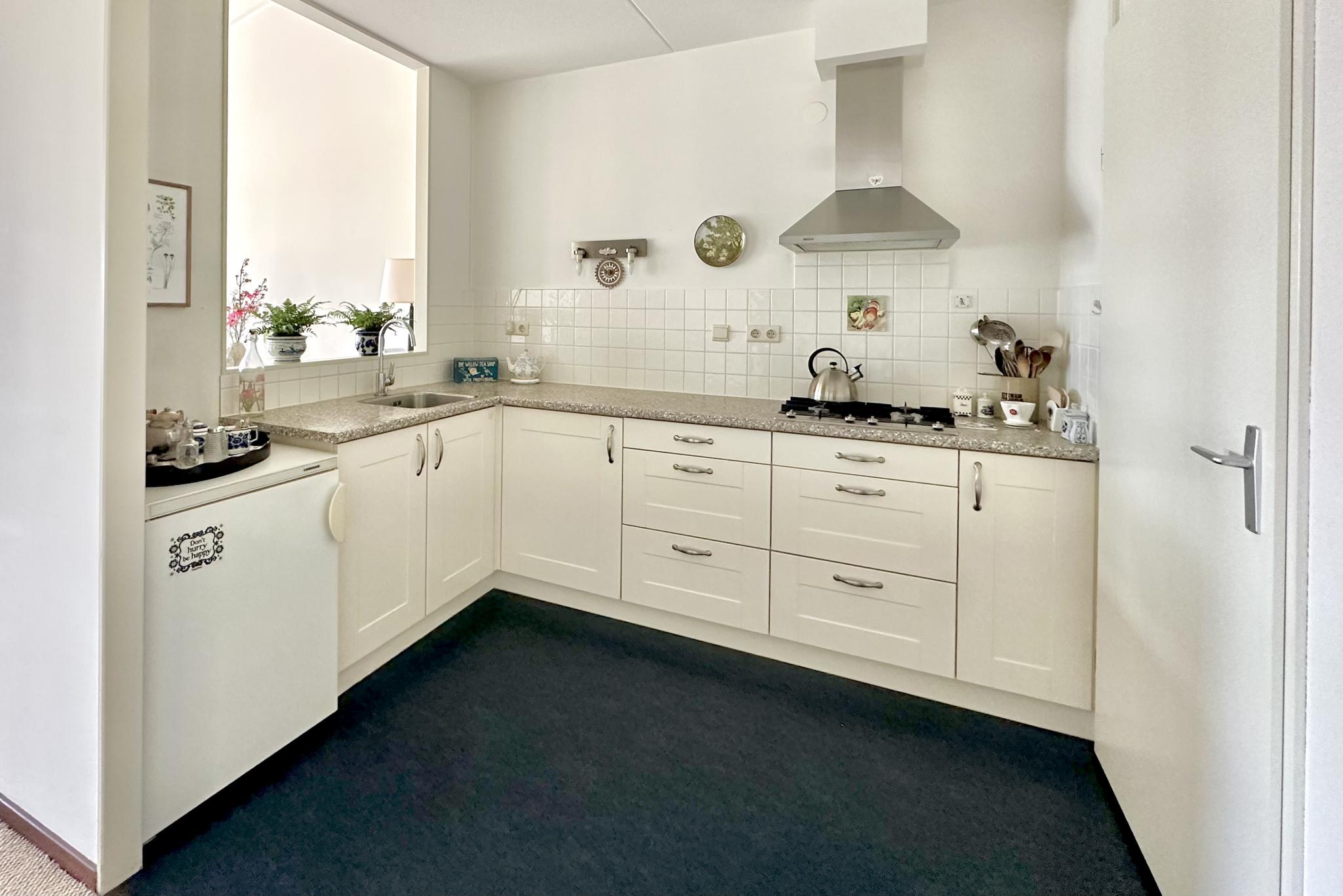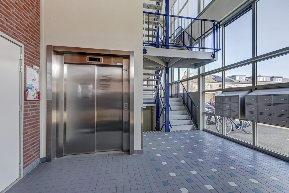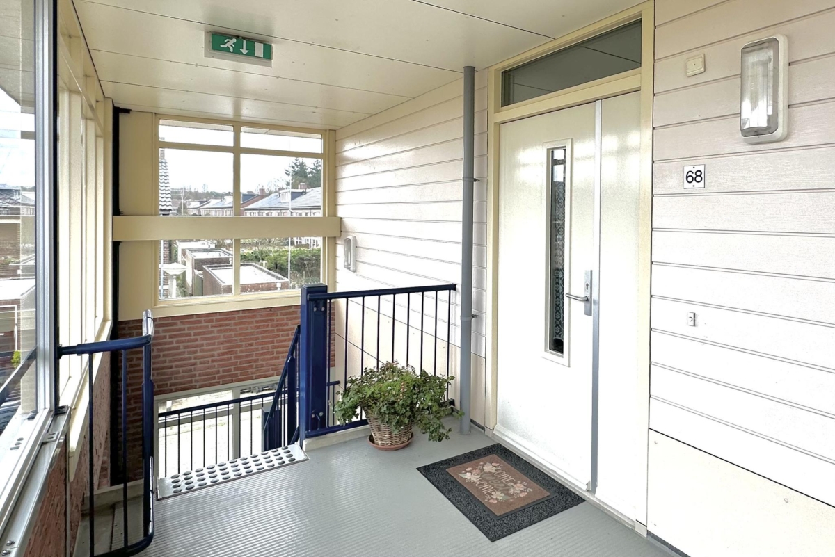Tweede woonlaag: aan het einde van de galerij ligt het appartement fraai op de hoek. Entree, hal met toilet en berging/meterkast, open keuken met nette inrichting inclusief diverse apparatuur, bijkeuken met cv-ketel (Remeha 2023), wasmachine-aansluiting, en een WTW unit. Doordat het appartement op de bovenste woonlaag ligt heb je in de woonkamer een fraai en extra hoog plafond. Via de woonkamer heb je toegang tot de op het zuiden gelegen loggia. Vanaf de loggia kijk je mooi ver weg en door de hoekligging kun je door de glazen zijkant ook al in de ochtend van de zon genieten. Mede door de hoekligging heb je ook ramen in de slaapkamers die naar buiten uitkijken op het oosten.