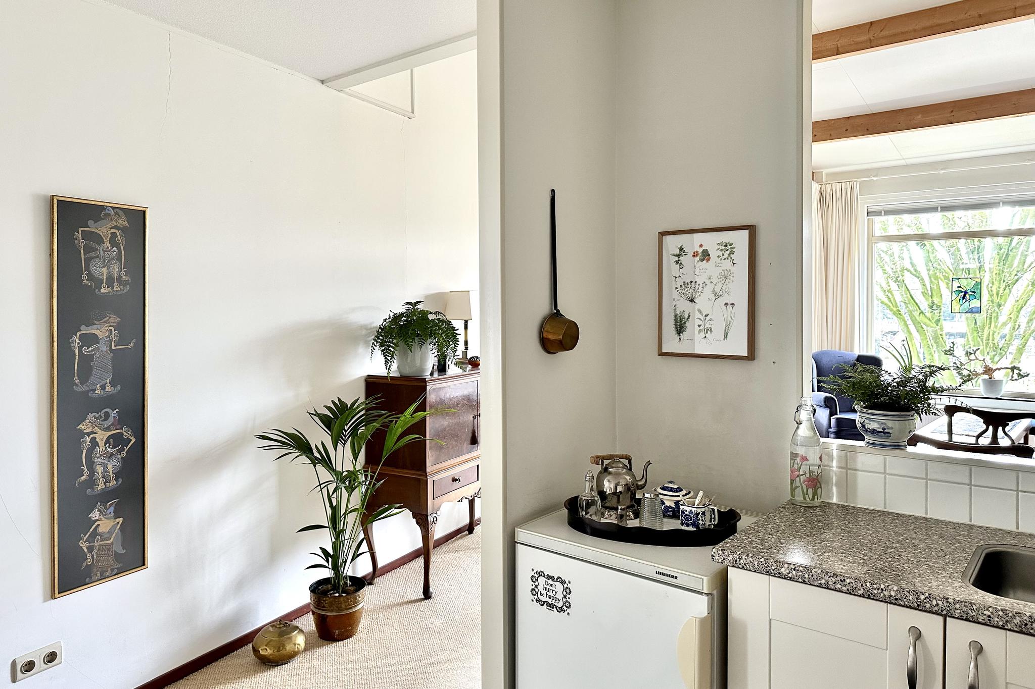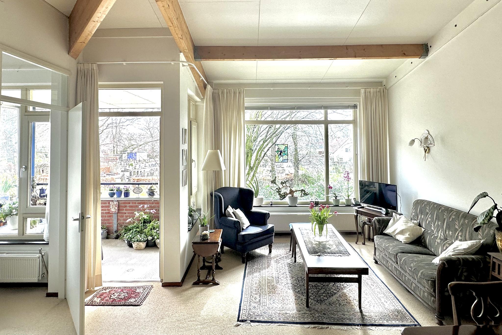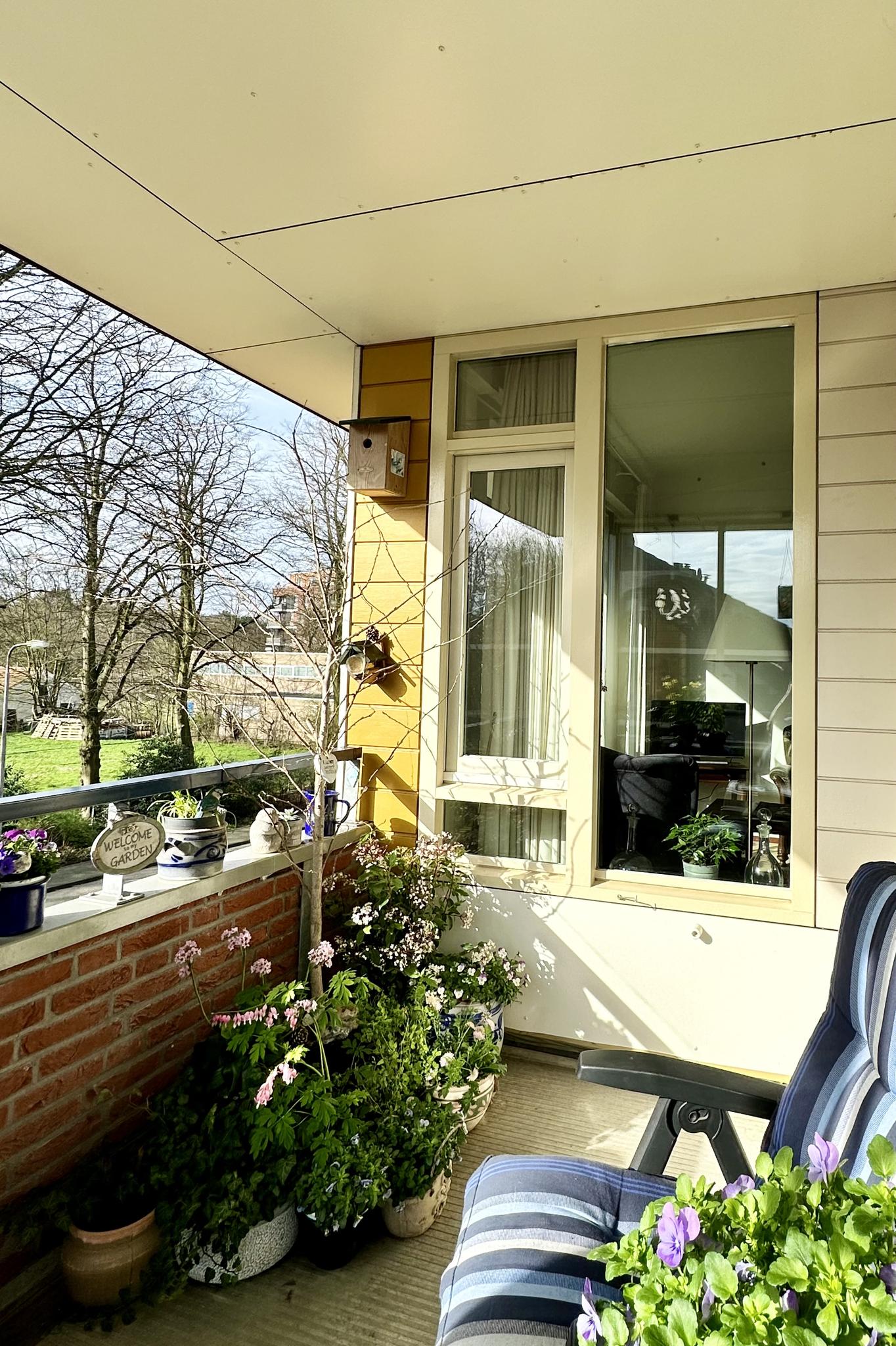 Tweede woonlaag: aan het einde van de galerij ligt het appartement fraai op de hoek. Entree, hal met toilet en berging/meterkast, open keuken met nette inrichting inclusief diverse apparatuur, bijkeuken met cv-ketel (Remeha 2023), wasmachine-aansluiting, en een WTW unit. Doordat het appartement op de bovenste woonlaag ligt heb je in de woonkamer een fraai en extra hoog plafond. Via de woonkamer heb je toegang tot de op het zuiden gelegen loggia. Vanaf de loggia kijk je mooi ver weg en door de hoekligging kun je door de glazen zijkant ook al in de ochtend van de zon genieten. Mede door de hoekligging heb je ook ramen in de slaapkamers die naar buiten uitkijken op het oosten.