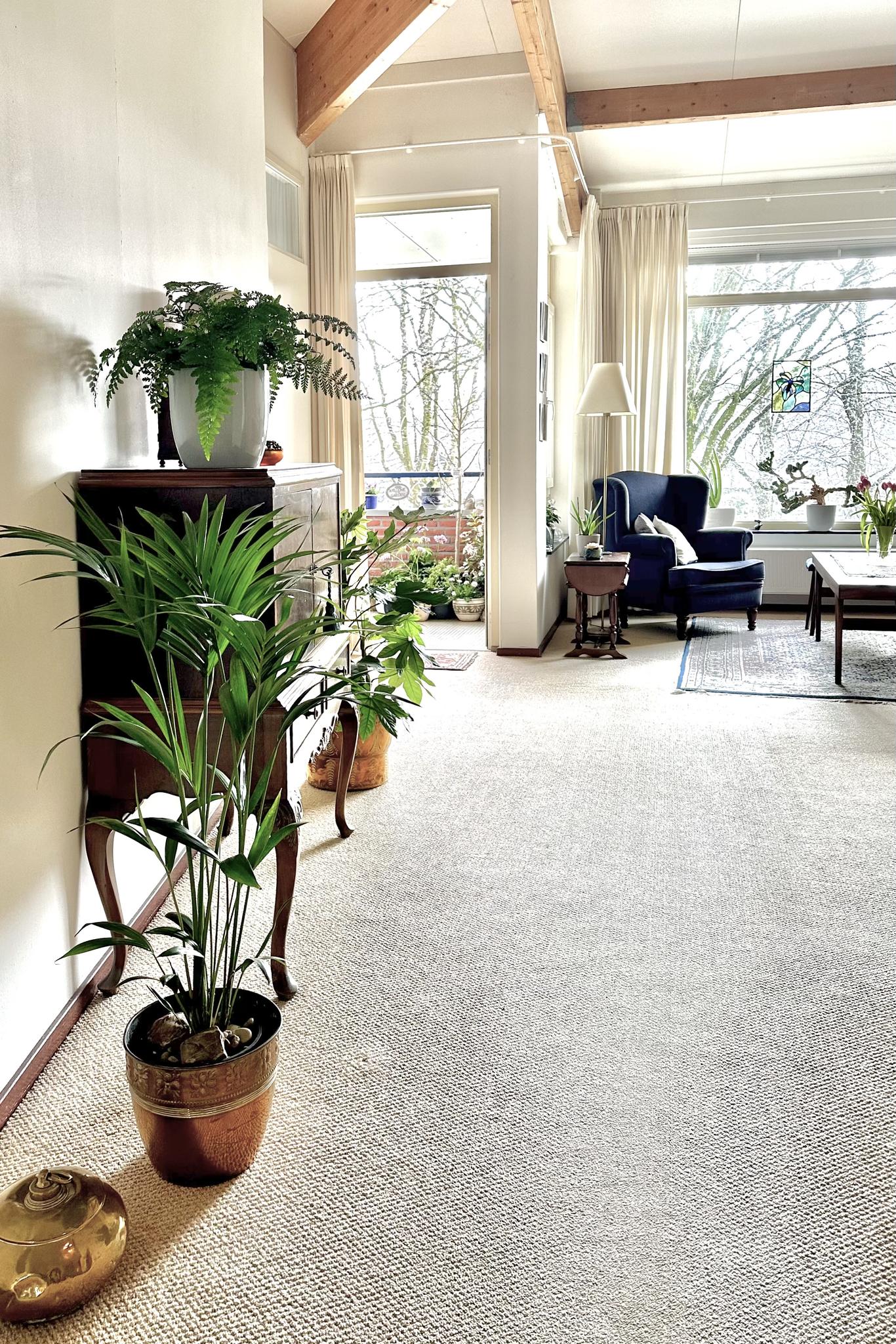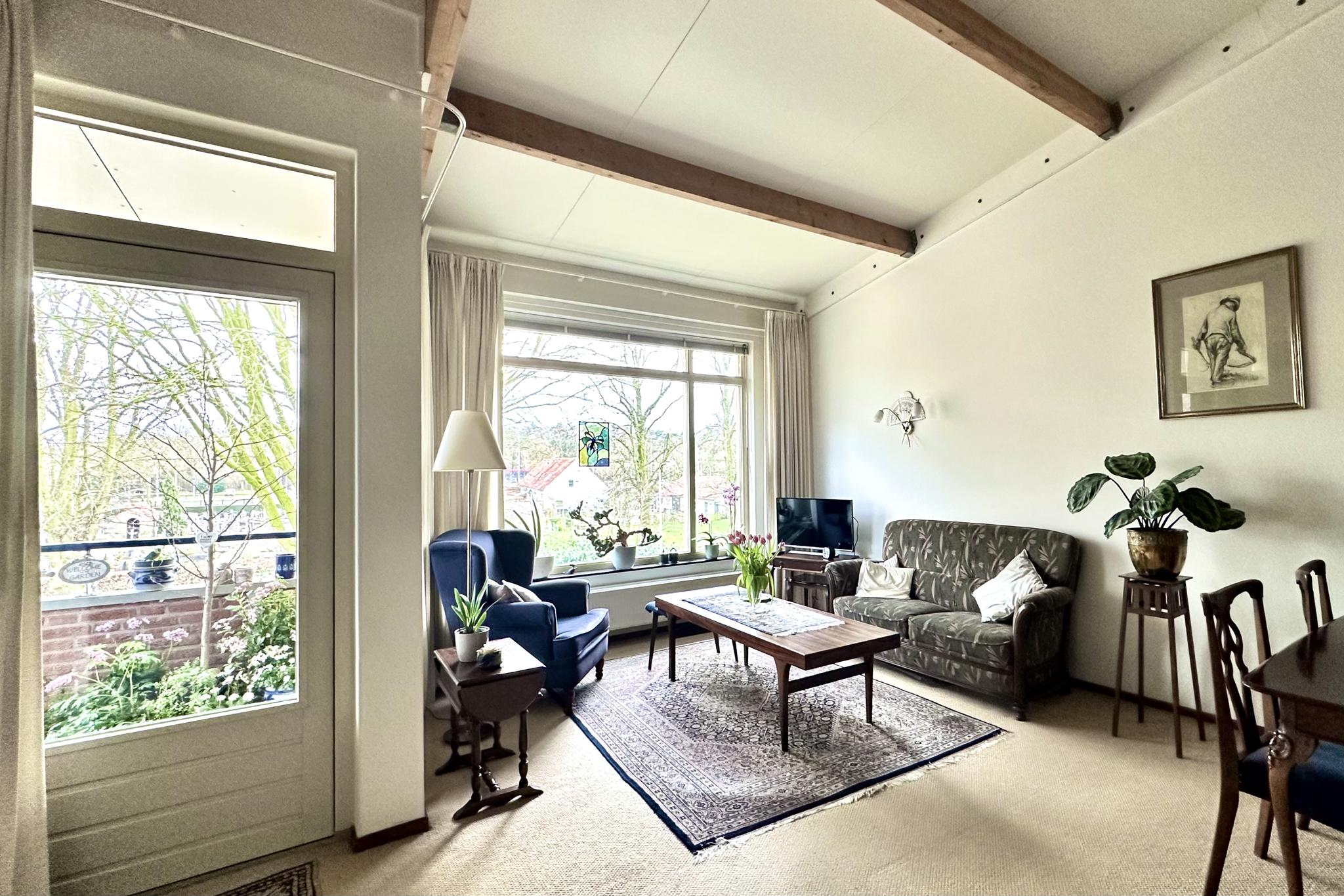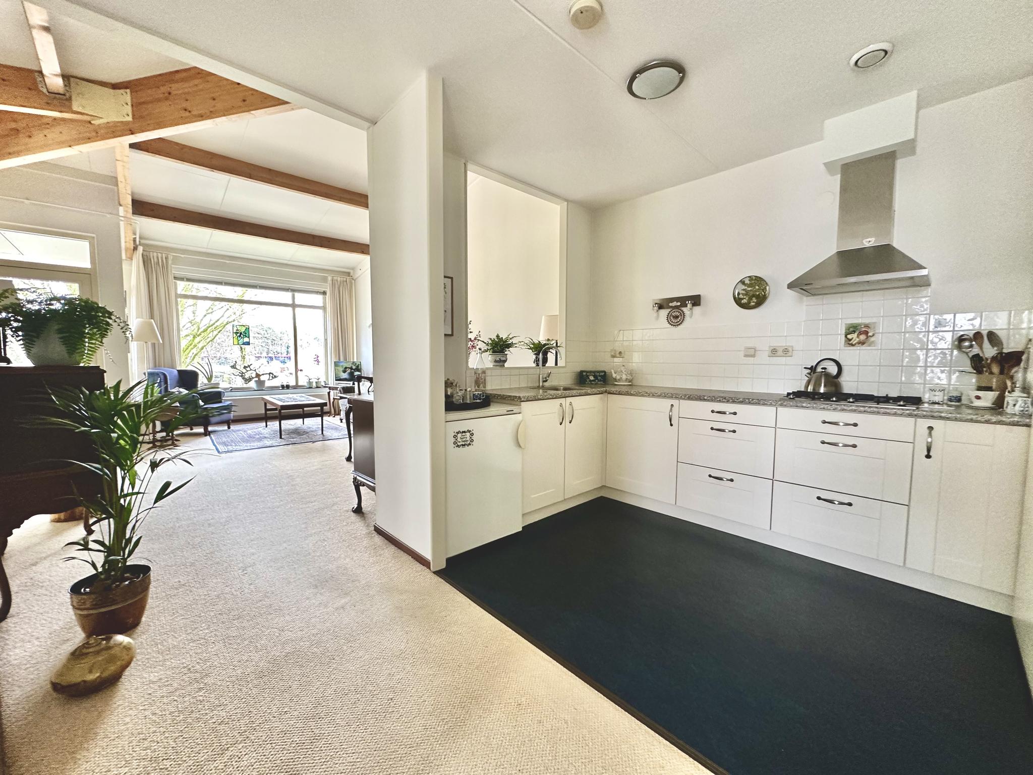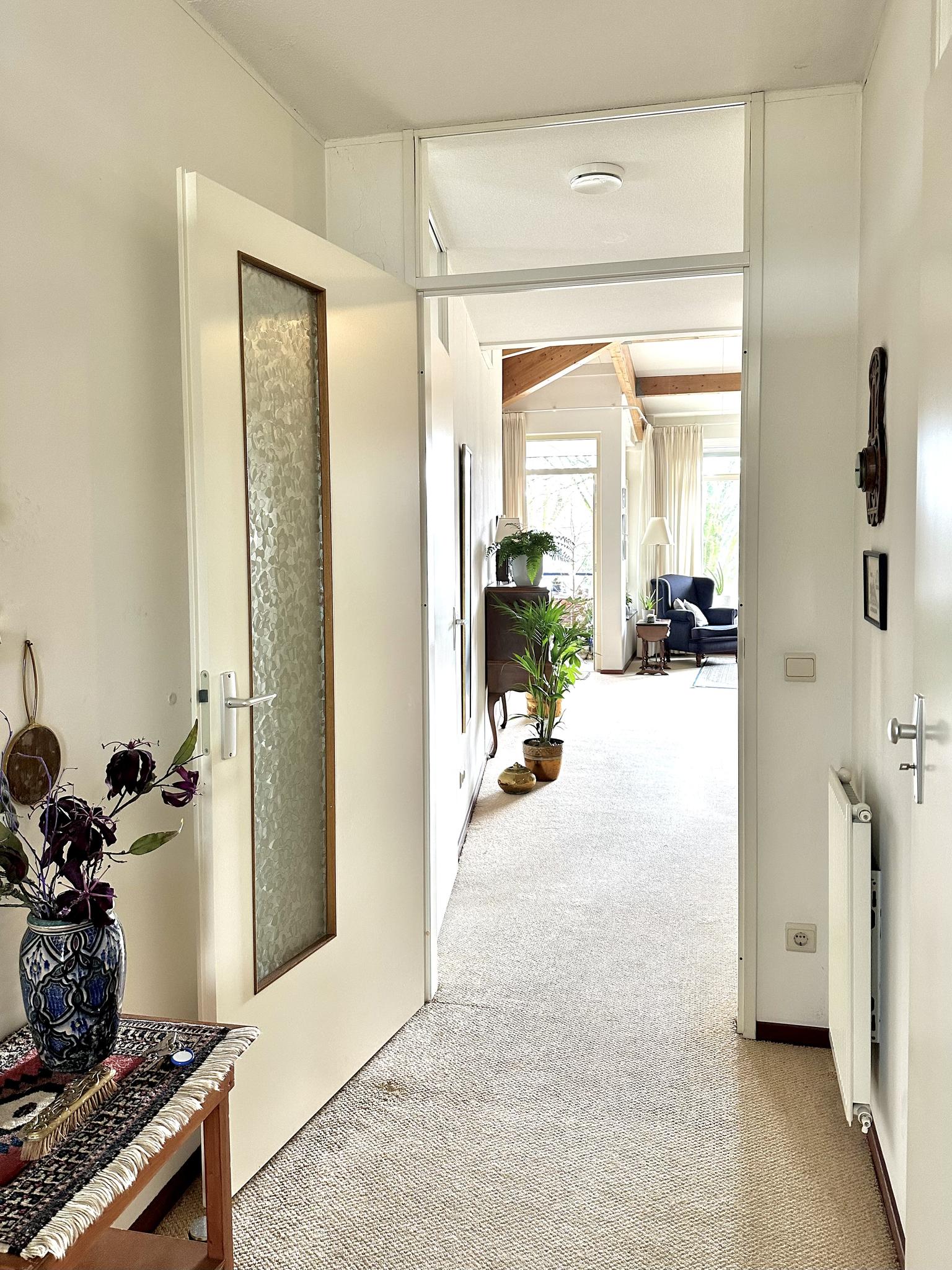 Tweede woonlaag: aan het einde van de galerij ligt het appartement fraai op de hoek. Entree, hal met toilet en berging/meterkast, open keuken met nette inrichting inclusief diverse apparatuur, bijkeuken met cv-ketel (Remeha 2023), wasmachine-aansluiting, en een WTW unit. Doordat het appartement op de bovenste woonlaag ligt heb je in de woonkamer een fraai en extra hoog plafond. Via de woonkamer heb je toegang tot de op het zuiden gelegen loggia. Vanaf de loggia kijk je mooi ver weg en door de hoekligging kun je door de glazen zijkant ook al in de ochtend van de zon genieten. Mede door de hoekligging heb je ook ramen in de slaapkamers die naar buiten uitkijken op het oosten.