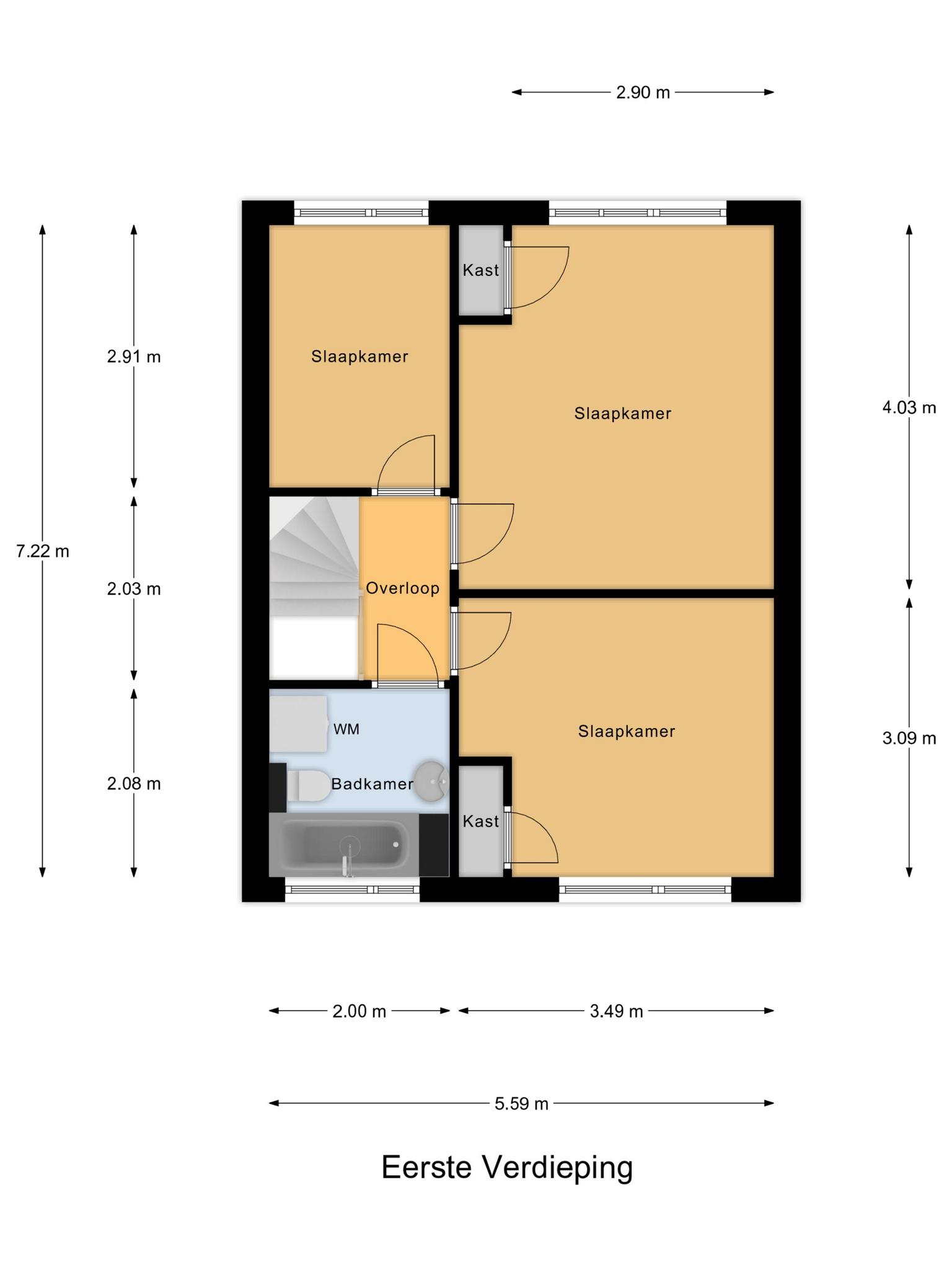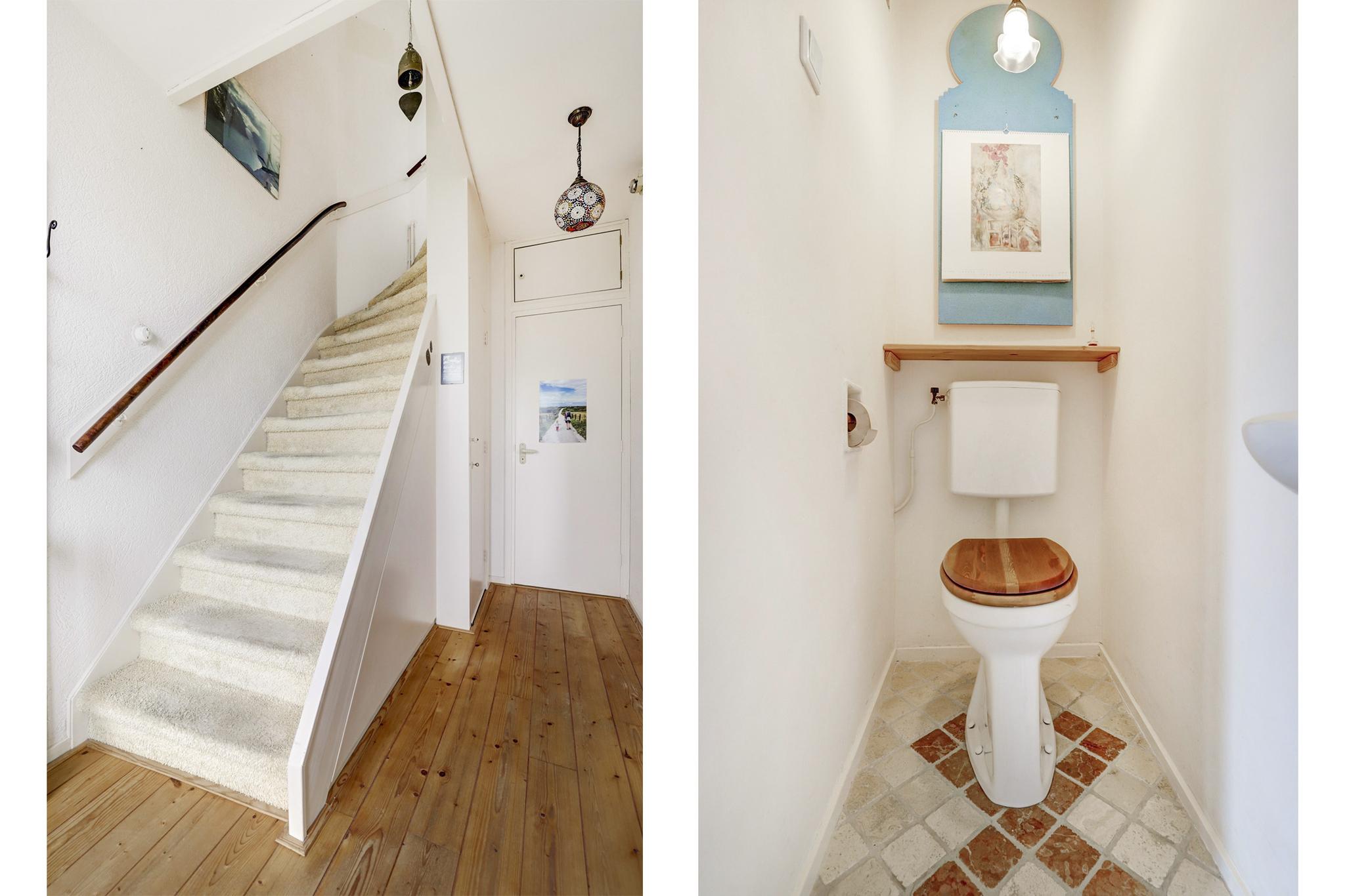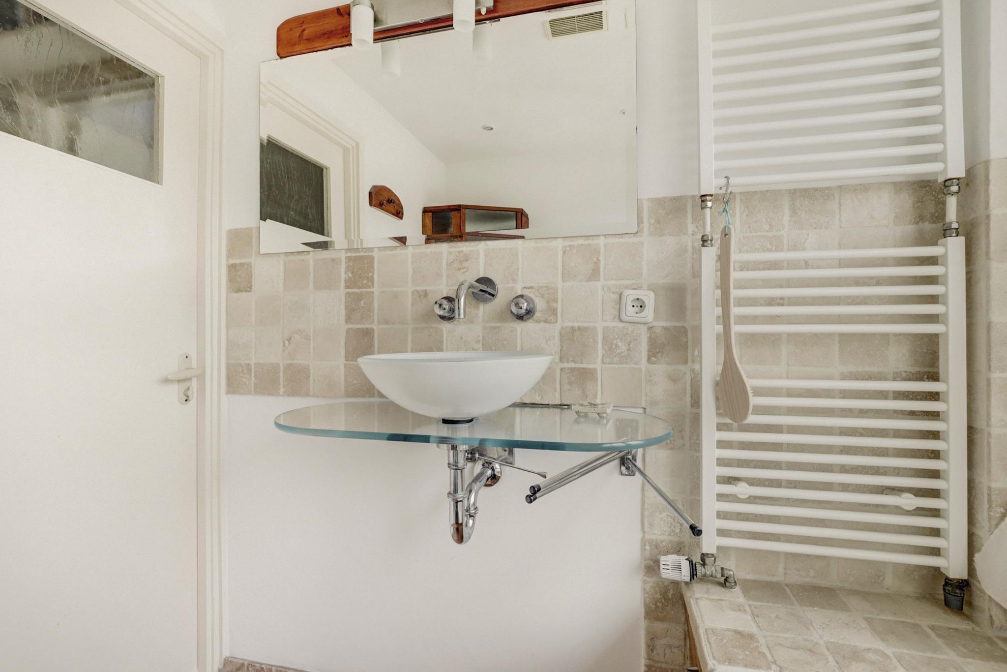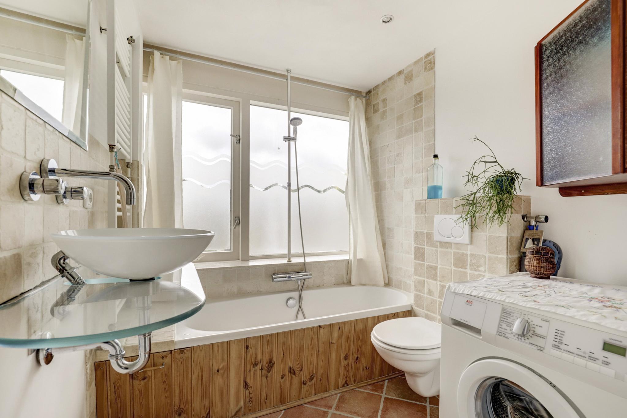 1e verdieping: overloop, moderne badkamer met ligbad/douche, wastafel, wc en wasmachine-aansluiting. Verder zijn er nog 3 slaapkamers met vaste kasten. De grote slaapkamer is voorzien van een airco-unit.