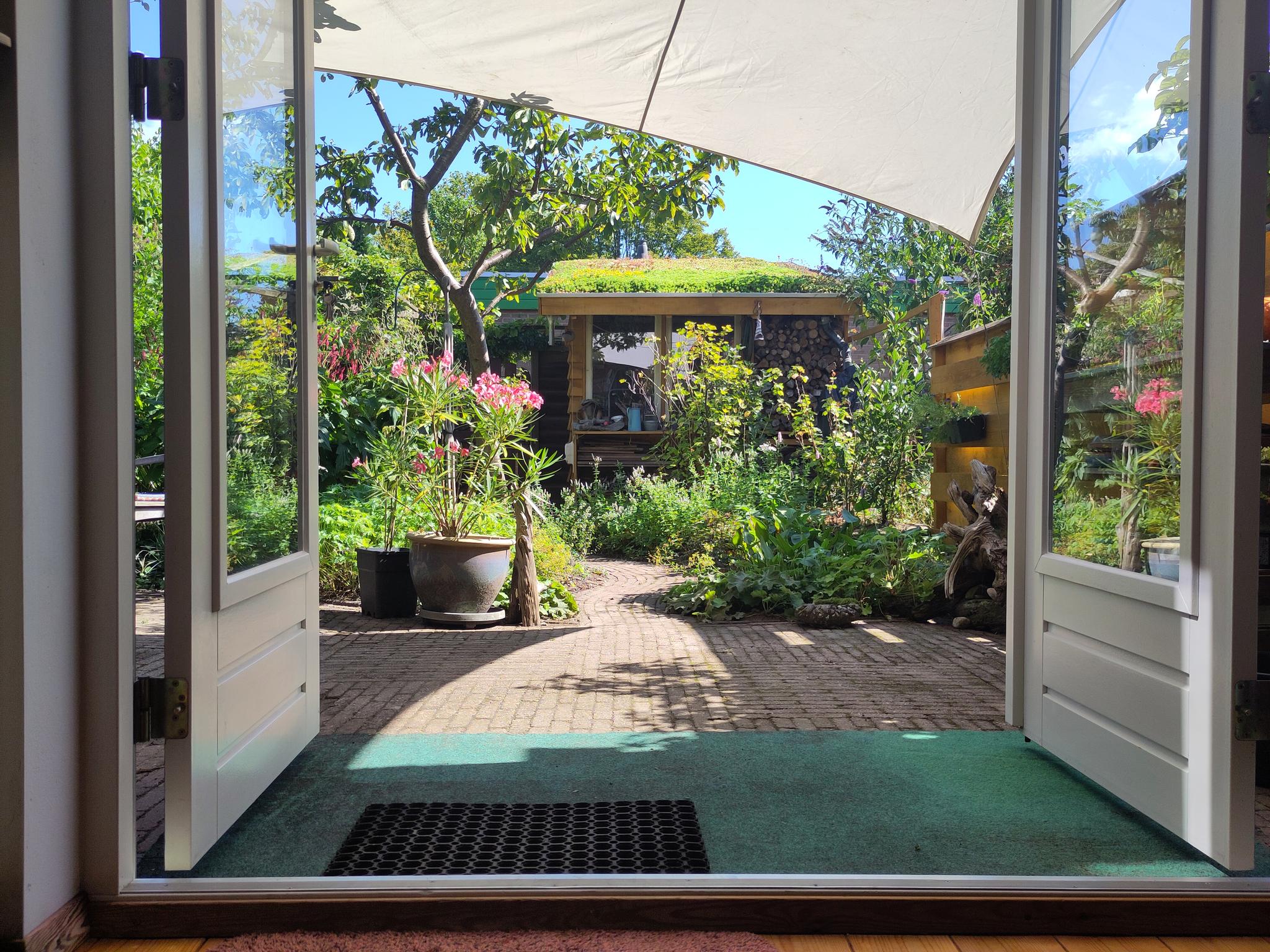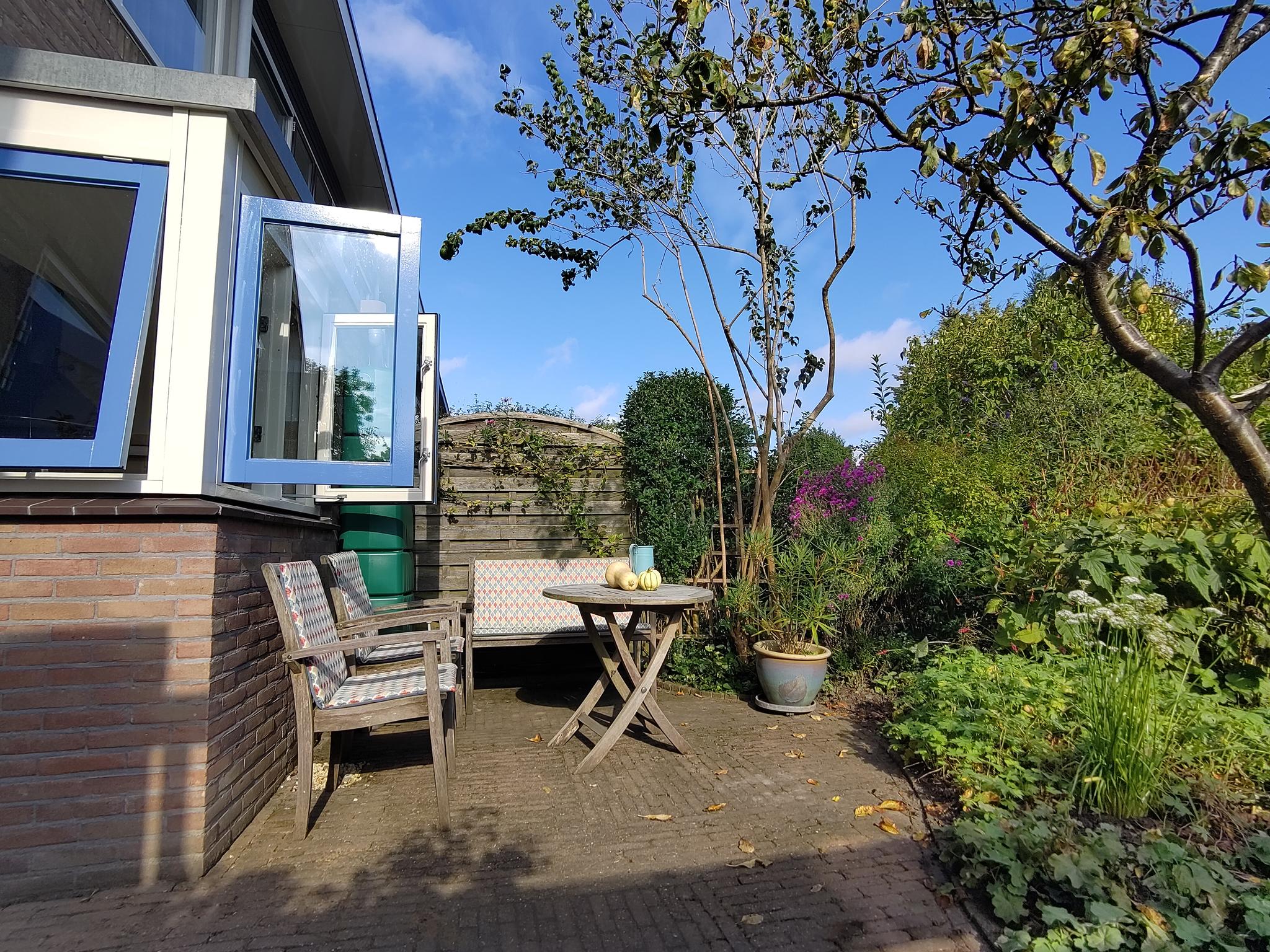 Bijzonder aan dit huis is de natuurvriendelijke tuin die met liefde is opgebouwd en verzorgd. Elk seizoen bloeit er wel iets. Door de regenwaterafkoppeling – met een overloop van de hoge regenton in een eigen wadi – is er geen kraanwater nodig voor het onderhoud. Het bijzondere sedumdak (groendak) op het vrijliggende schuurtje maakt de tuin helemaal af.