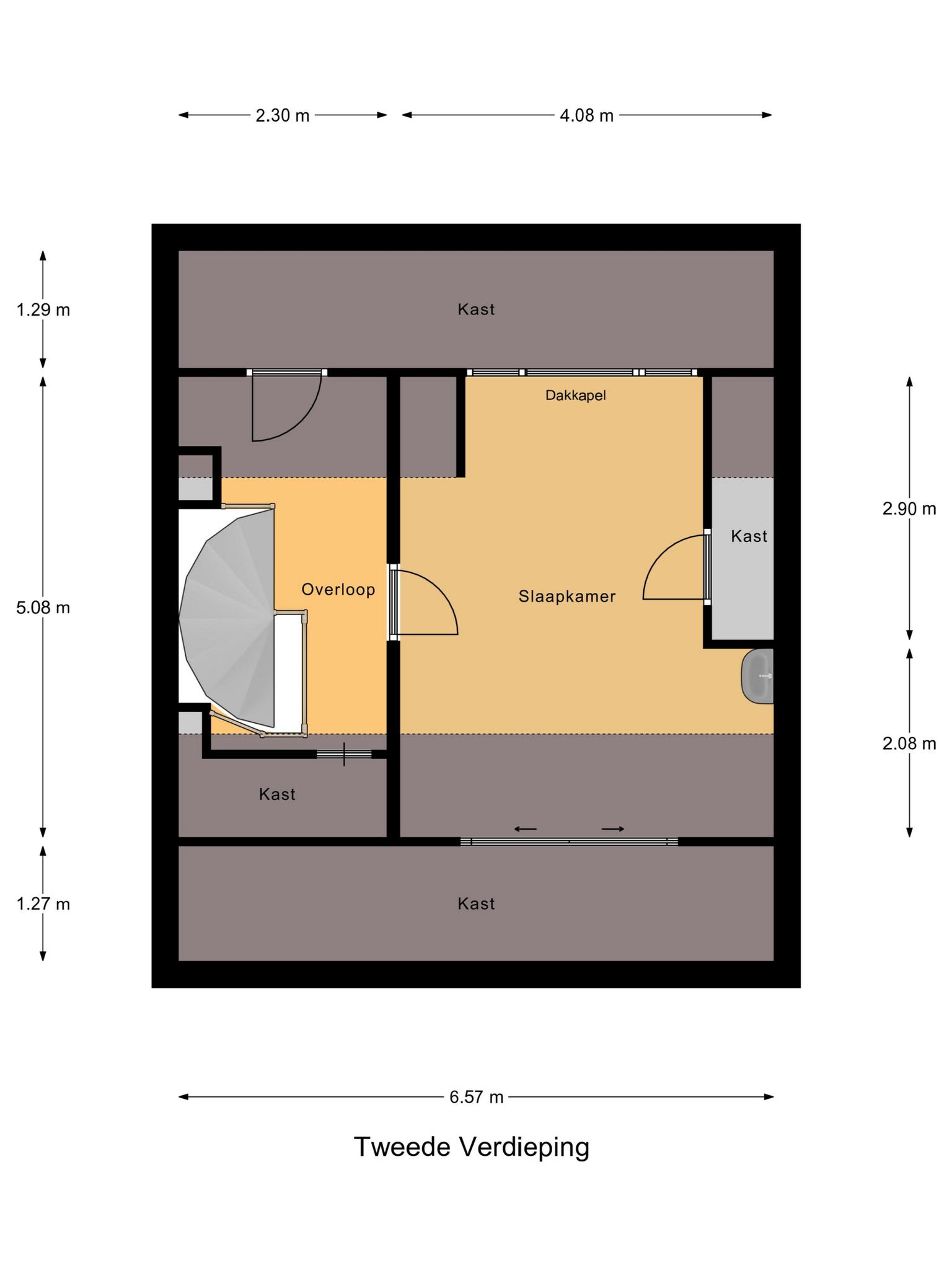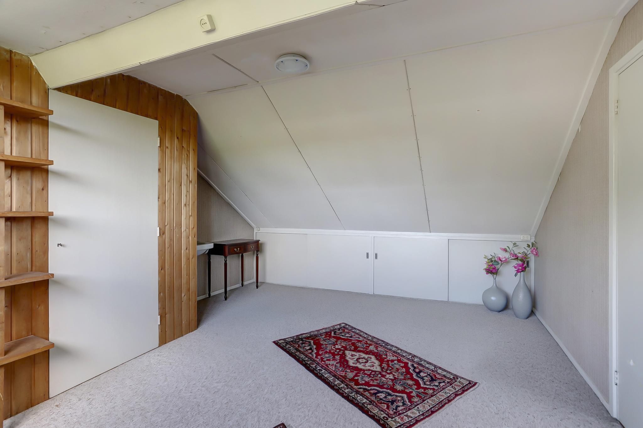 Tweede verdieping: voorzolder met aan twee zijdes bergruimte, zolderkamer met dakkapel en vaste kasten voor de nodige bergruimte.