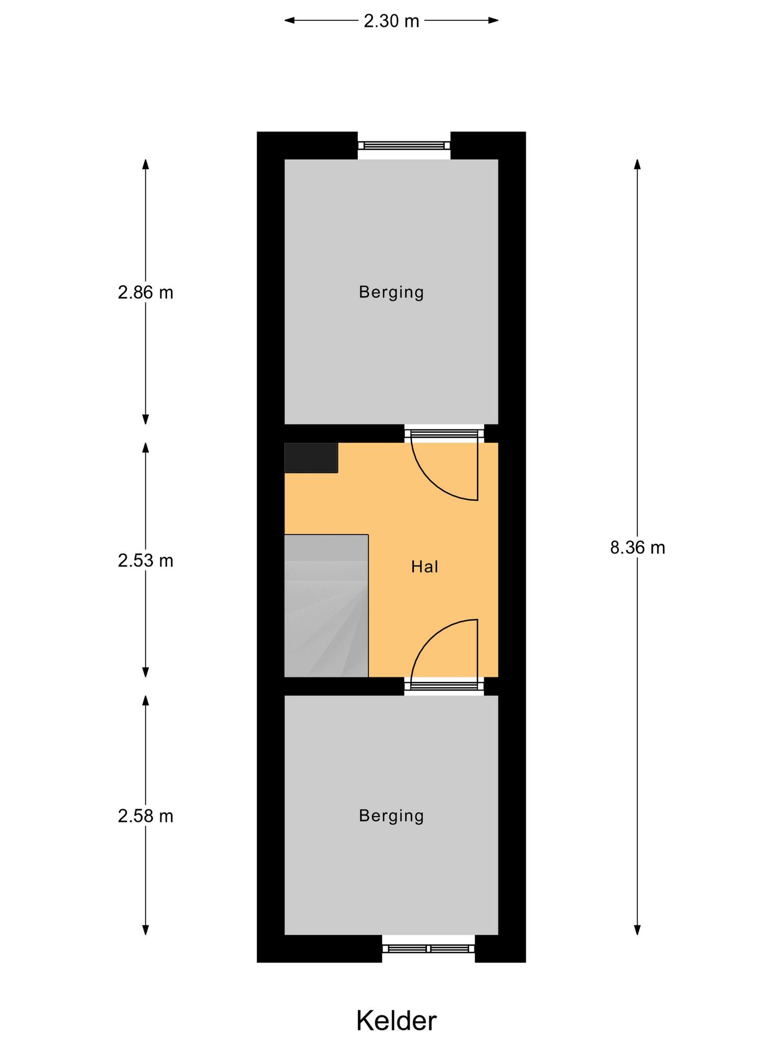 Kelder: ruime kelderberging, verdeeld in drie gedeeltes waarbij in een gedeelte de cv-ketel hangt.