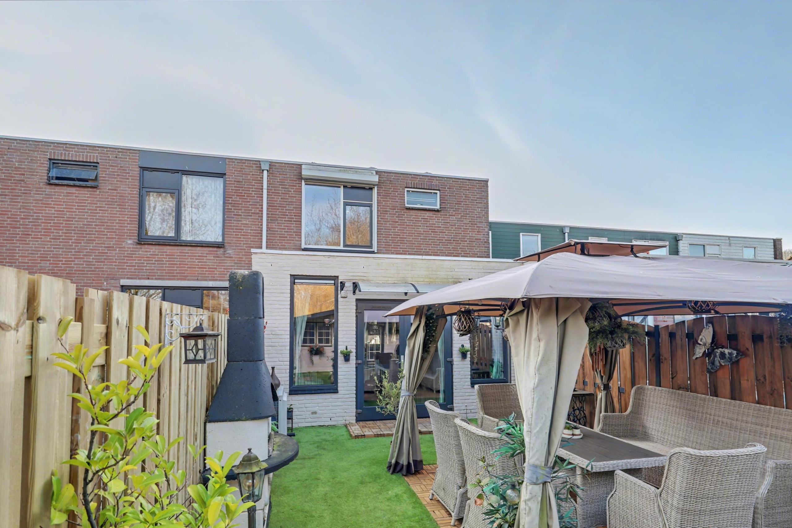 Deze uitgebouwde tussenwoning ligt aan de rand van een rustige woonwijk, grenzend aan een waterpartij en groenstrook. Het huis heeft een energielabel A door volledige isolatie en zonnepanelen.