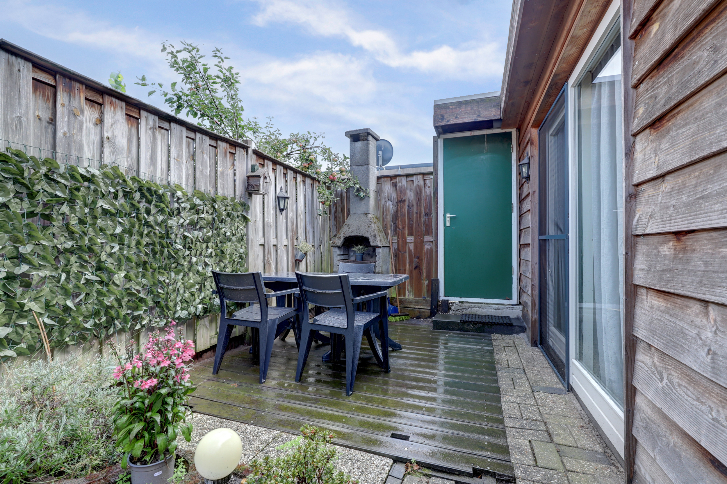 De tuin ligt op het zuidoosten en is voorzien van een achterom.
