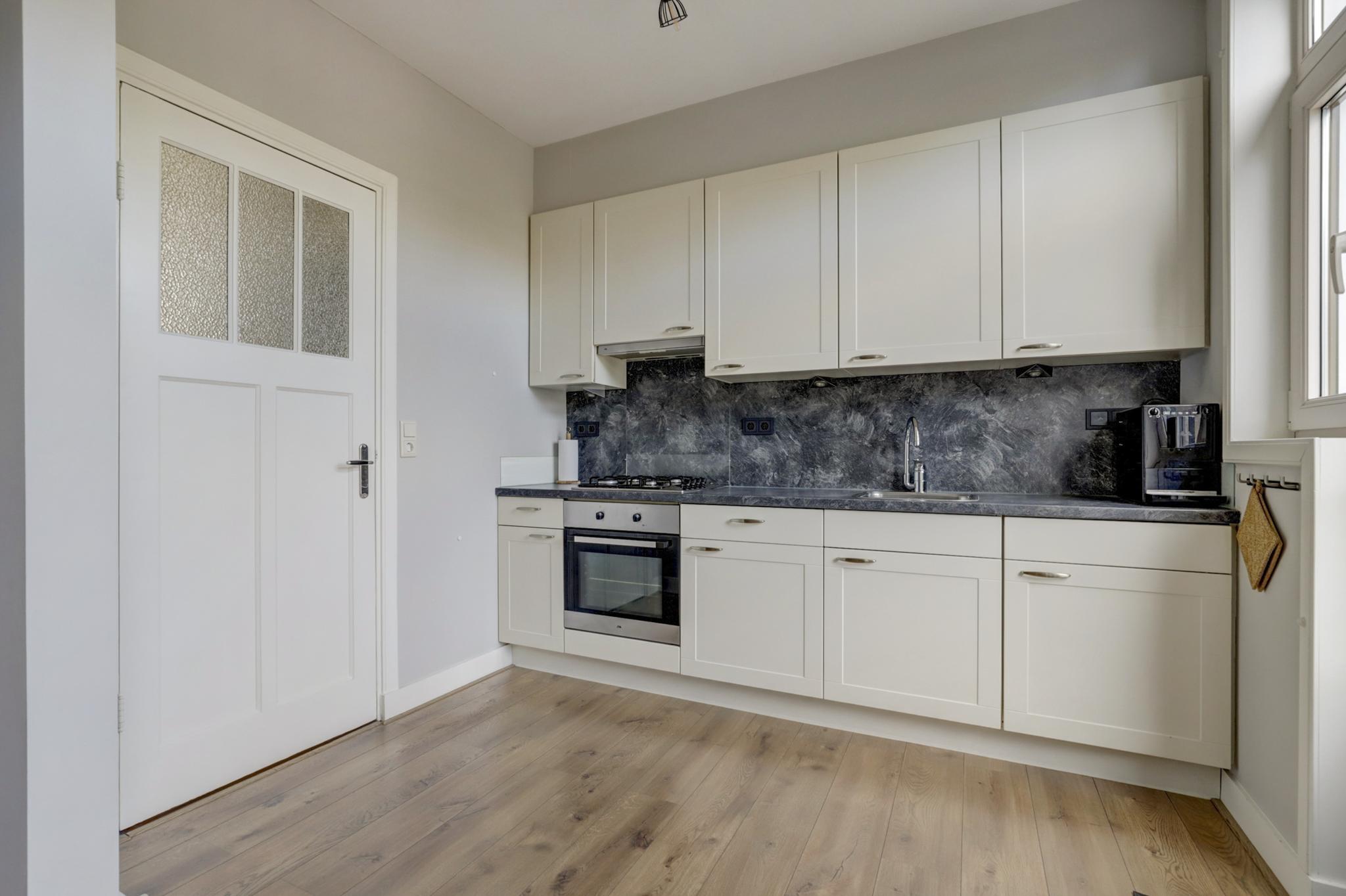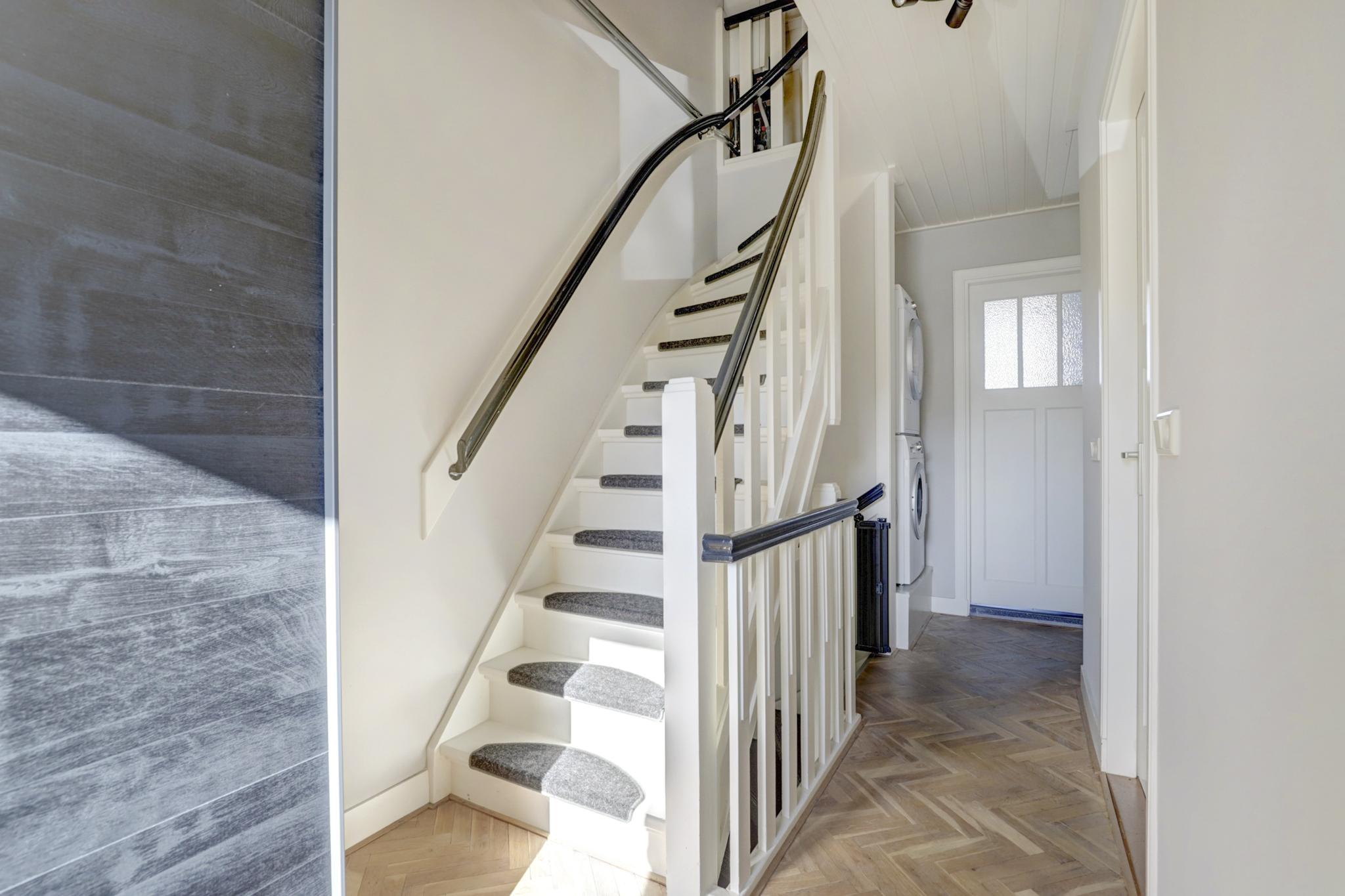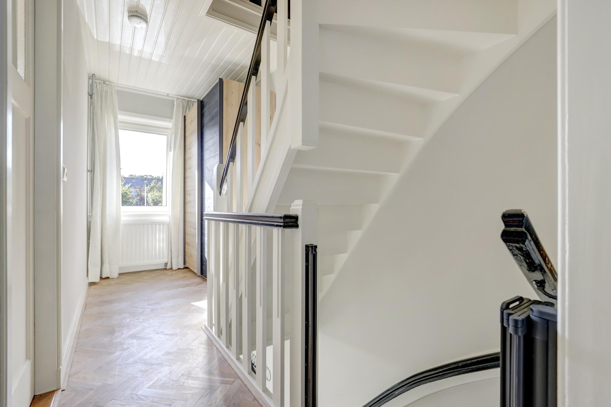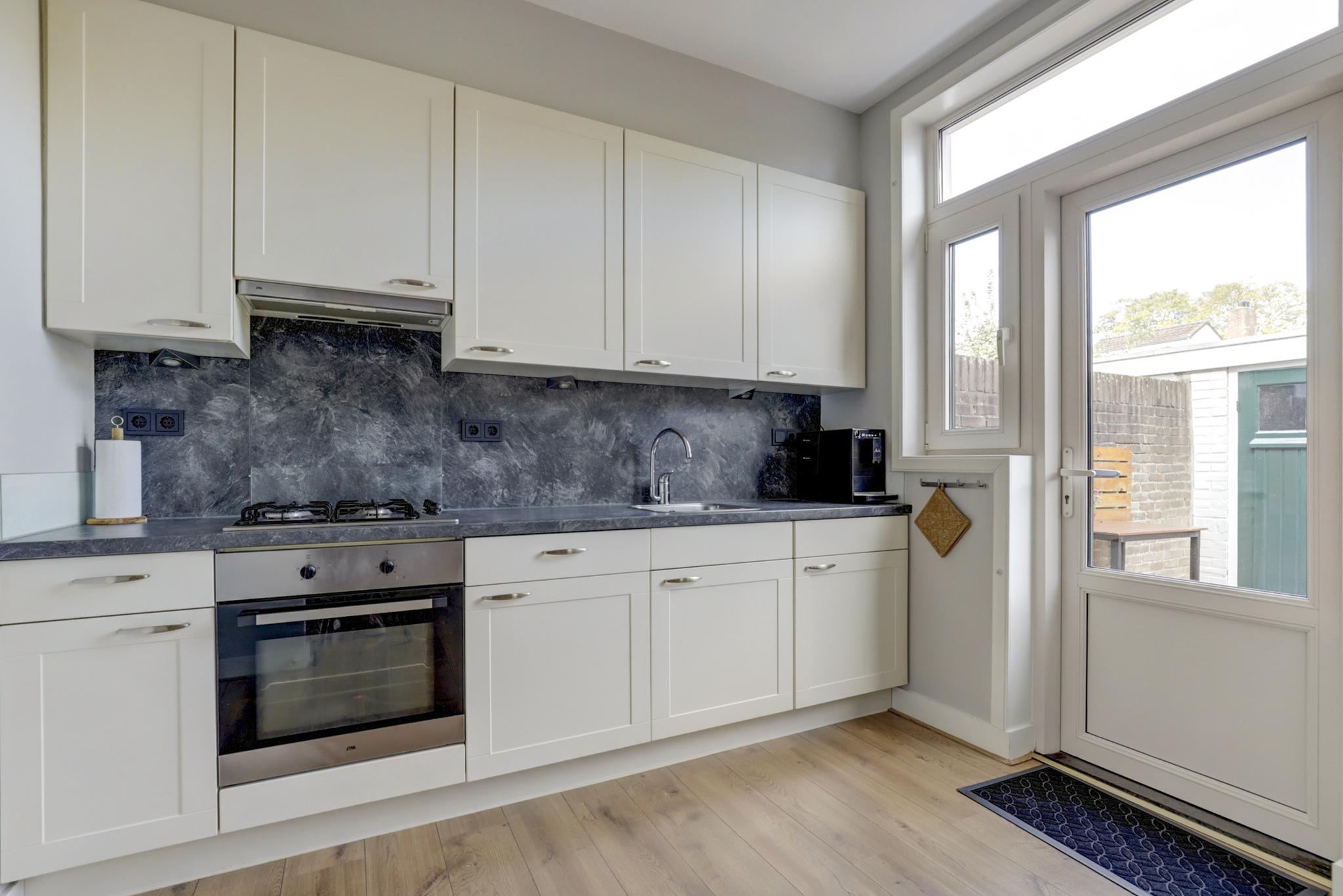 Begane grond: entree, hal met de originele vloer, toegang tot de kelderberging (1.86 meter stahoogte) met vernieuwde meterkast en toilet. Via de gang zijn zowel de keuken als de woonkamer bereikbaar. De open keuken is voorzien van een complete inrichting inclusief diverse inbouwapparatuur, zoals een vaatwasser, koelkast, gasfornuis, afzuigkap en een oven. De lichte woonkamer heeft nog de originele en-suite constructie en heeft aan de voorzijde een gezellige erker. Aan de achterzijde tref je dubbele tuindeuren aan, daarnaast kun je ook via de keukendeur naar de tuin.