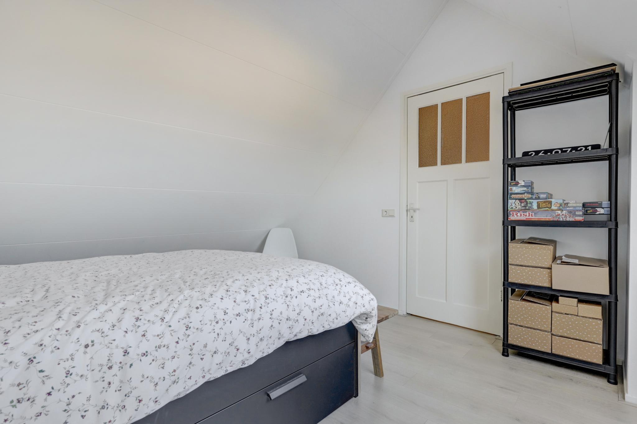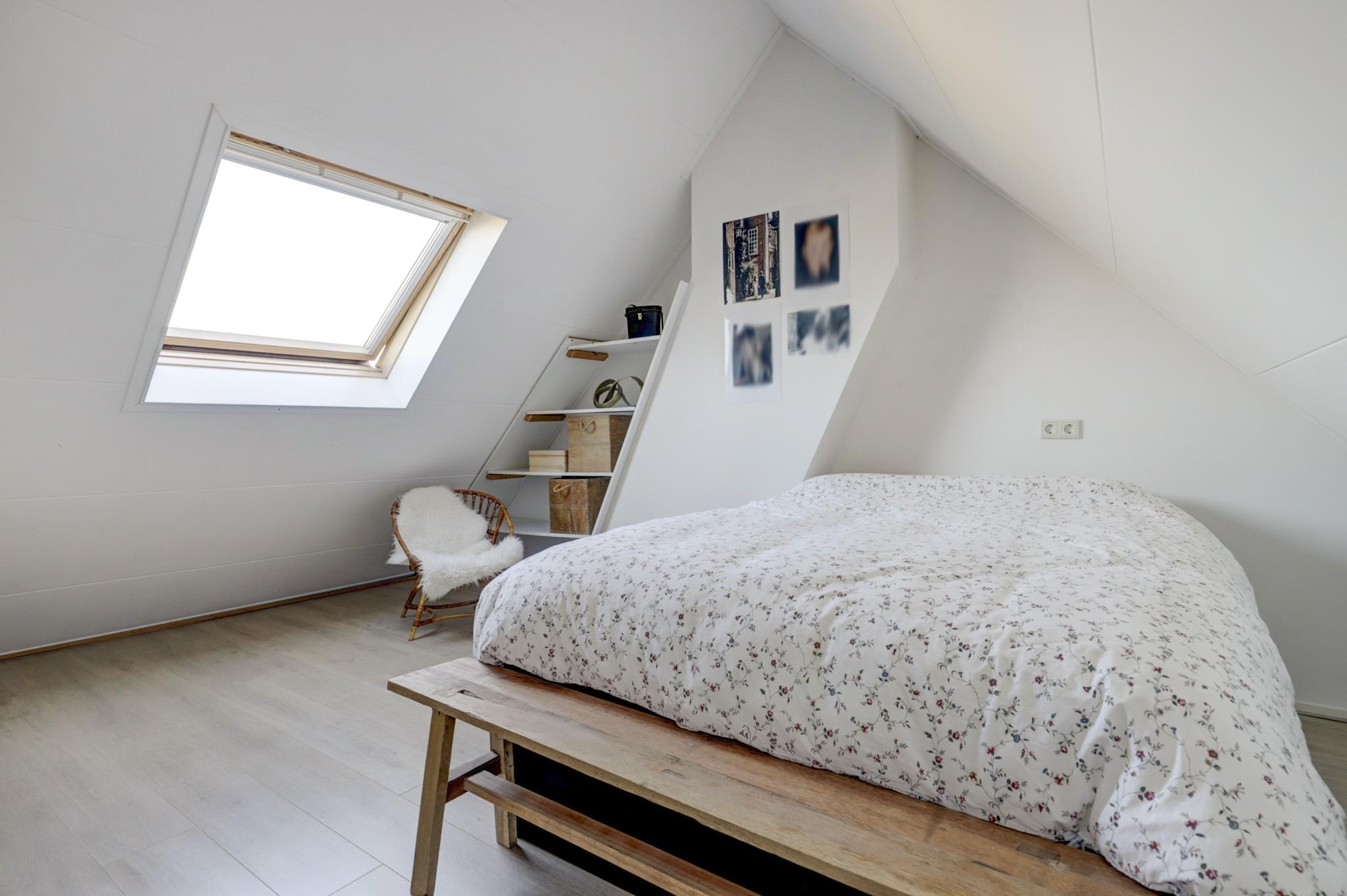 Tweede verdieping: via een vaste trap bereik je eerst de voorzolder bergruimte waar de cv-ketel hangt. Daarna is er een ruime derde slaapkamer die is voorzien van een groot dakraam.