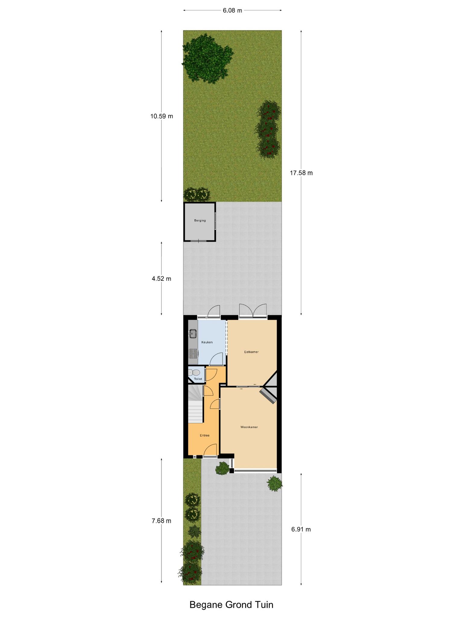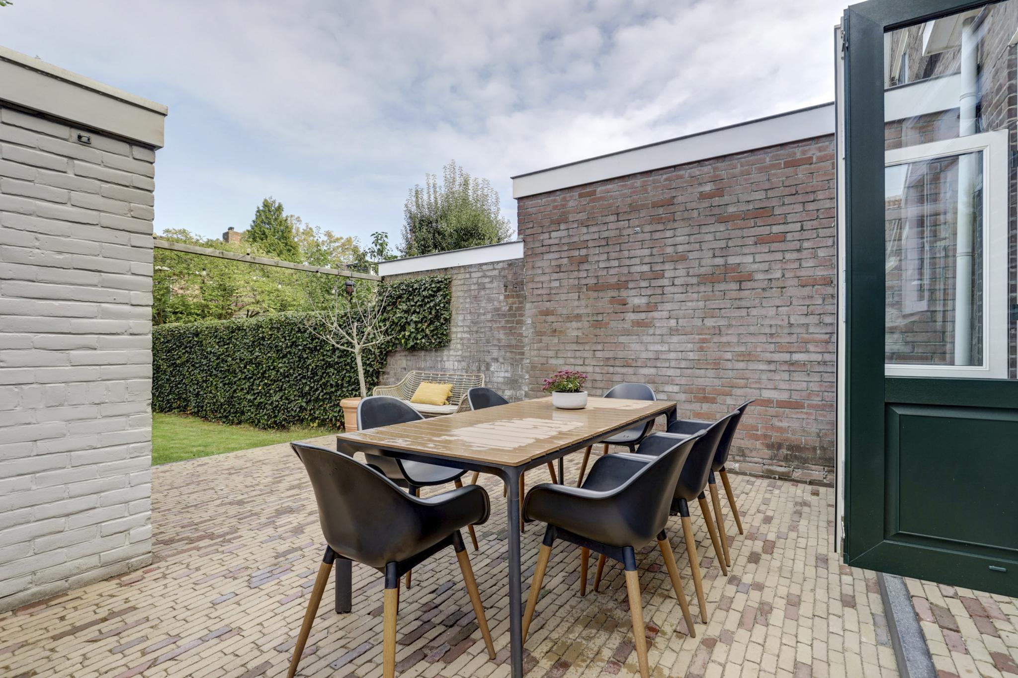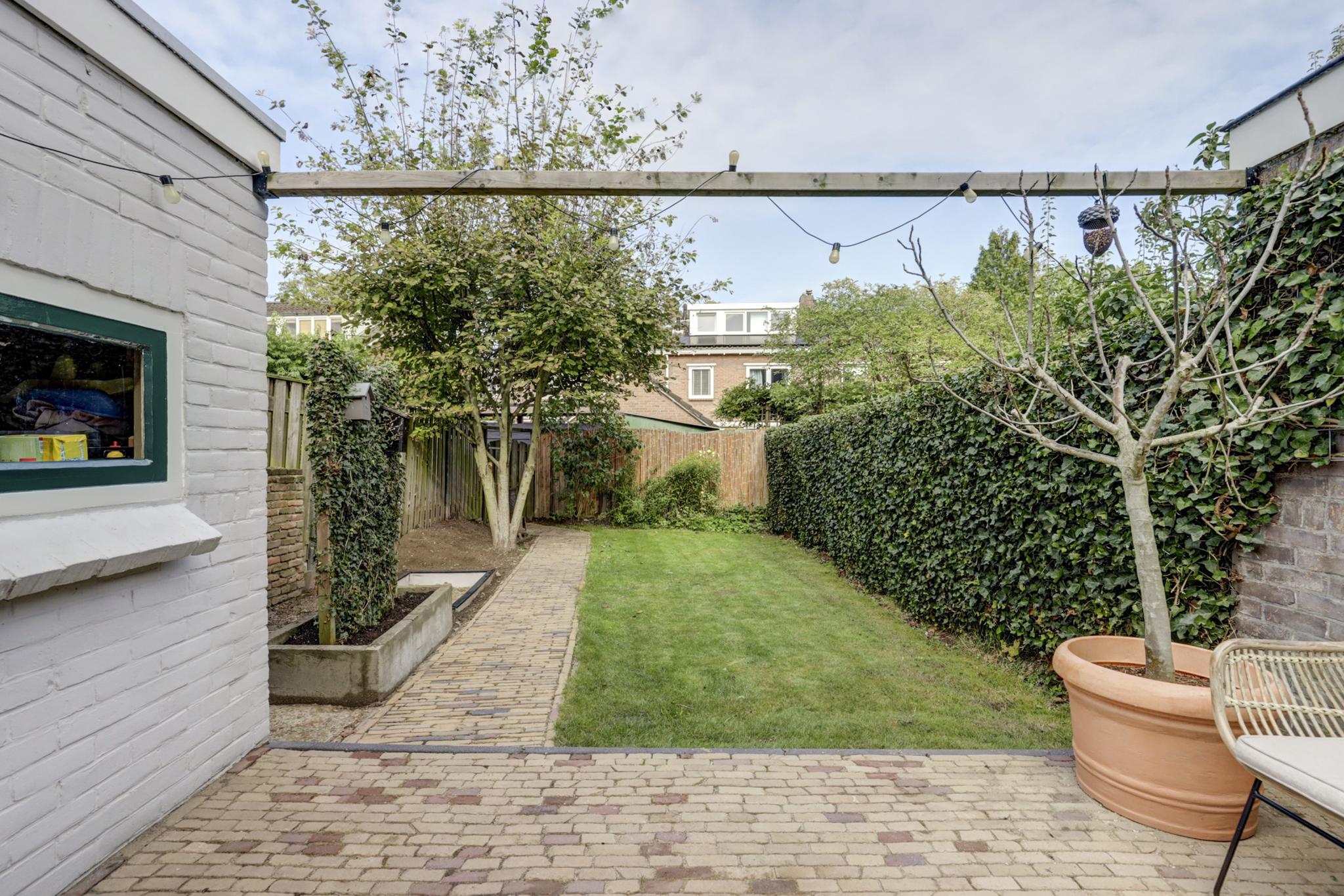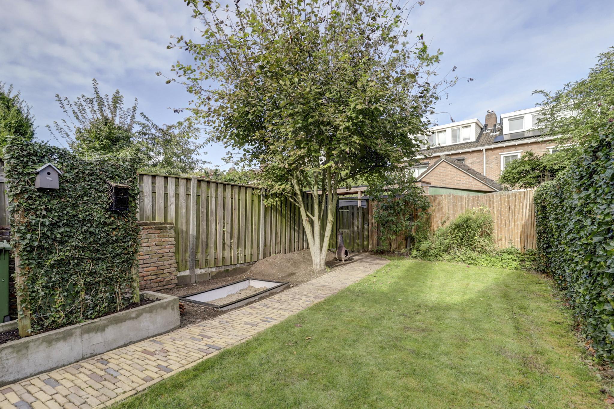 De achtertuin is ongeveer 15 meter diep en ligt op het noordwesten. Dat betekent dat je de gehele dag zon hebt. In de tuin, voorzien van een achterom, staat een stenen berging die is voorzien van elektriciteit.