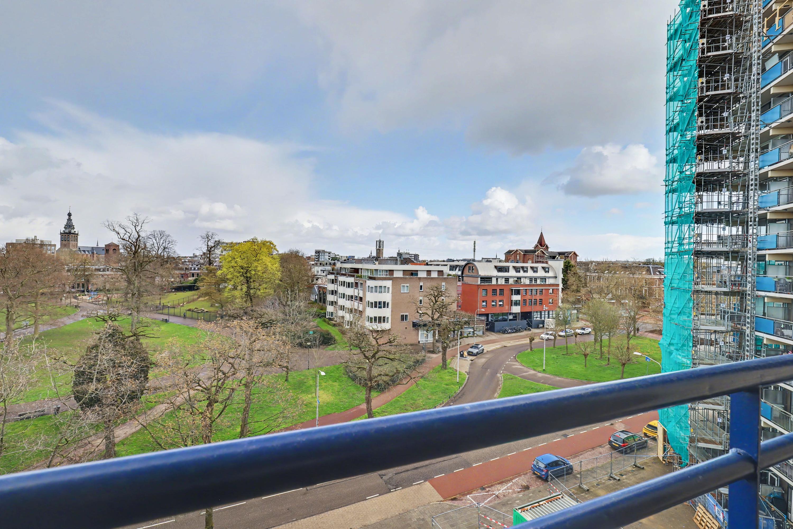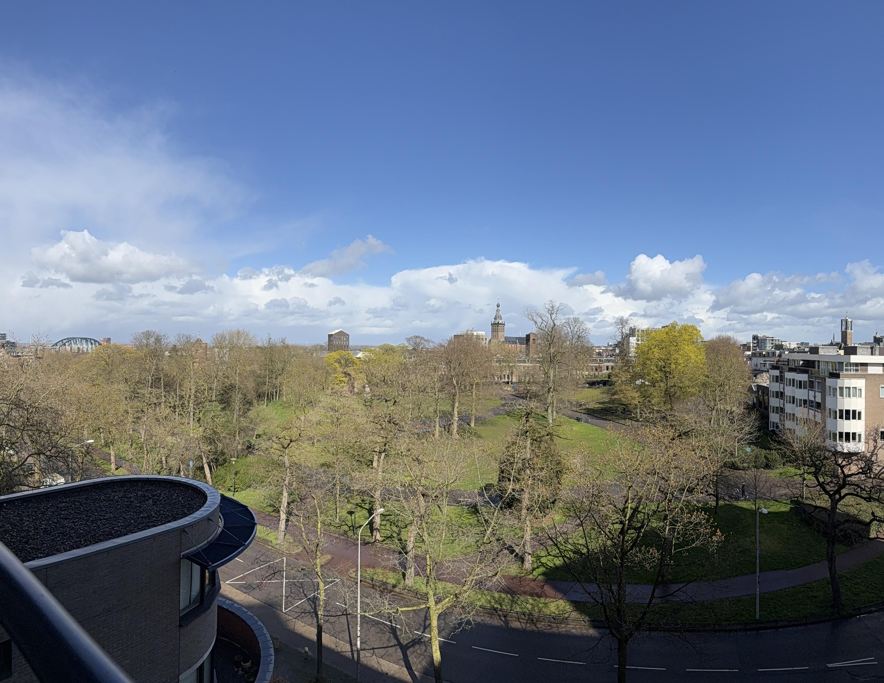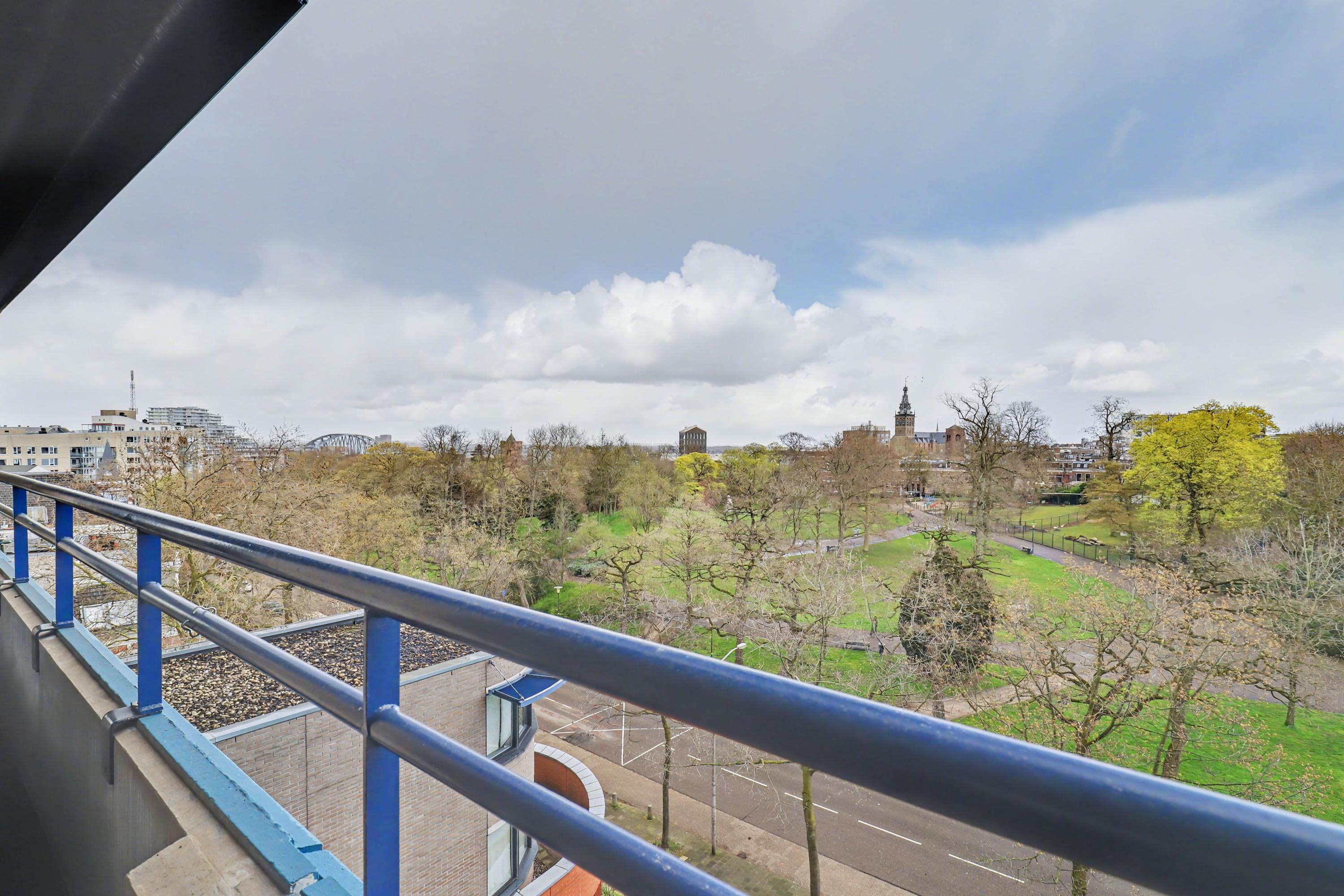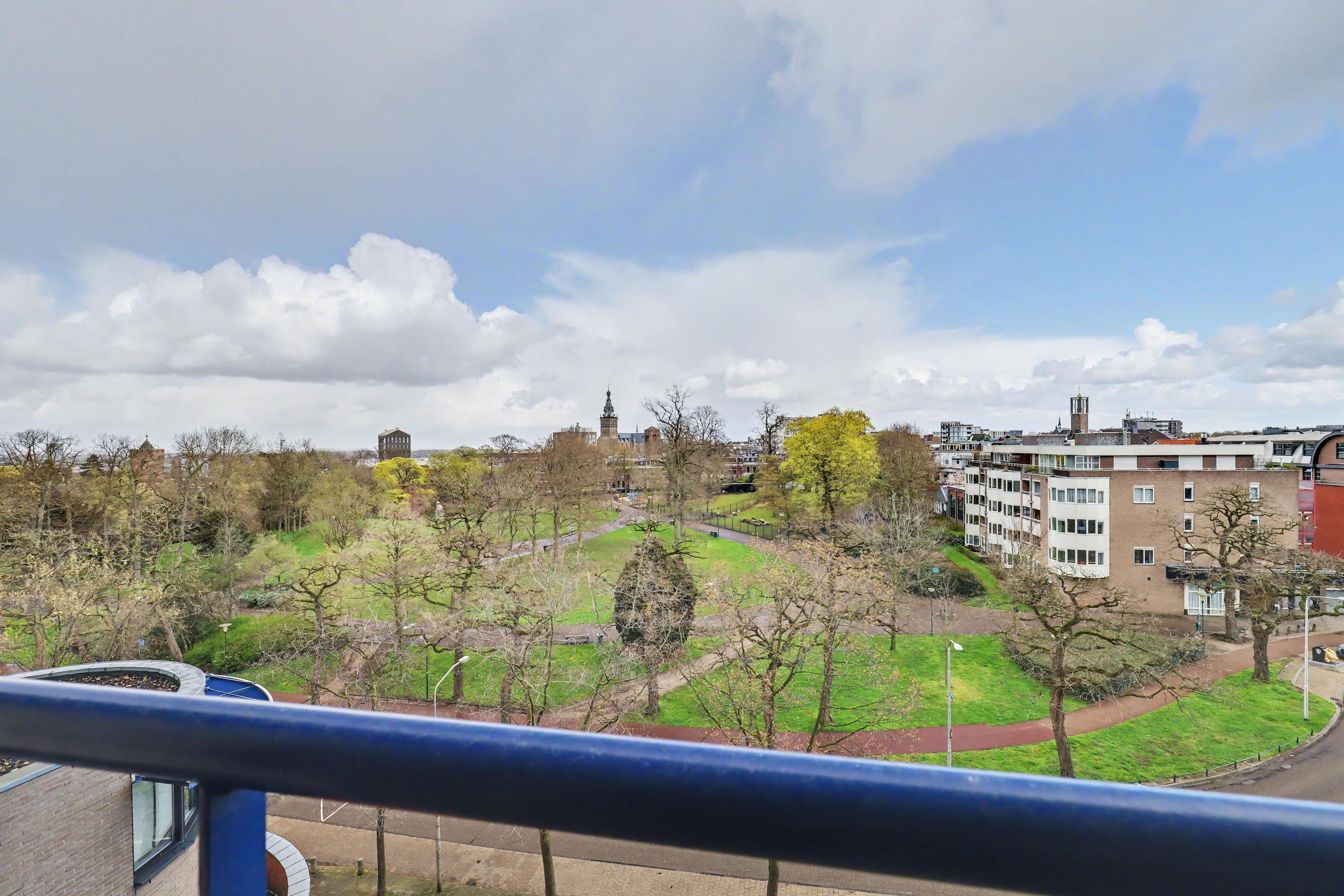 De woonkamer heeft een fraai uitzicht op het Kronenburgerpark en de St. Stevenskerk met zijn iconische toren en is circa 26 m2 groot.