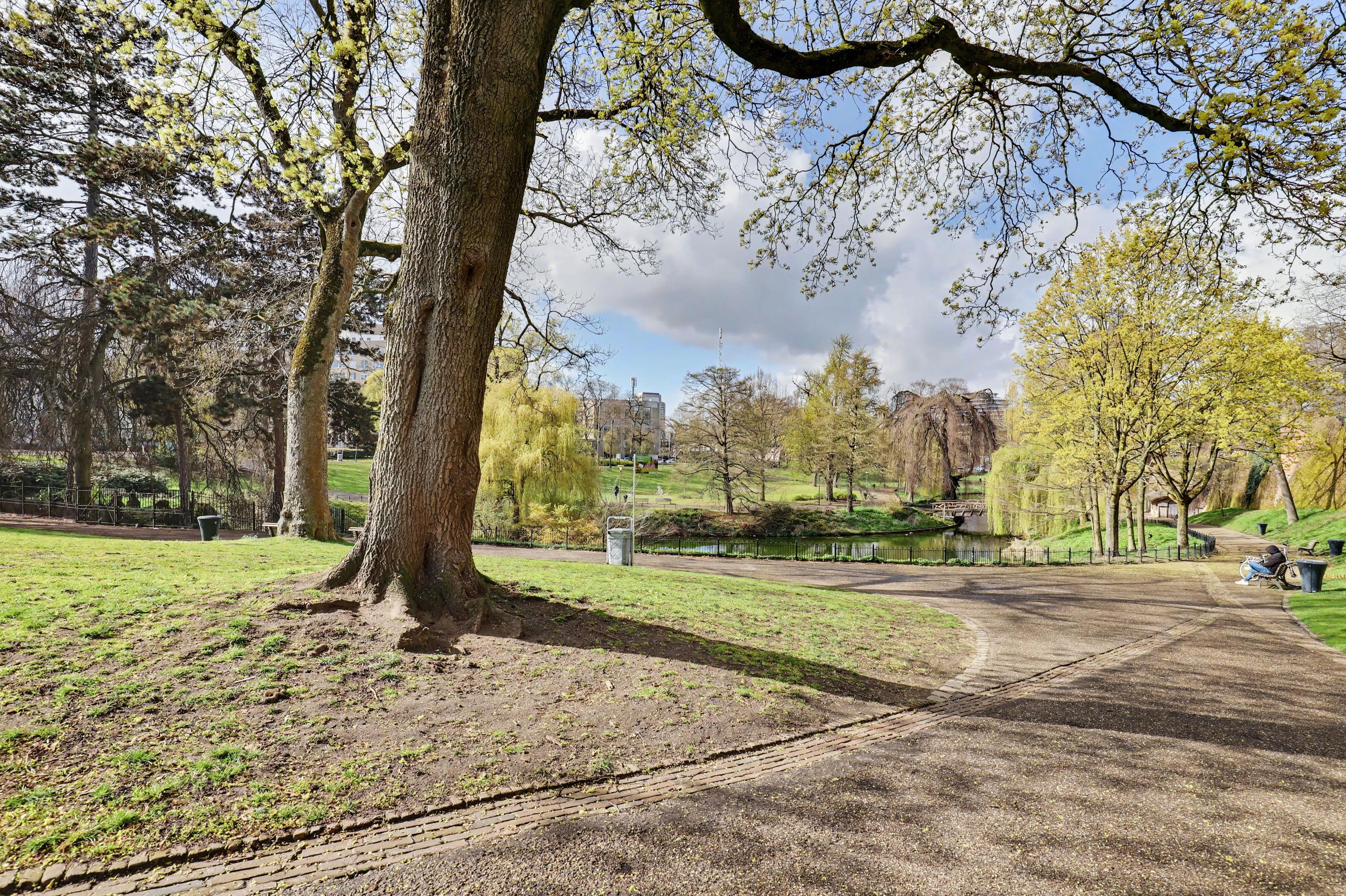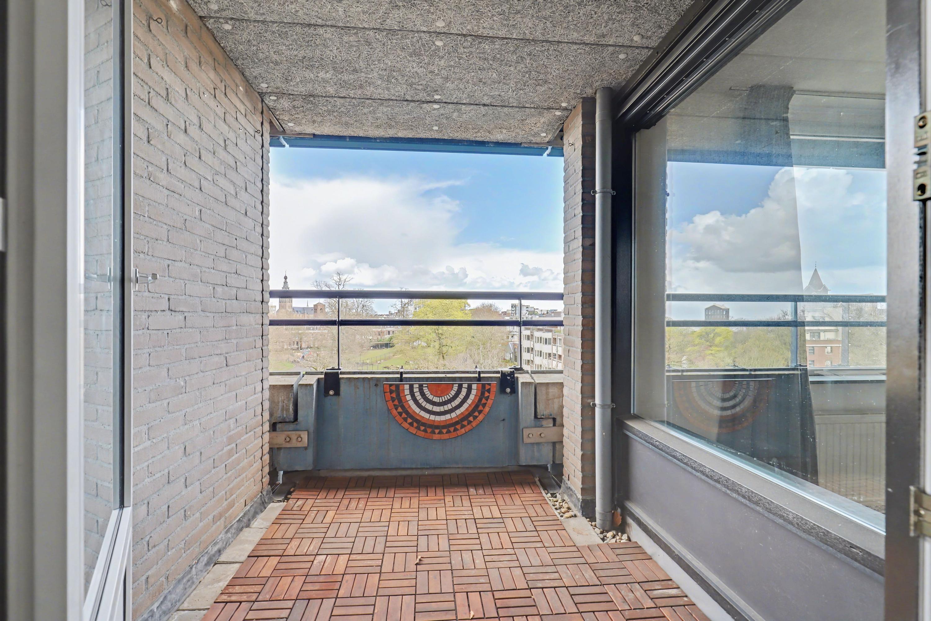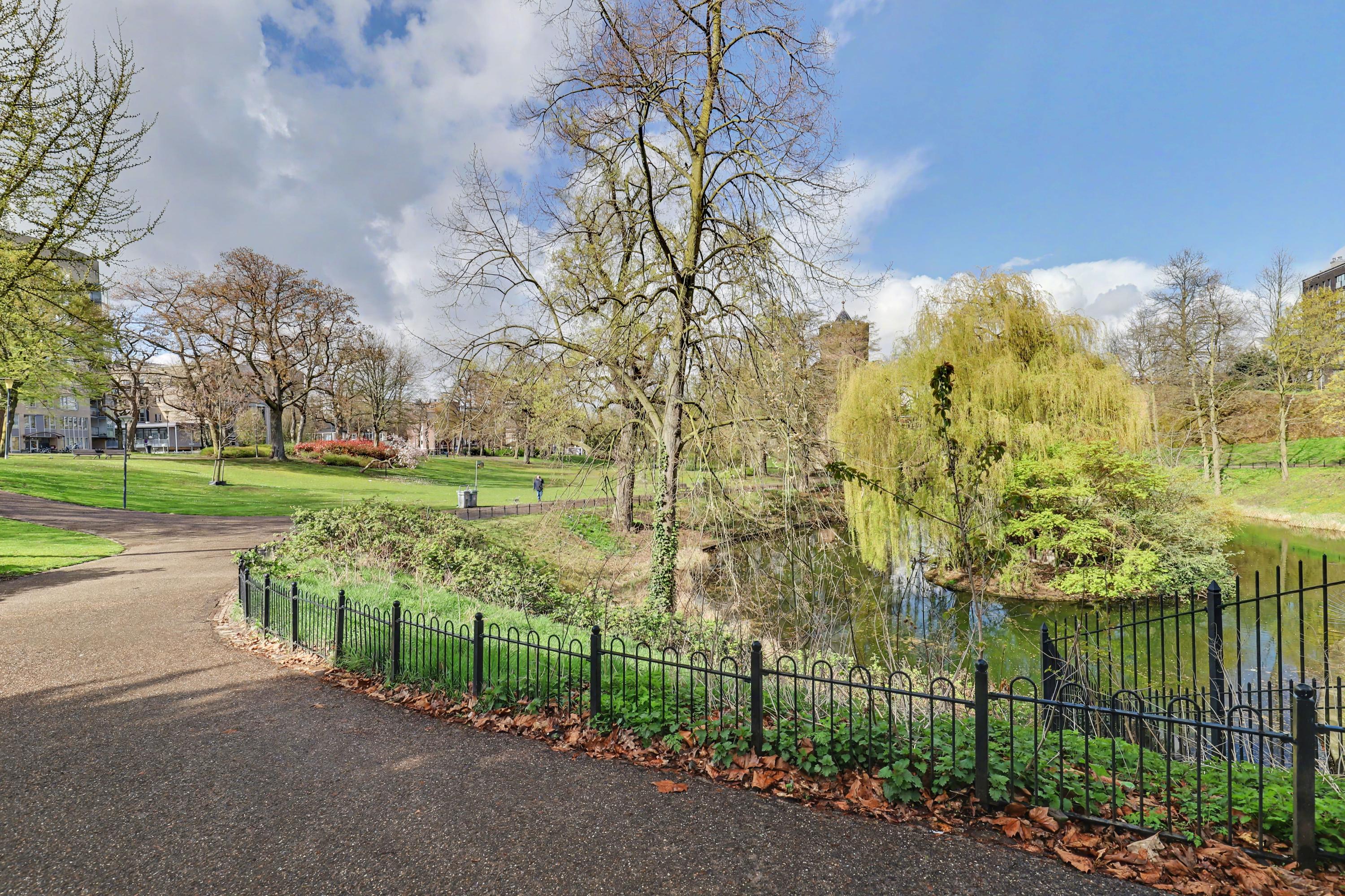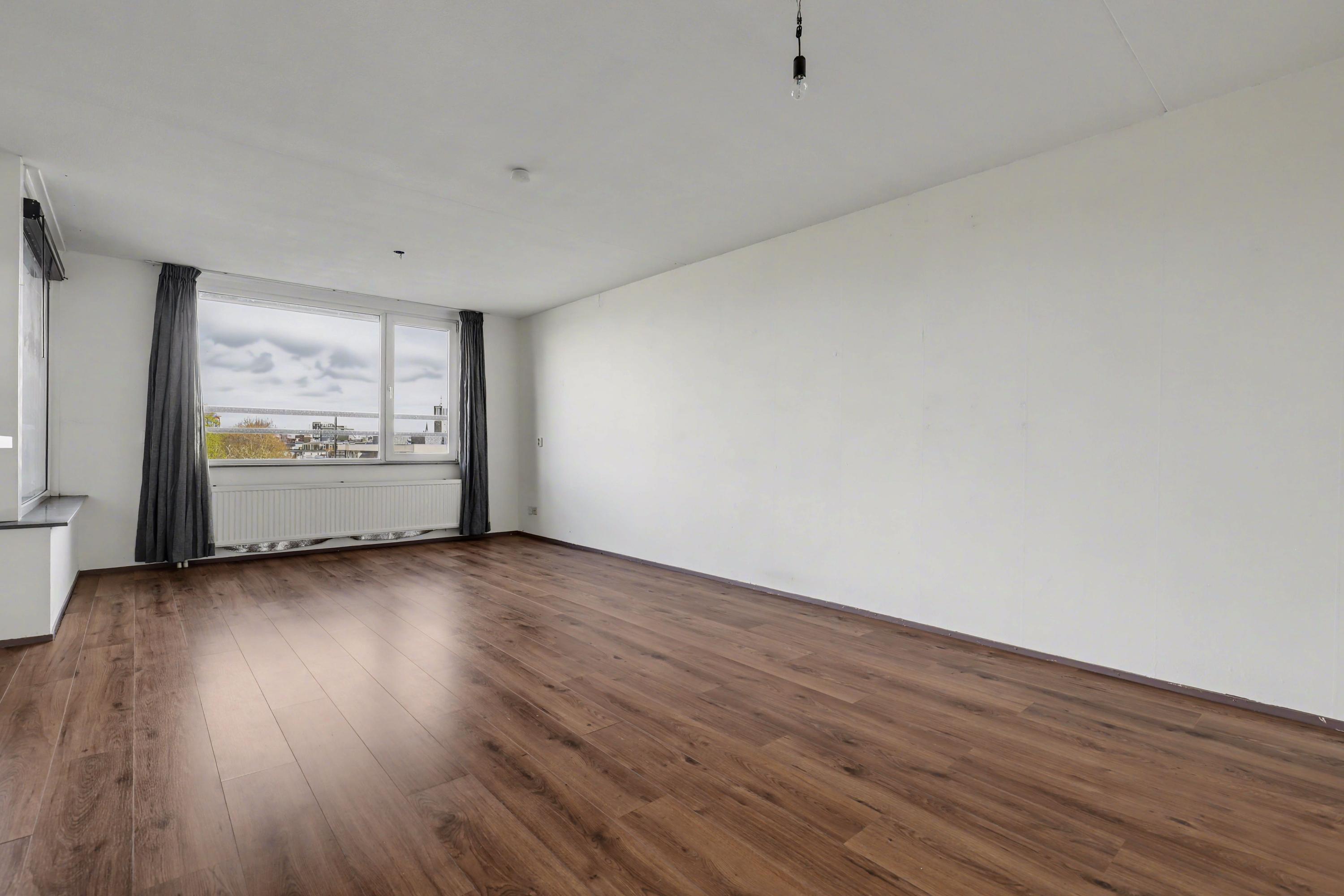 De woonkamer heeft een fraai uitzicht op het Kronenburgerpark en de St. Stevenskerk met zijn iconische toren en is circa 26 m2 groot.