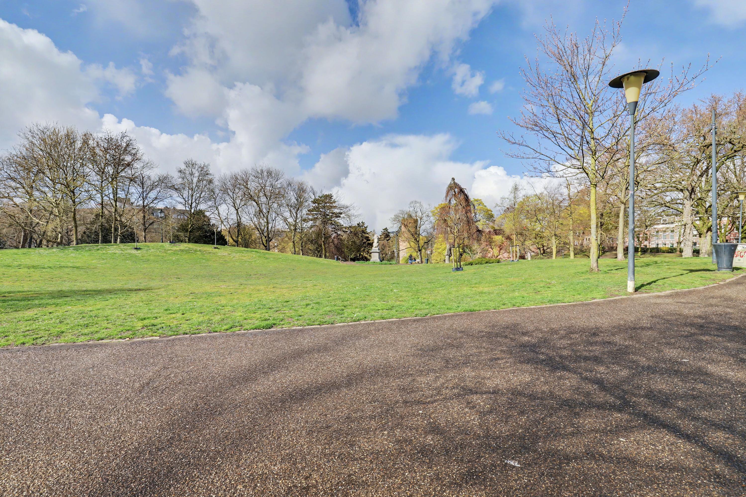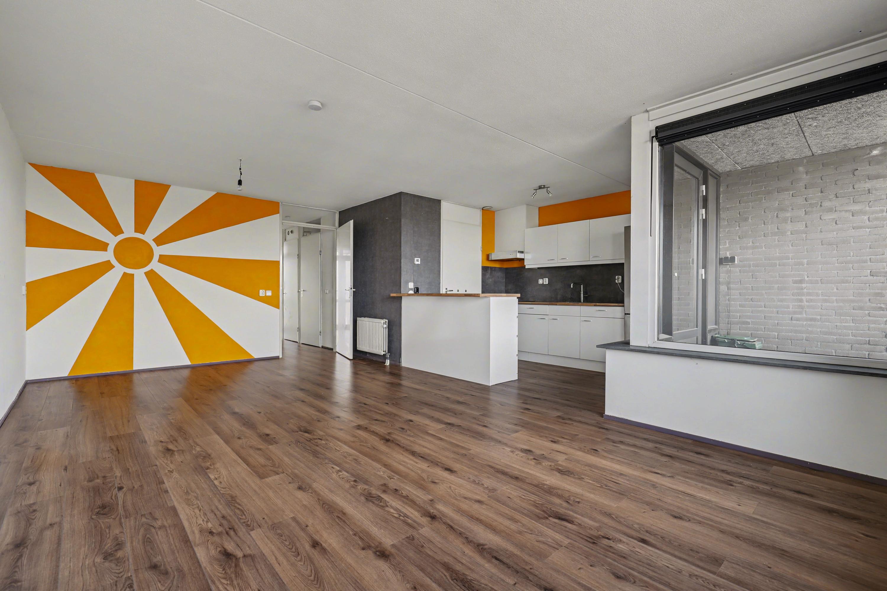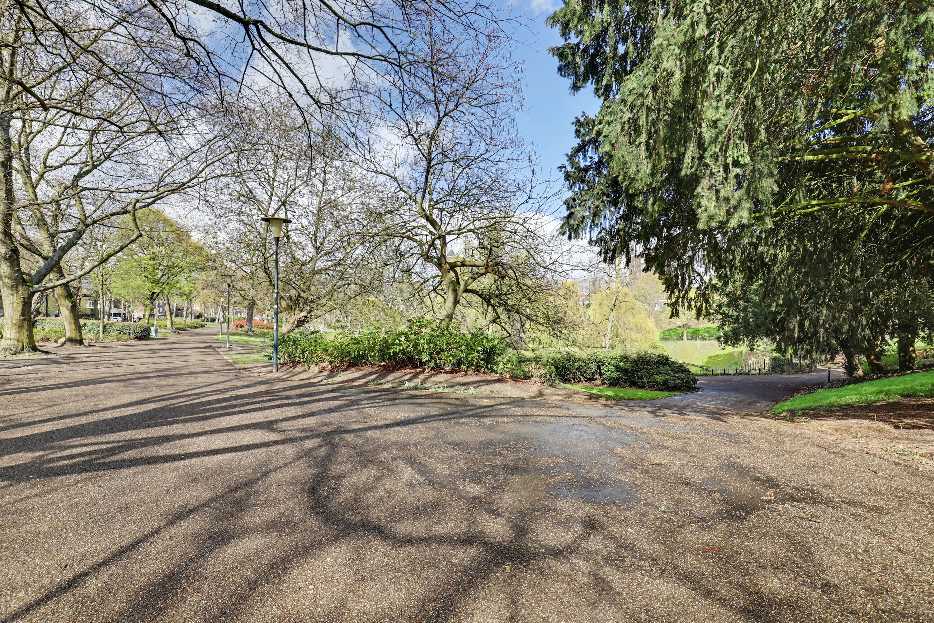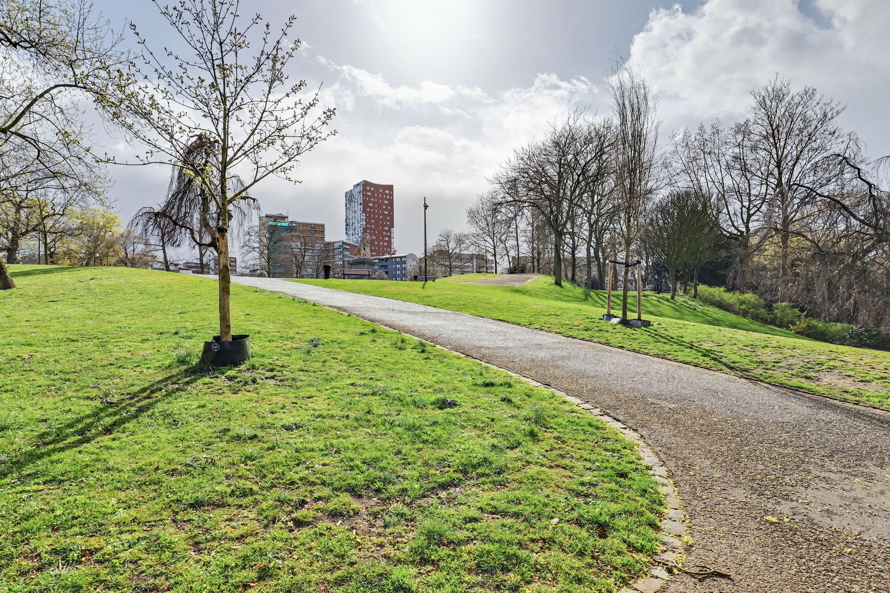 De woonkamer heeft een fraai uitzicht op het Kronenburgerpark en de St. Stevenskerk met zijn iconische toren en is circa 26 m2 groot.
