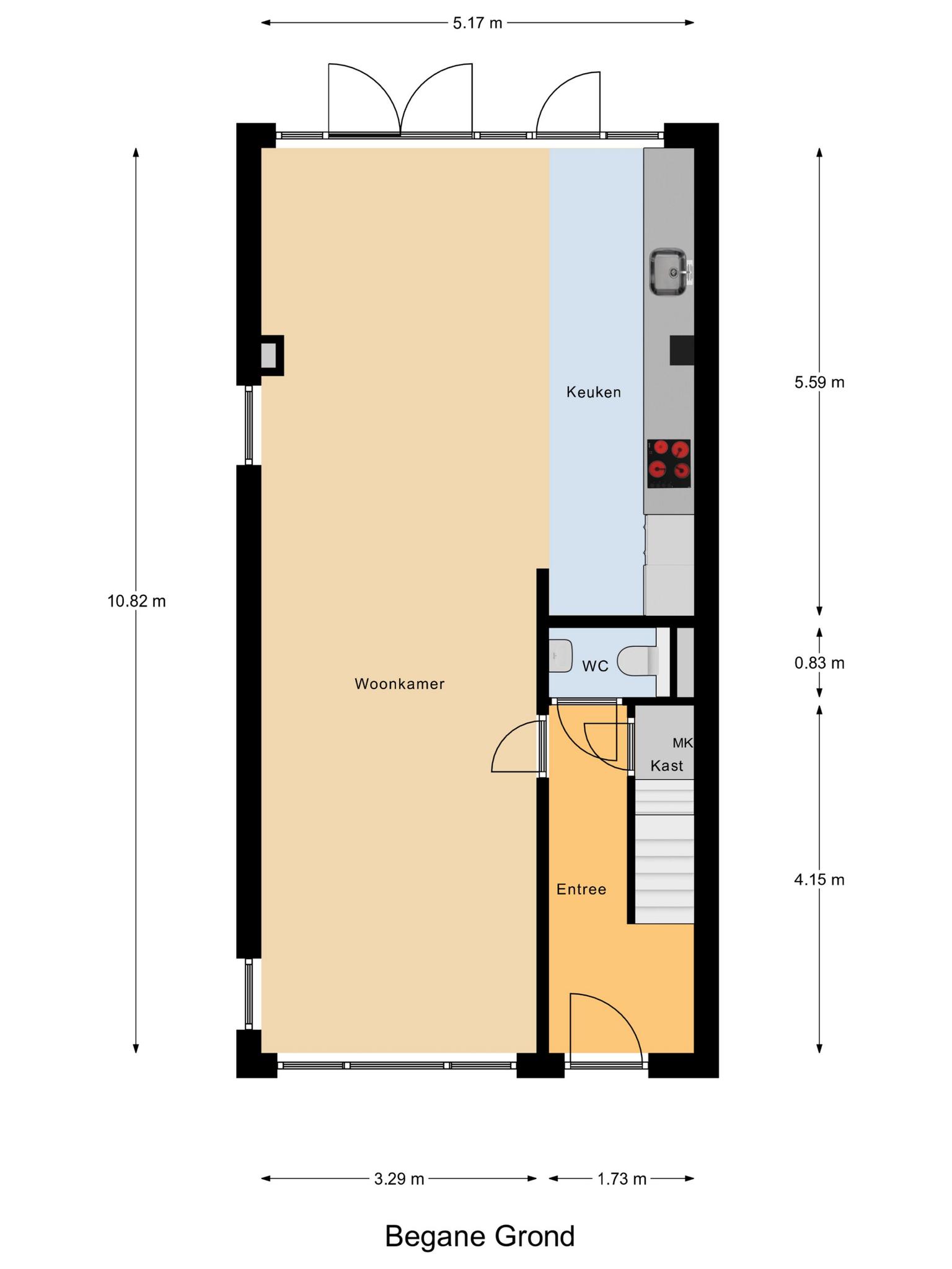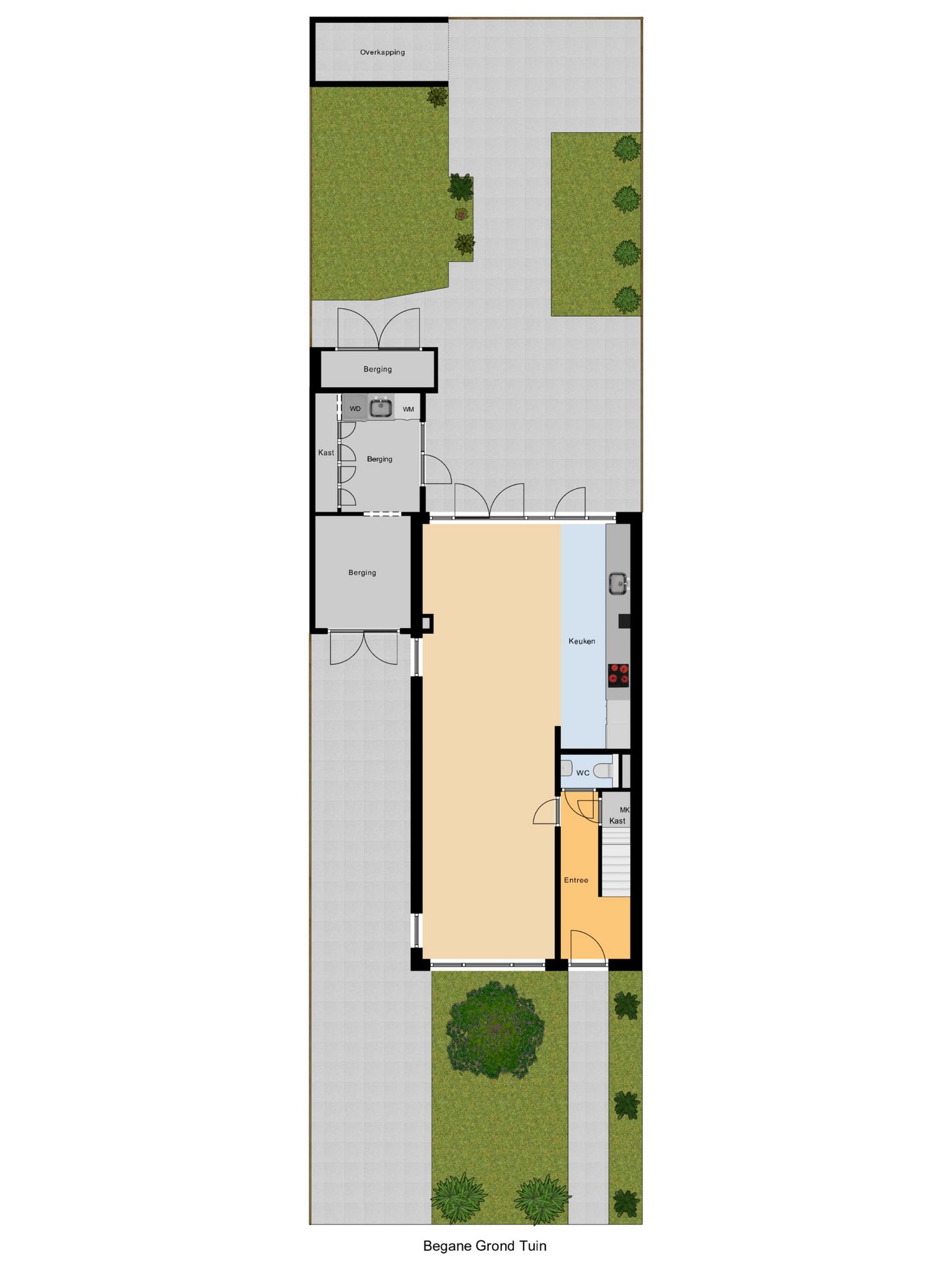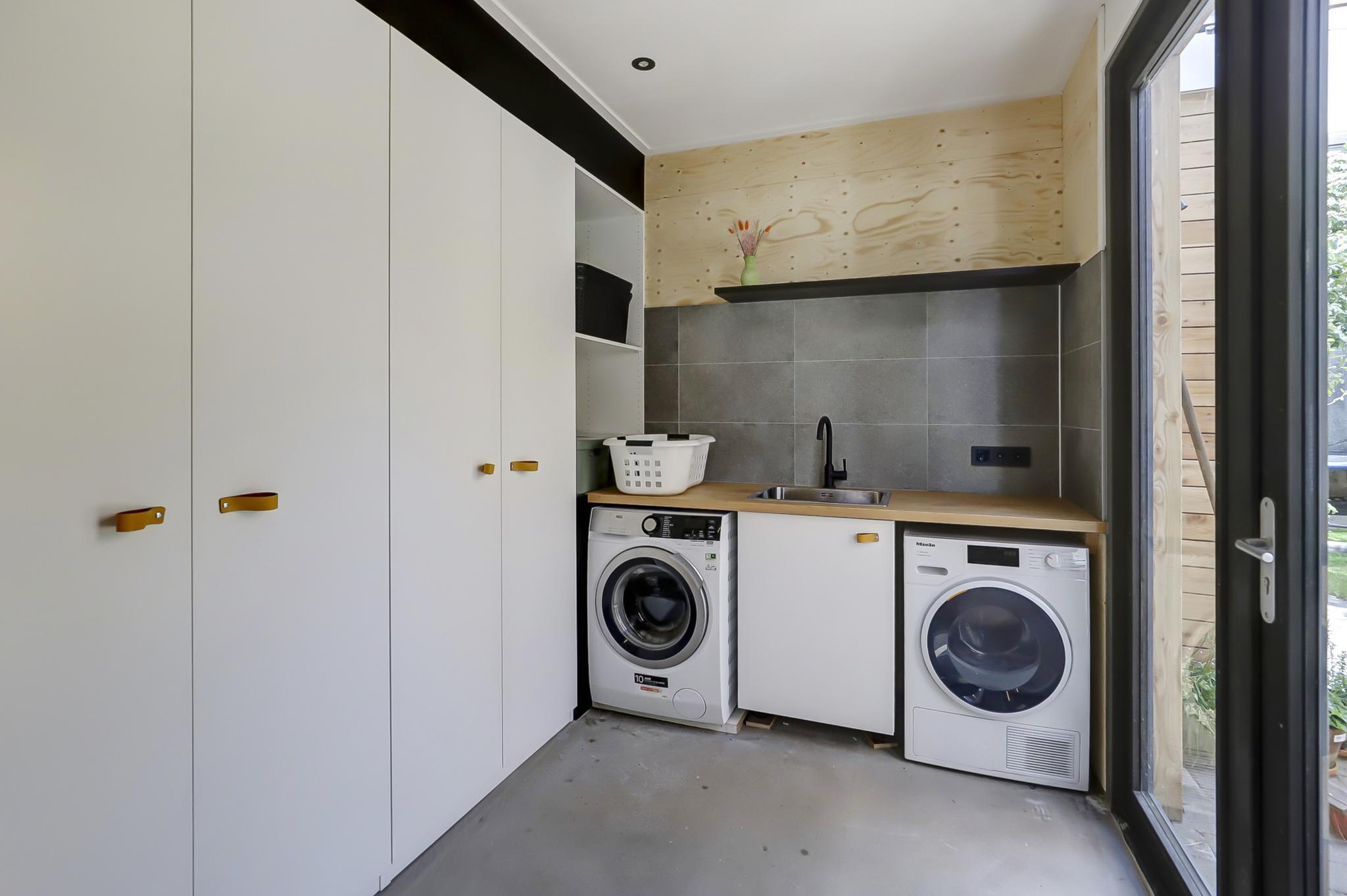 Begane grond: entree/gang, toegang tot provisiekelder en toilet. Mooie lichte woonkamer met gezellige houtkachel, uitgebouwde woonkeuken met moderne inrichting inclusief apparatuur en via de dubbele tuindeuren en een aparte loopdeur sta je direct in verbinding met de achtertuin. Aan de woning is een geïsoleerde bijkeuken/berging gebouwd (2024) en is de oude garage gesloopt. Daardoor is er een fraaie en logischere indeling in de tuin gecreëerd. De bijkeuken is voorzien van een wasmachine-aansluiting en de berging biedt voldoende ruimte voor fietsen. Naast de woning ligt een eigen oprit die goed is voor twee parkeerplaatsen.