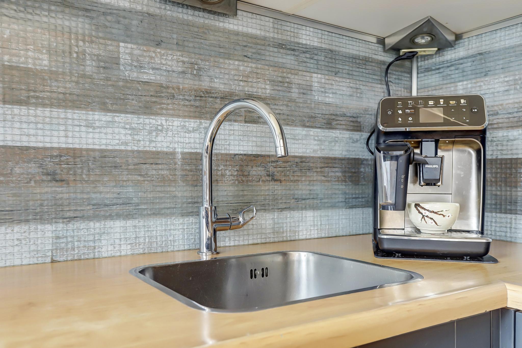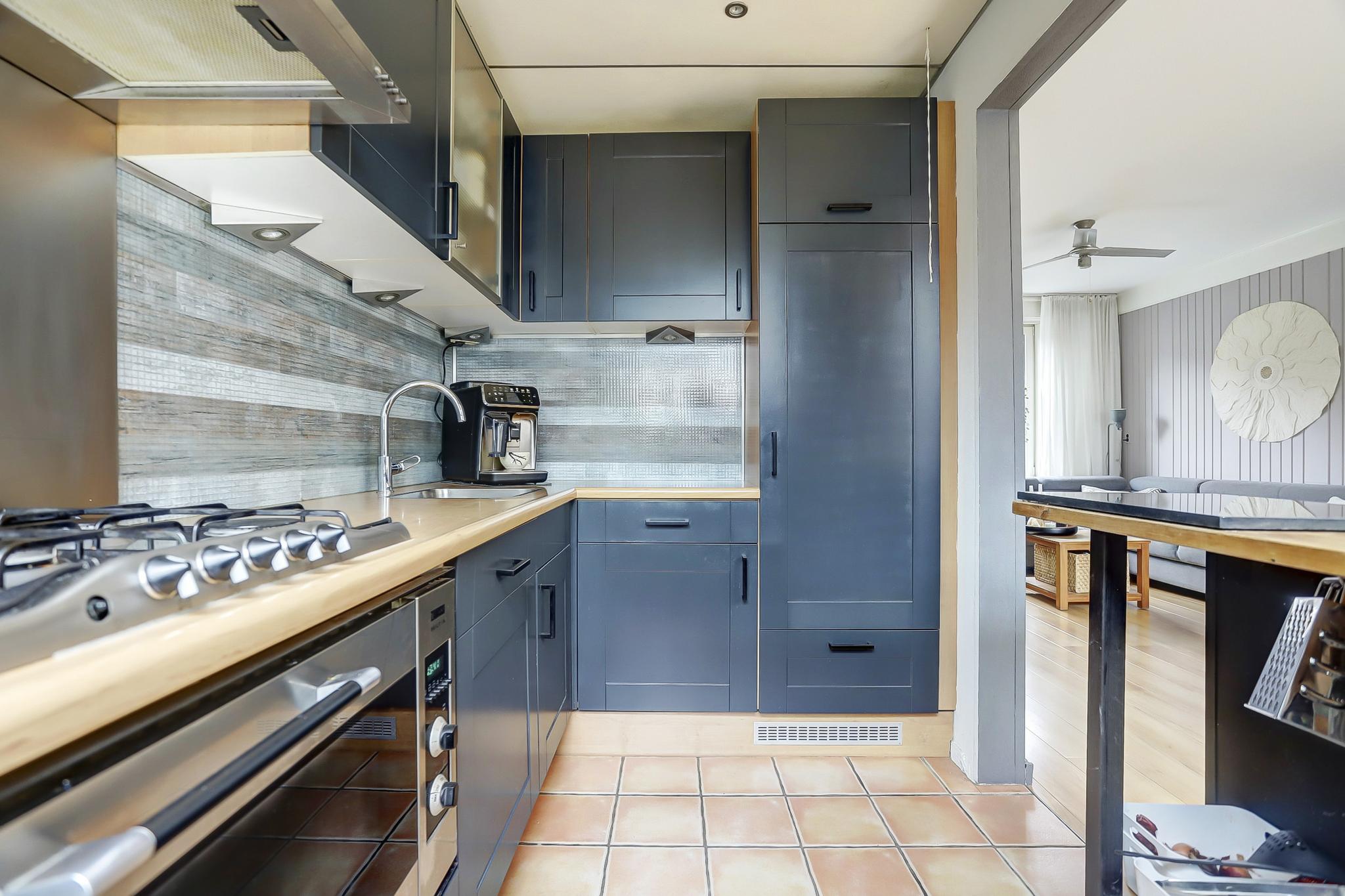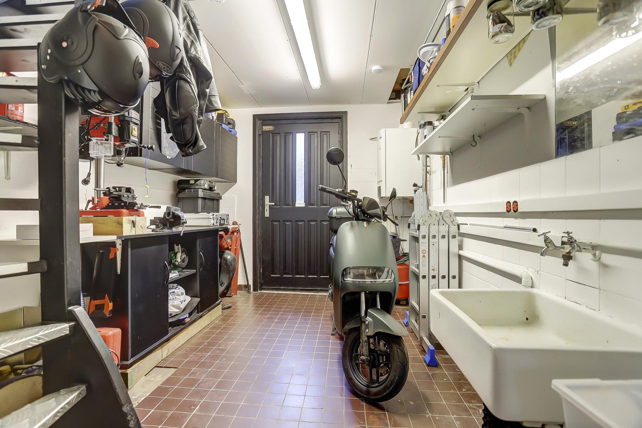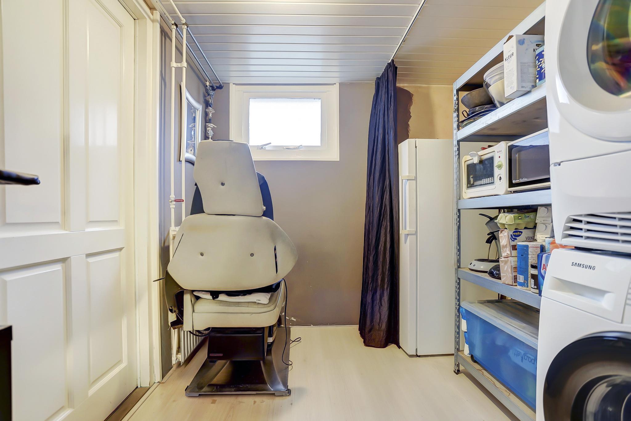 De keuken is keurig en is voorzien van diverse inbouwapparatuur, zoals een oven, vaatwasser, koelkast, 5 pits gasfornuis en een afzuigkap. De bijkeuken en aangrenzende berging bieden veel praktische opbergruimte, hier is ook een trap te vinden naar de sport-/hobbykamer die momenteel ook is voorzien van een sauna.