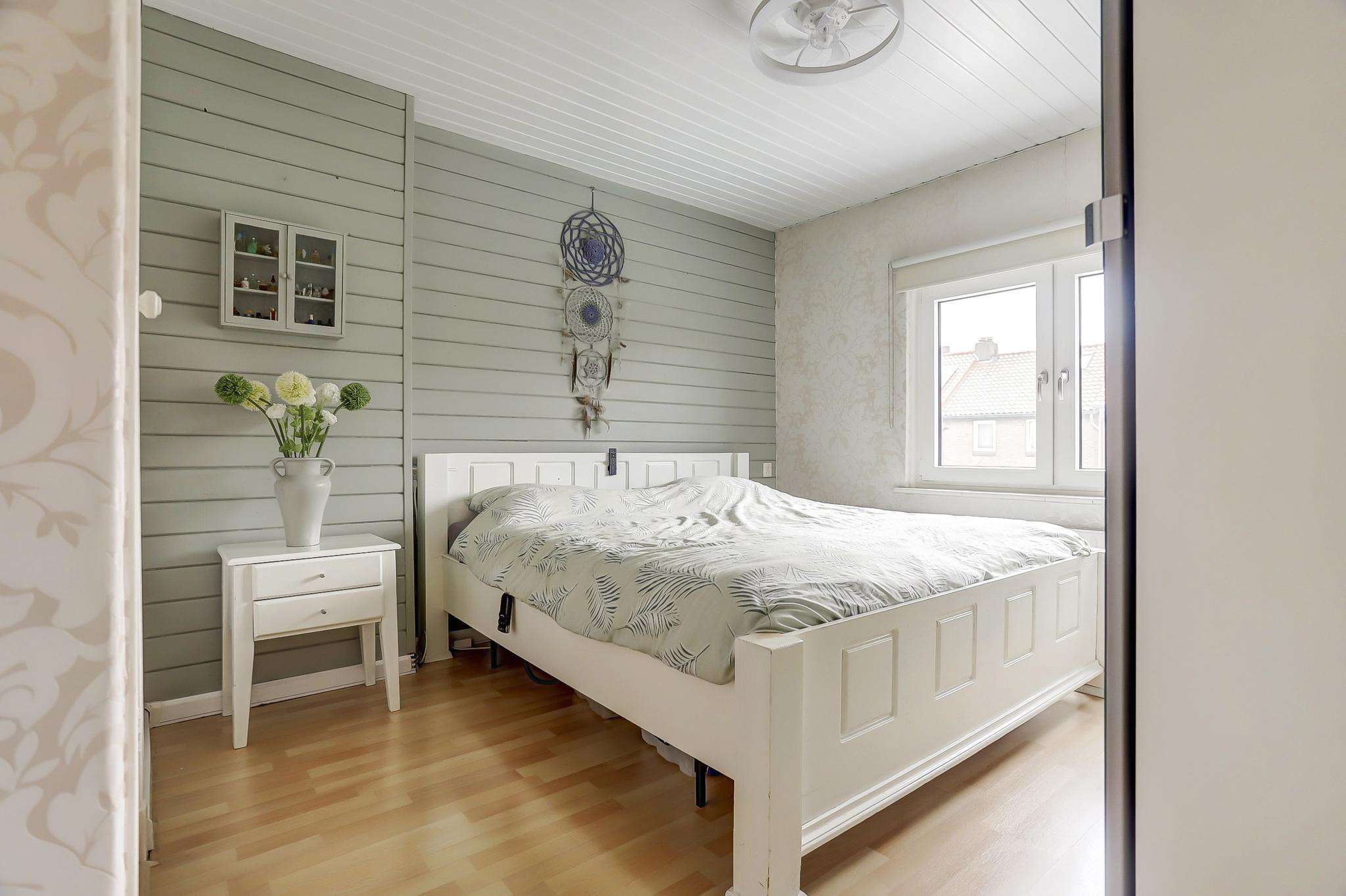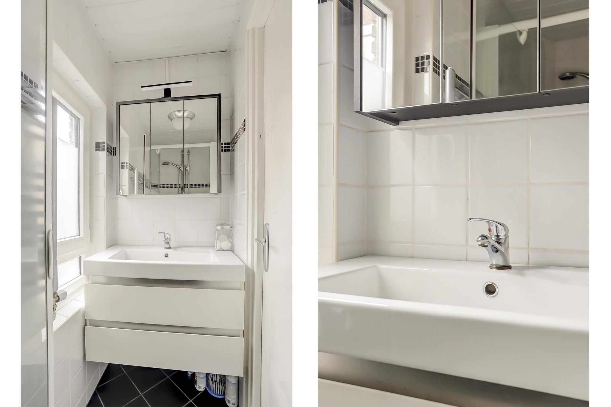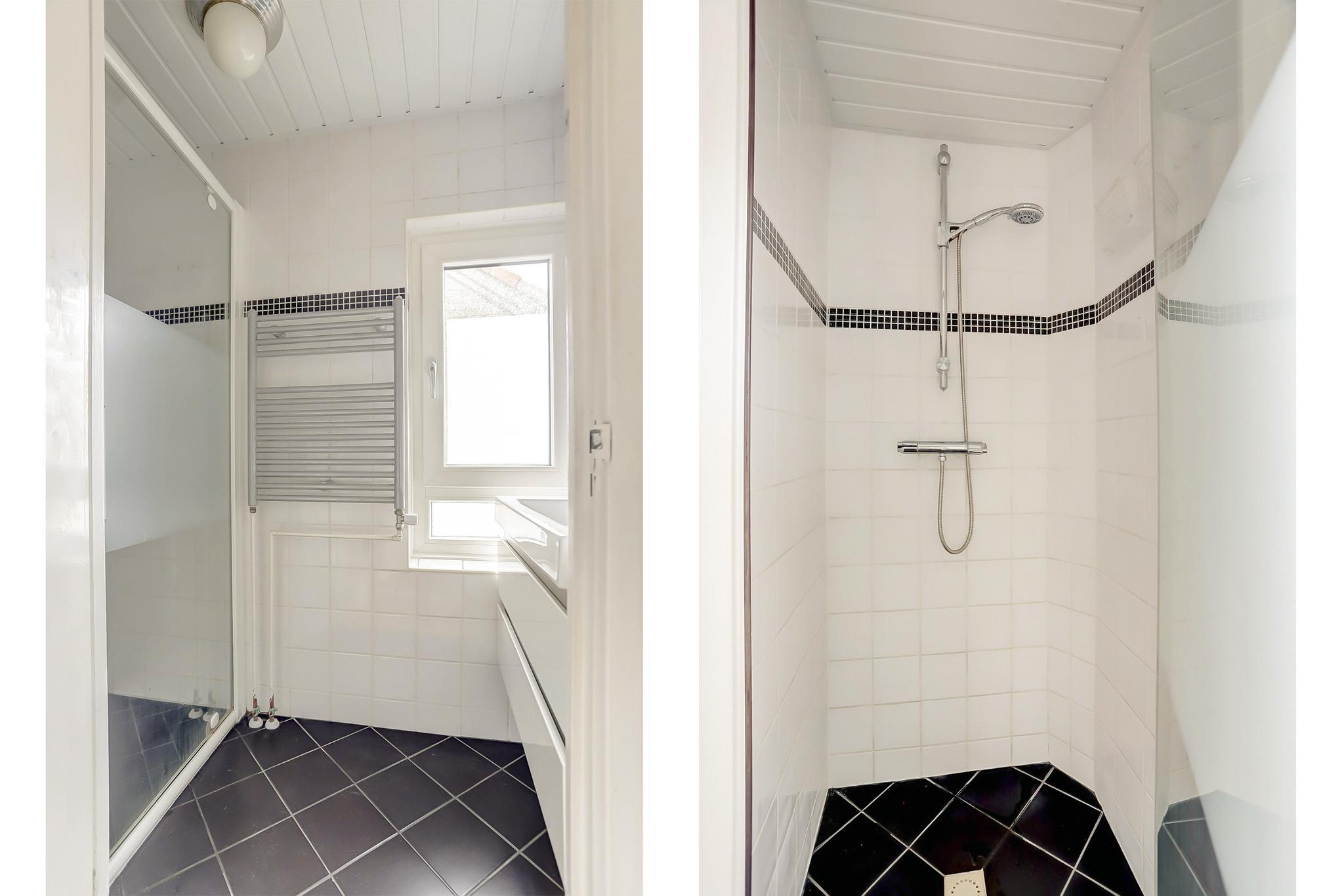 Eerste verdieping: overloop, in totaal zijn hier 3 slaapkamers die allemaal zijn voorzien van een muurkast. De compacte badkamer heeft een douche en een wastafelmeubel.