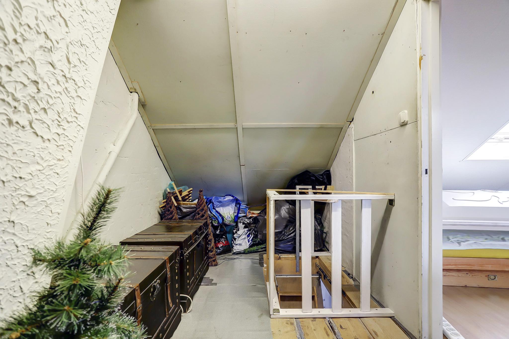 Tweede verdieping: via een vlizotrap is de zolder te bereiken; deze heeft al een ruime dakkapel zodat je, na het maken van een vaste trap, hier prima een extra slaapkamer hebt.