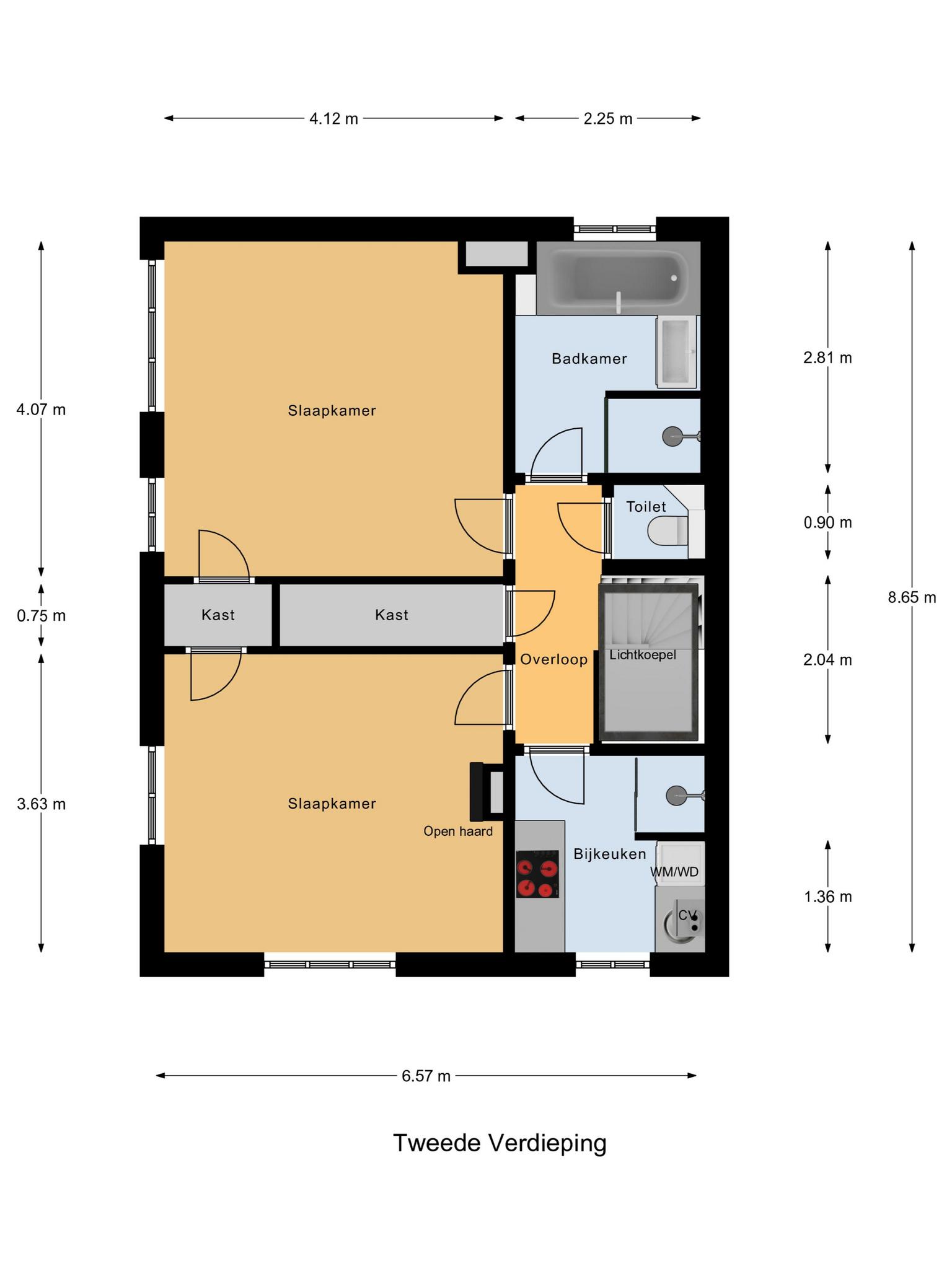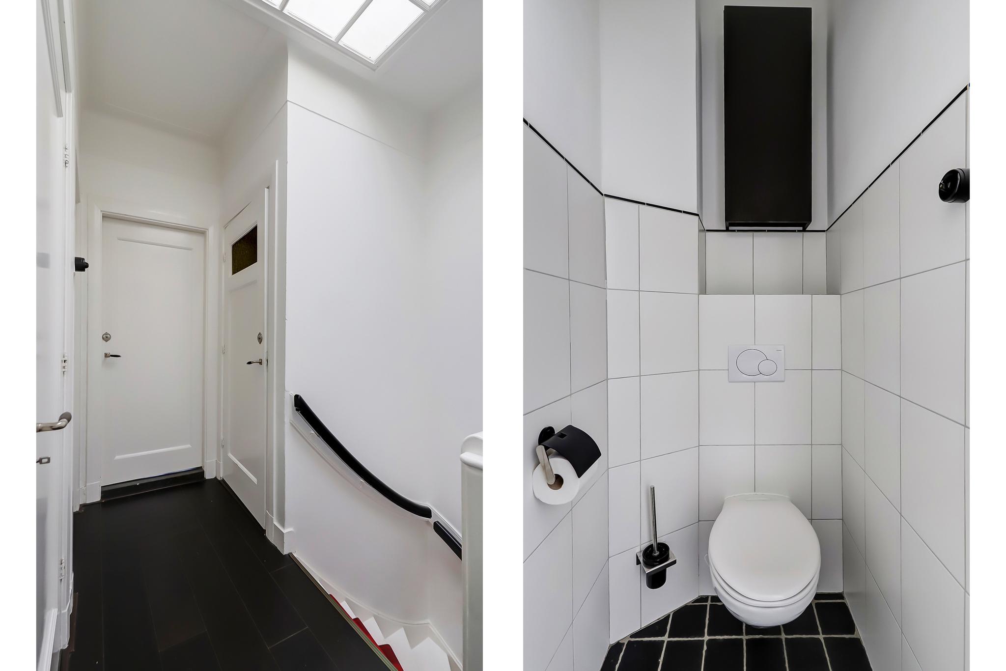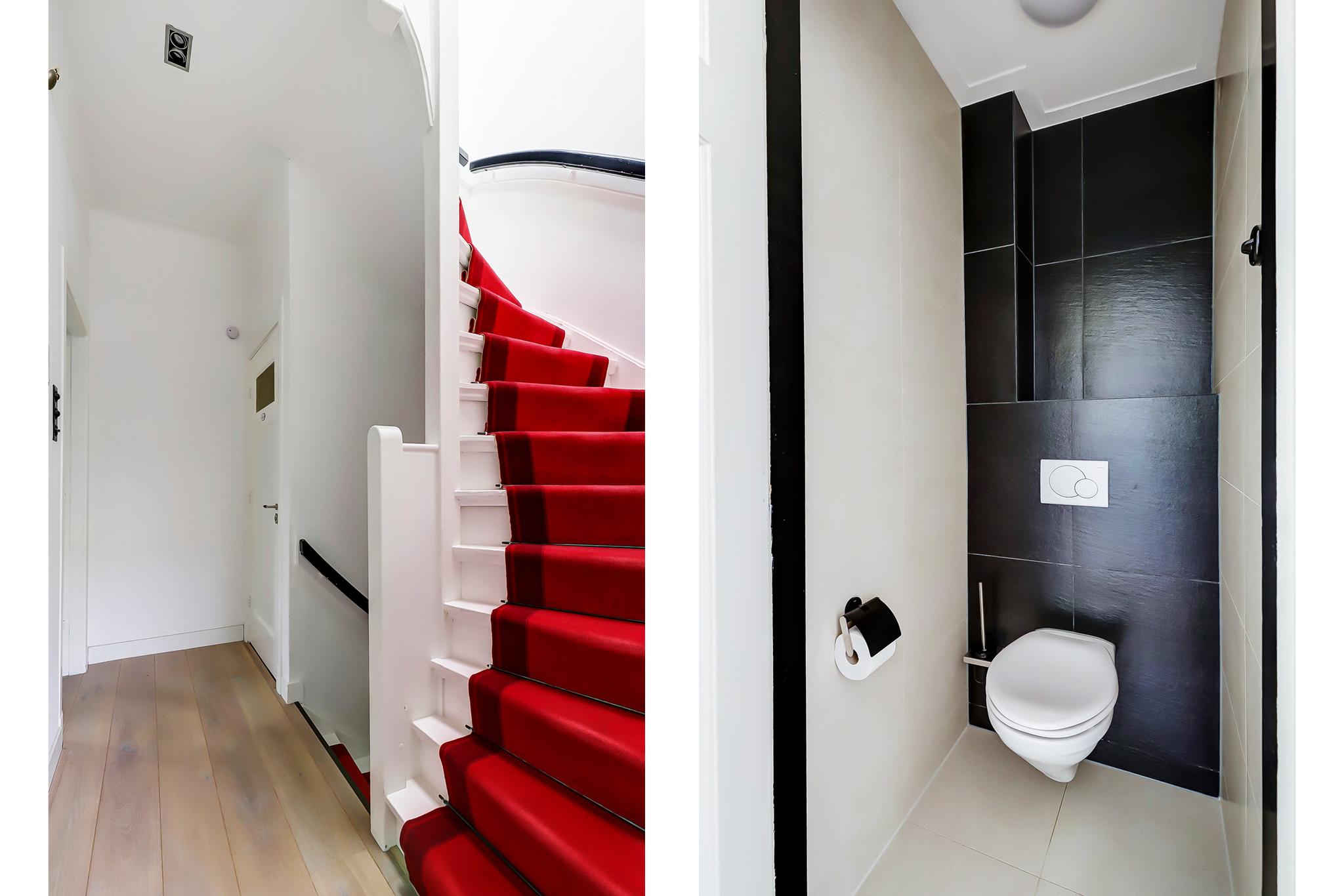2e woonlaag, overloop met muurkast en lichtkoepel, 2 slaapkamers voorzien van mooi weggewerkte airco-units, waskamer met cv-ketel, douche en pantry, separaat toilet, strakke badkamer met vloerverwarming, ligbad, wastafel en douche.