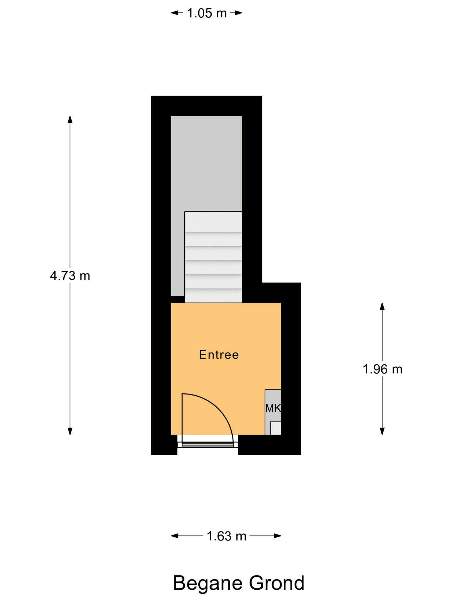Begane grond: entree, trapopgang, toegang tot kelderberging.