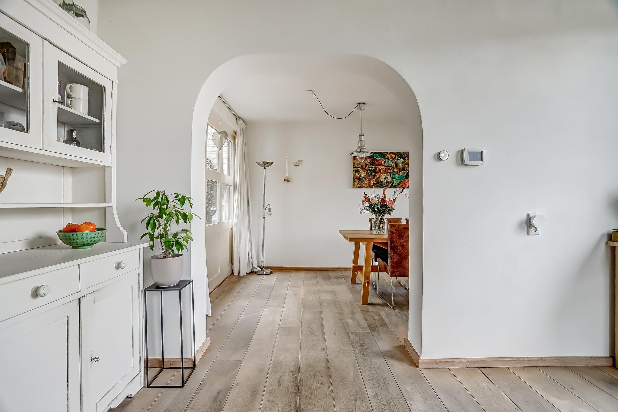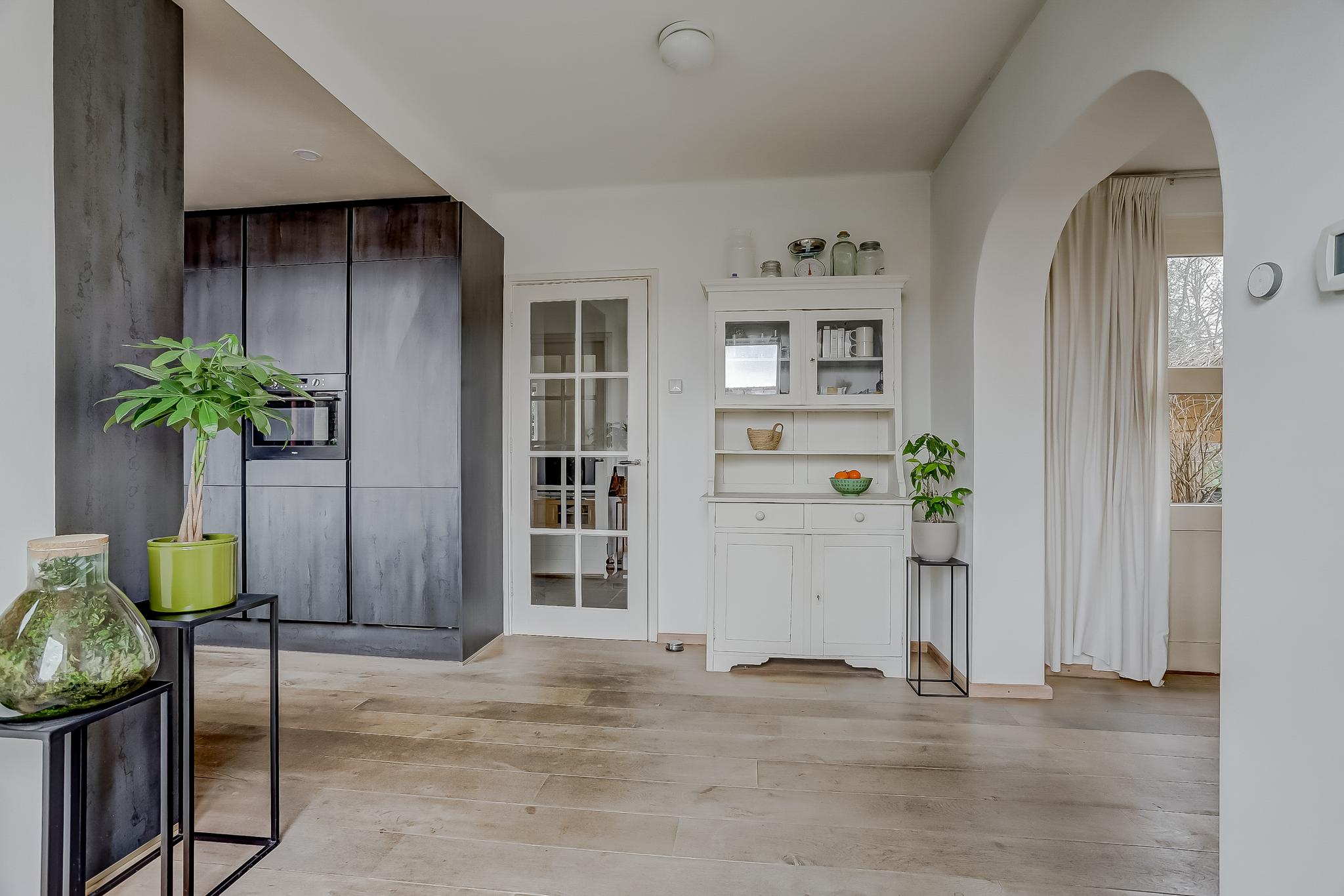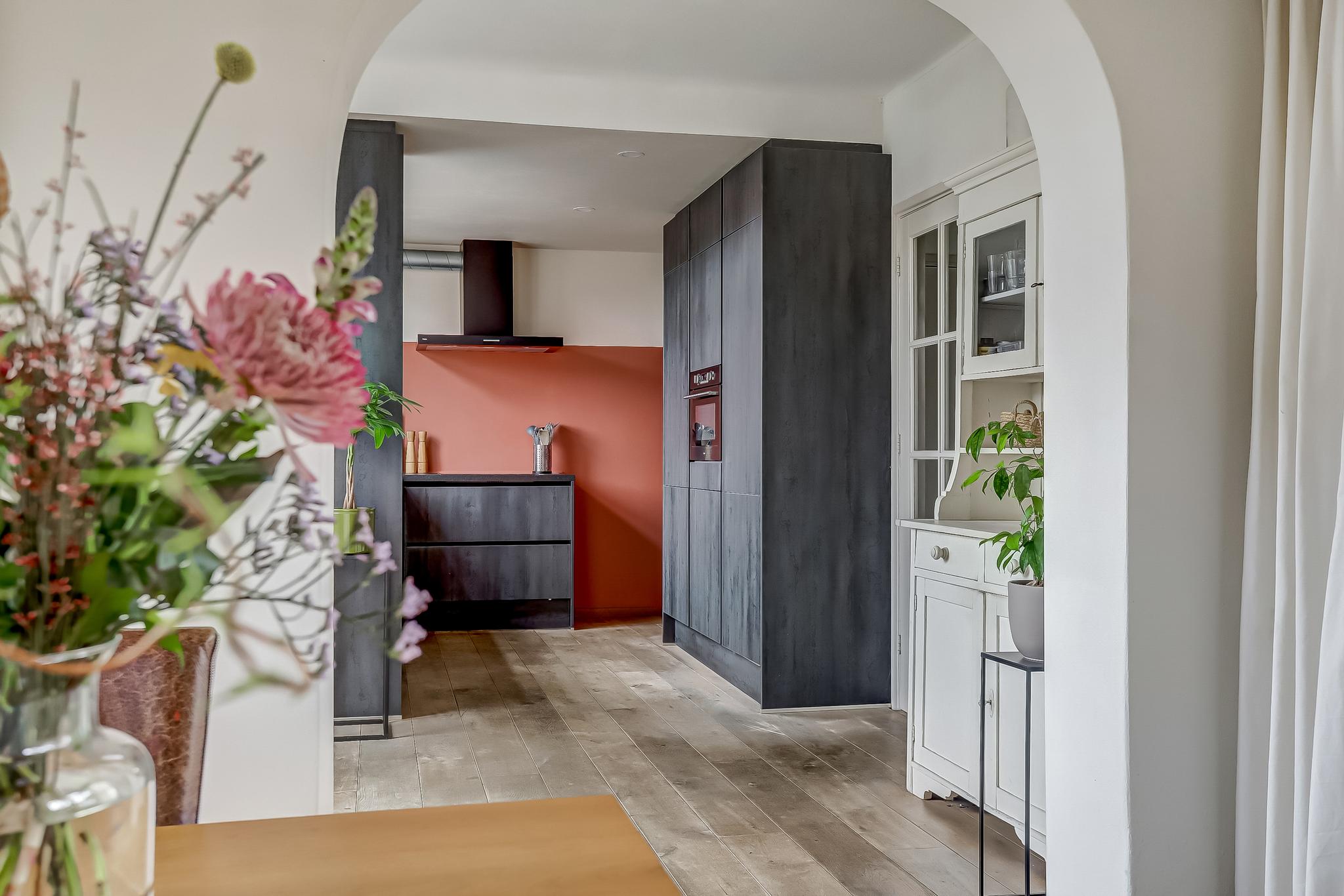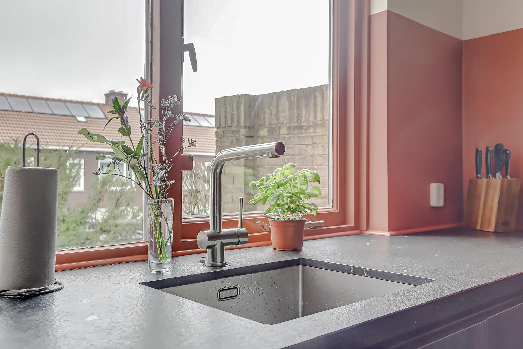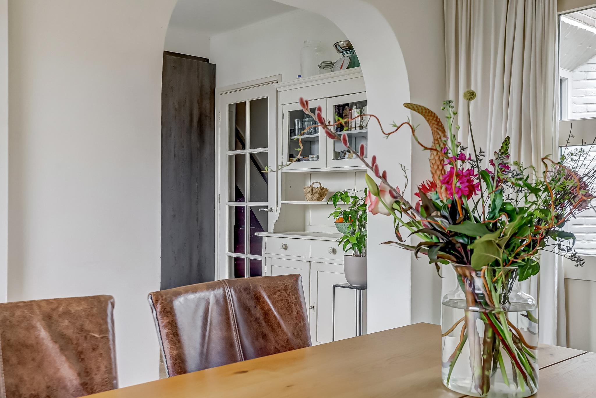Begane grond: entree/hal met toegang tot het souterrain, toilet (wandcloset met fonteintje), woonkamer aan de voorzijde met erker en gezellige gashaard, mooie ruime woonkeuken met een in 2020 vernieuwde keuken en een heerlijke ruimte om de eettafel te plaatsen. Vanuit hier heb je zowel zicht op de voor- als achterzijde van het huis. Via een deur en een klein balkon kom je in de omsloten en beschutte achtertuin uit. Deze ligt op het noorden en biedt toch nog zonnige momenten.