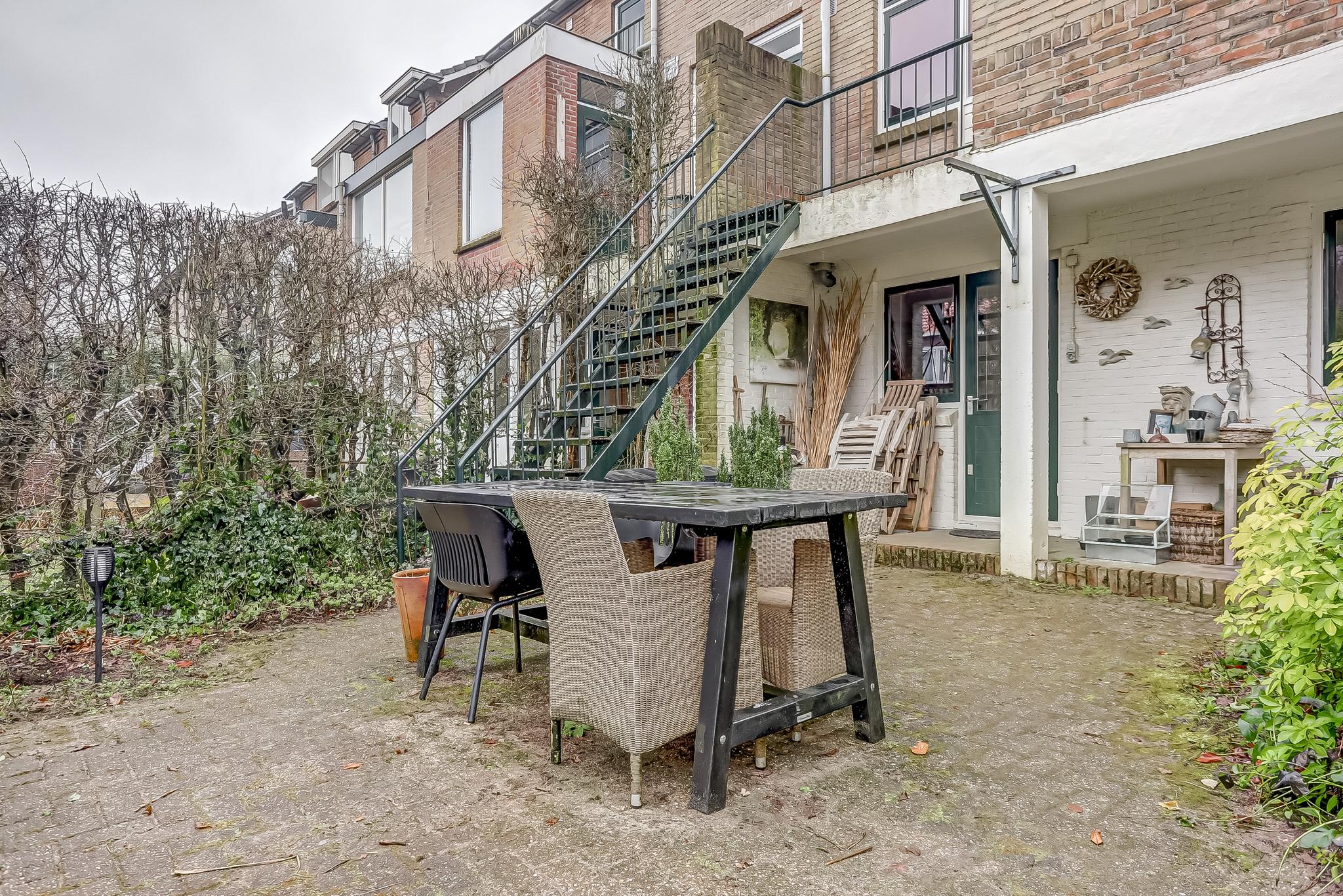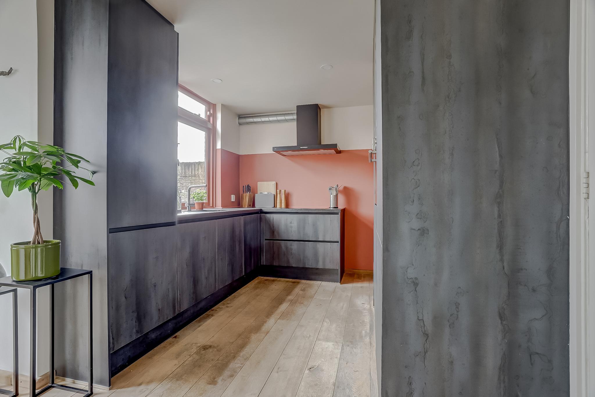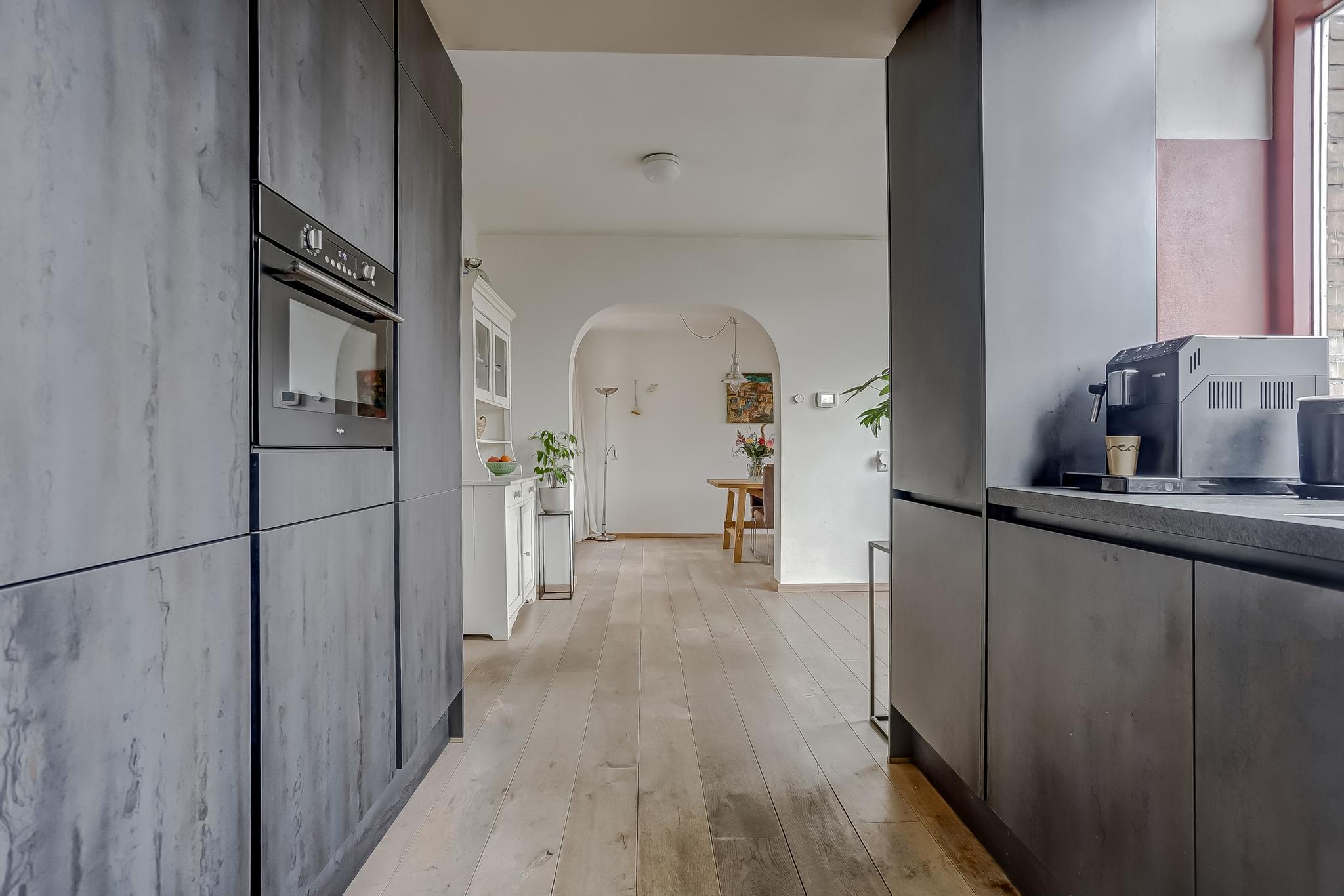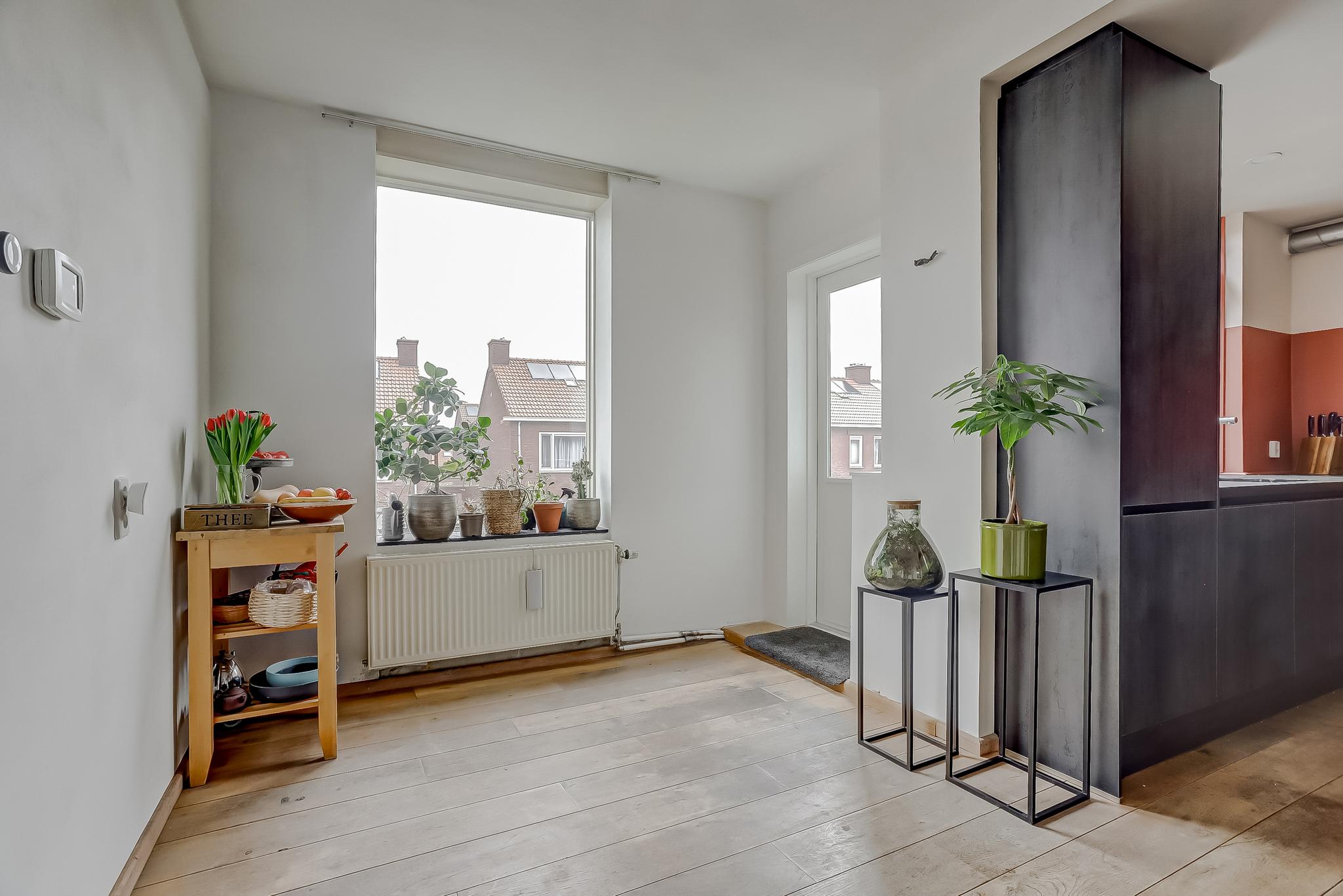 Begane grond: entree/hal met toegang tot het souterrain, toilet (wandcloset met fonteintje), woonkamer aan de voorzijde met erker en gezellige gashaard, mooie ruime woonkeuken met een in 2020 vernieuwde keuken en een heerlijke ruimte om de eettafel te plaatsen. Vanuit hier heb je zowel zicht op de voor- als achterzijde van het huis. Via een deur en een klein balkon kom je in de omsloten en beschutte achtertuin uit. Deze ligt op het noorden en biedt toch nog zonnige momenten.