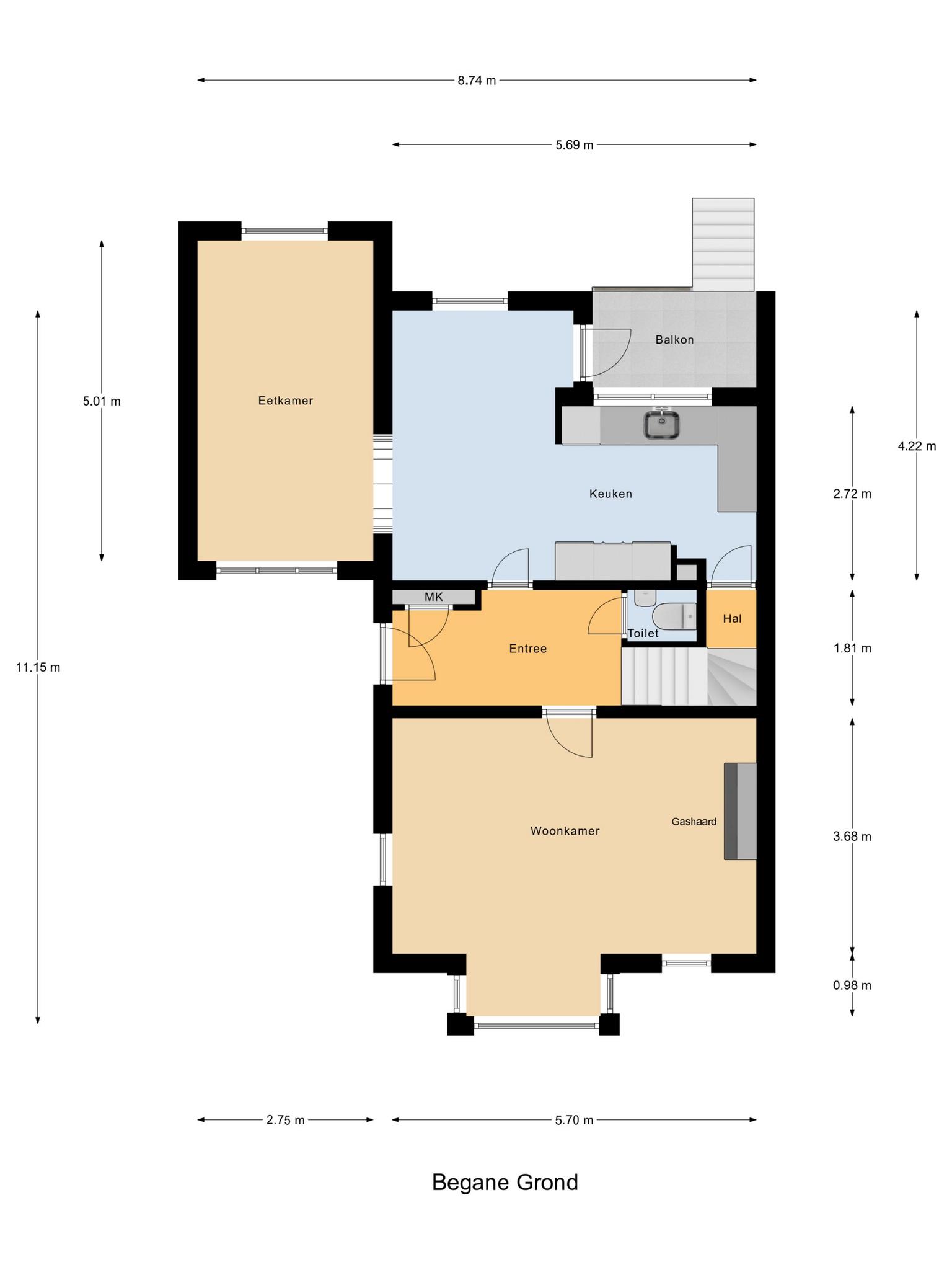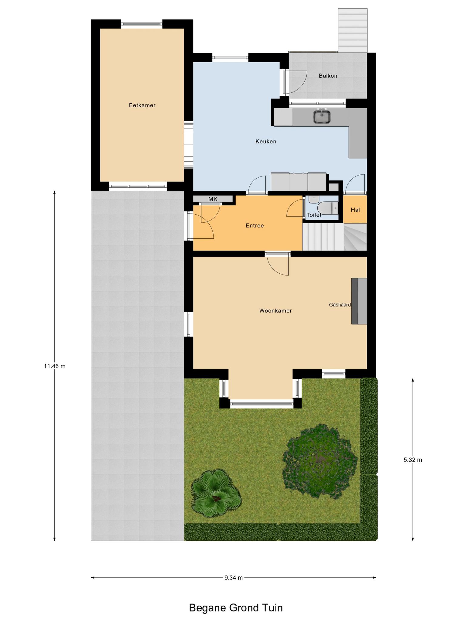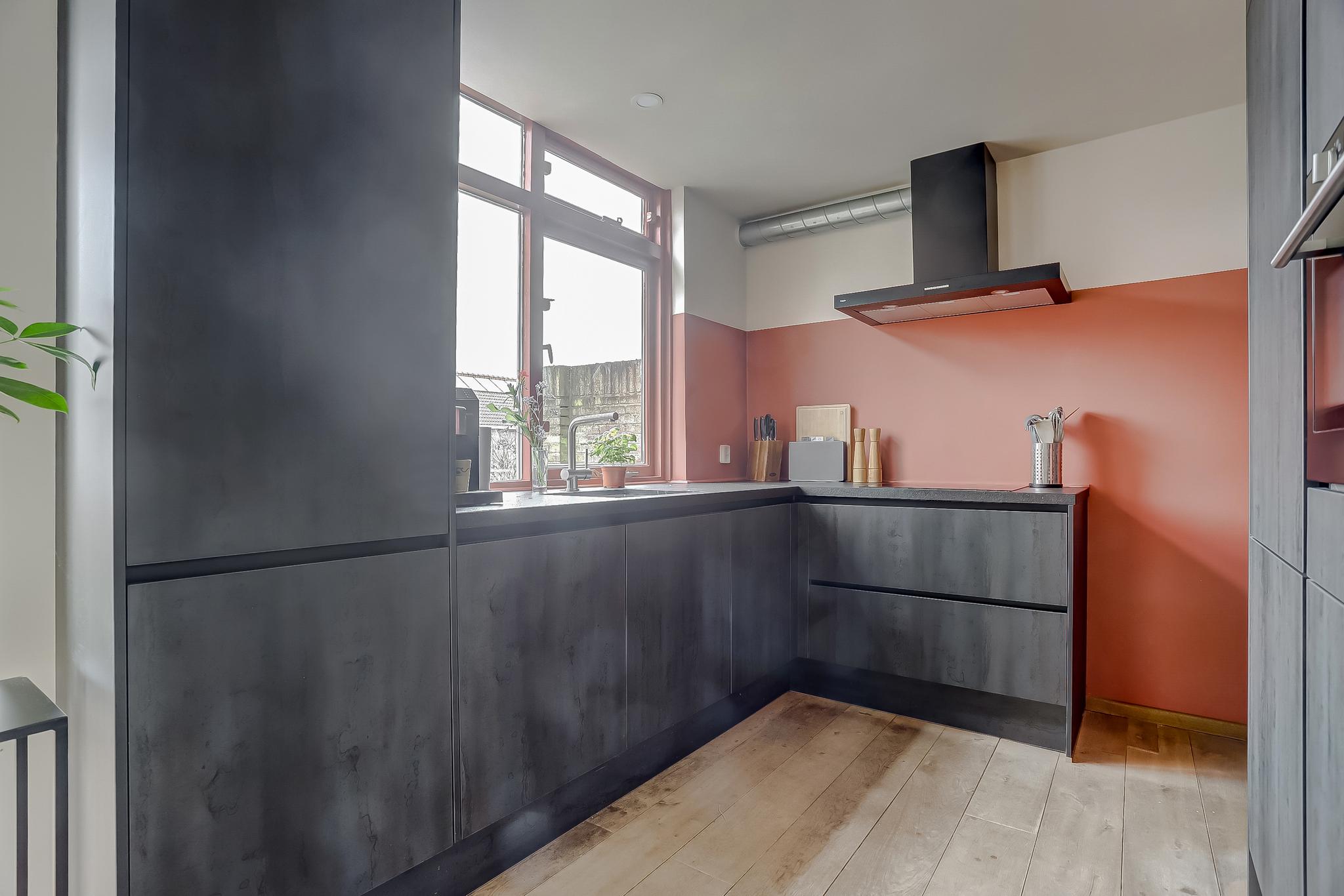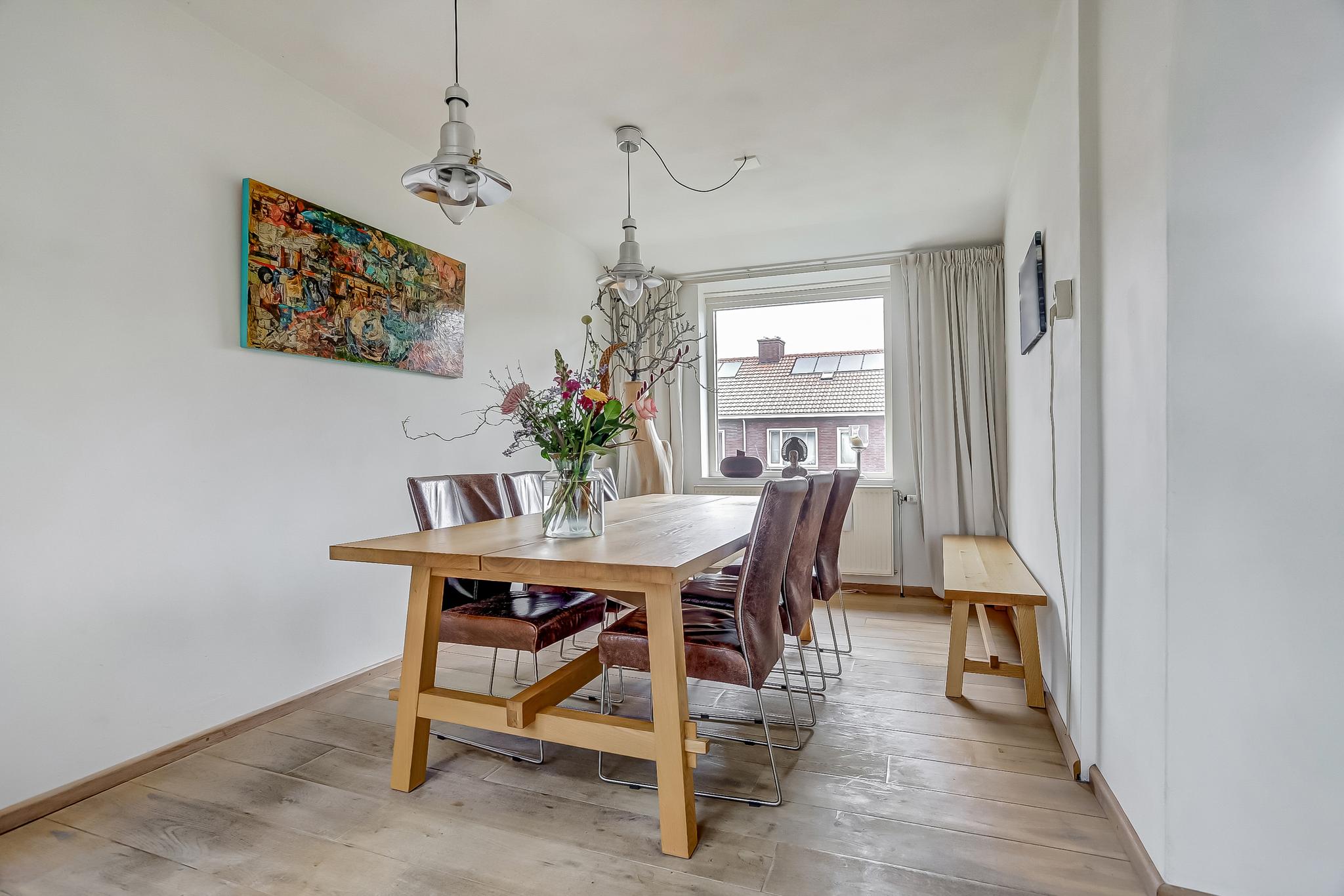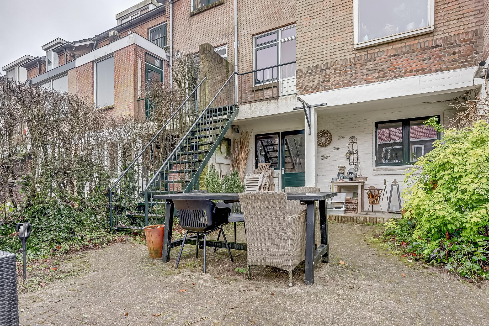 Begane grond: entree/hal met toegang tot het souterrain, toilet (wandcloset met fonteintje), woonkamer aan de voorzijde met erker en gezellige gashaard, mooie ruime woonkeuken met een in 2020 vernieuwde keuken en een heerlijke ruimte om de eettafel te plaatsen. Vanuit hier heb je zowel zicht op de voor- als achterzijde van het huis. Via een deur en een klein balkon kom je in de omsloten en beschutte achtertuin uit. Deze ligt op het noorden en biedt toch nog zonnige momenten.