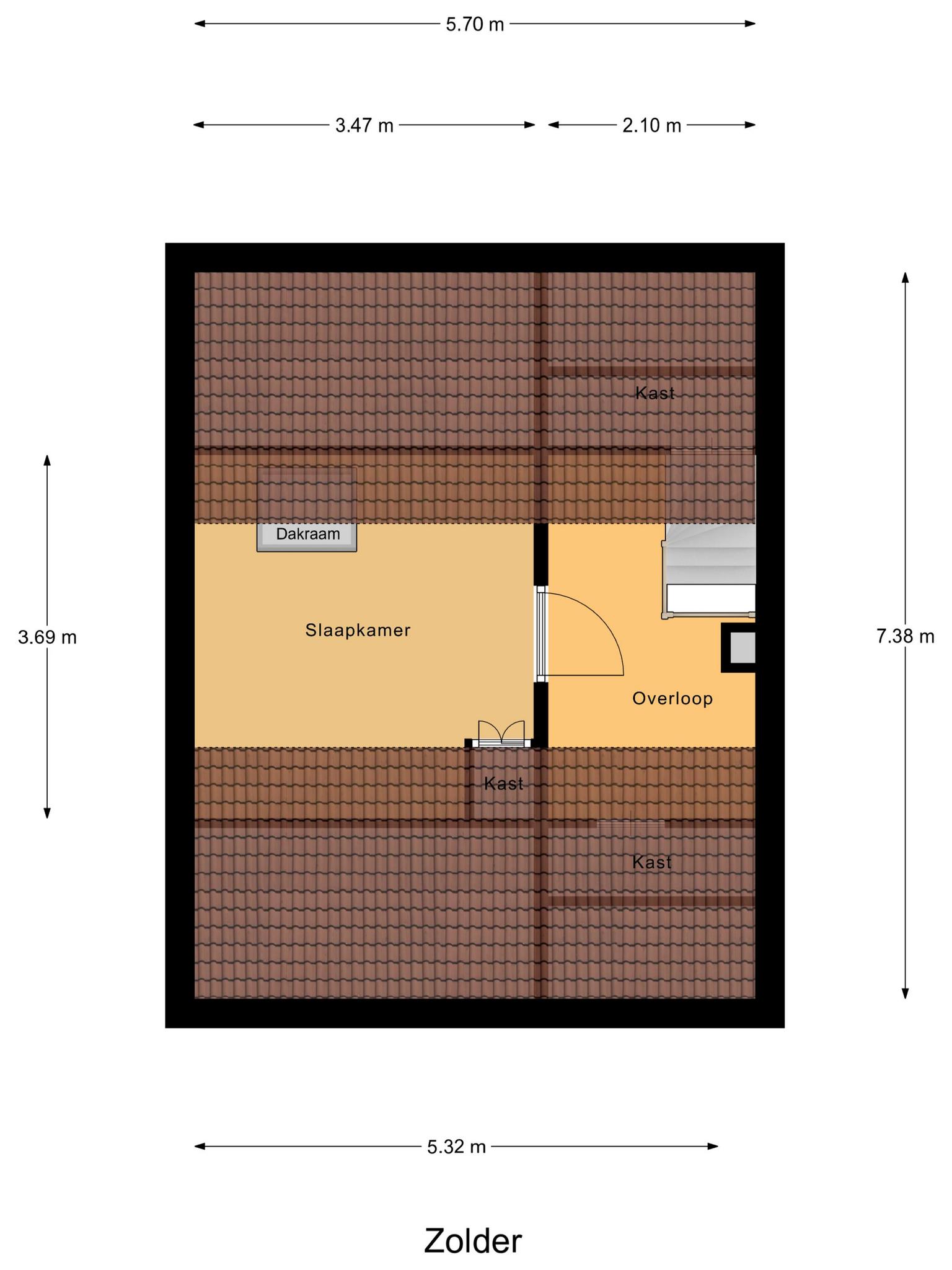 Tweede verdieping: voorzolder, zolderkamer met dakraam.