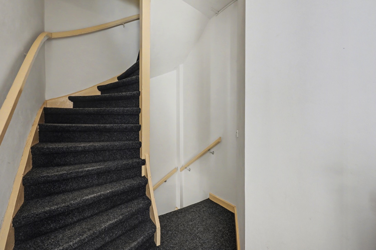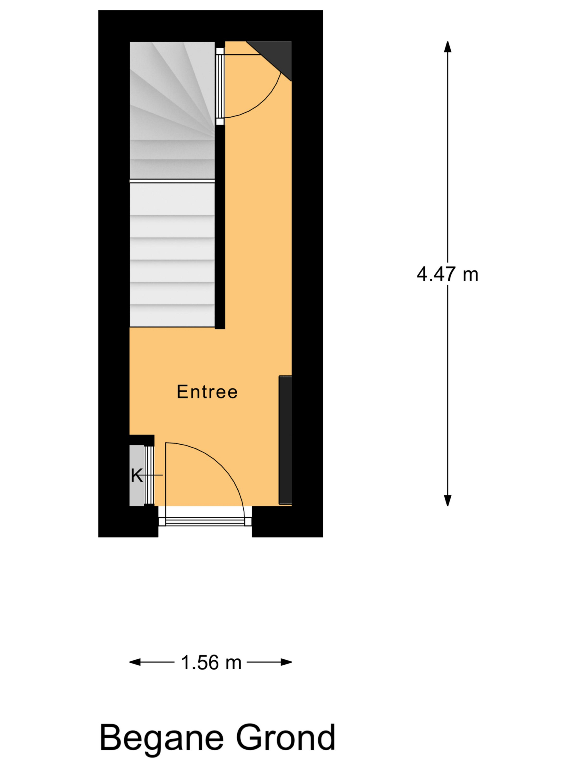 Begane grond: entree, toegang naar de kelder, trapopgang.