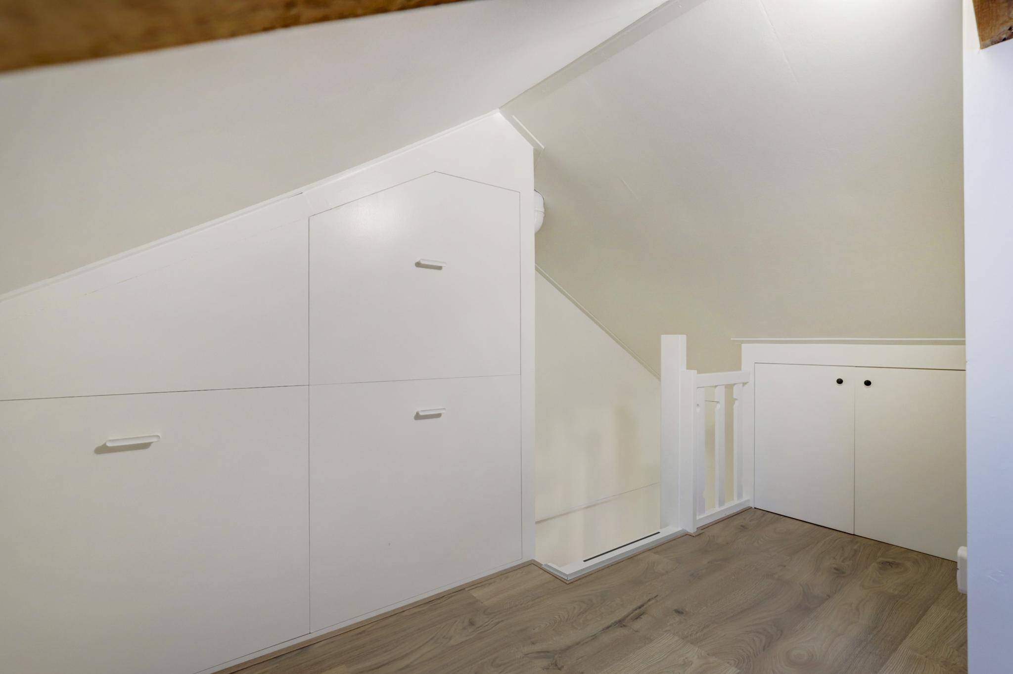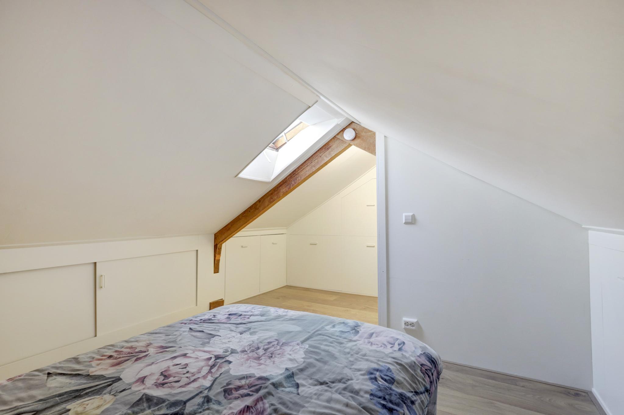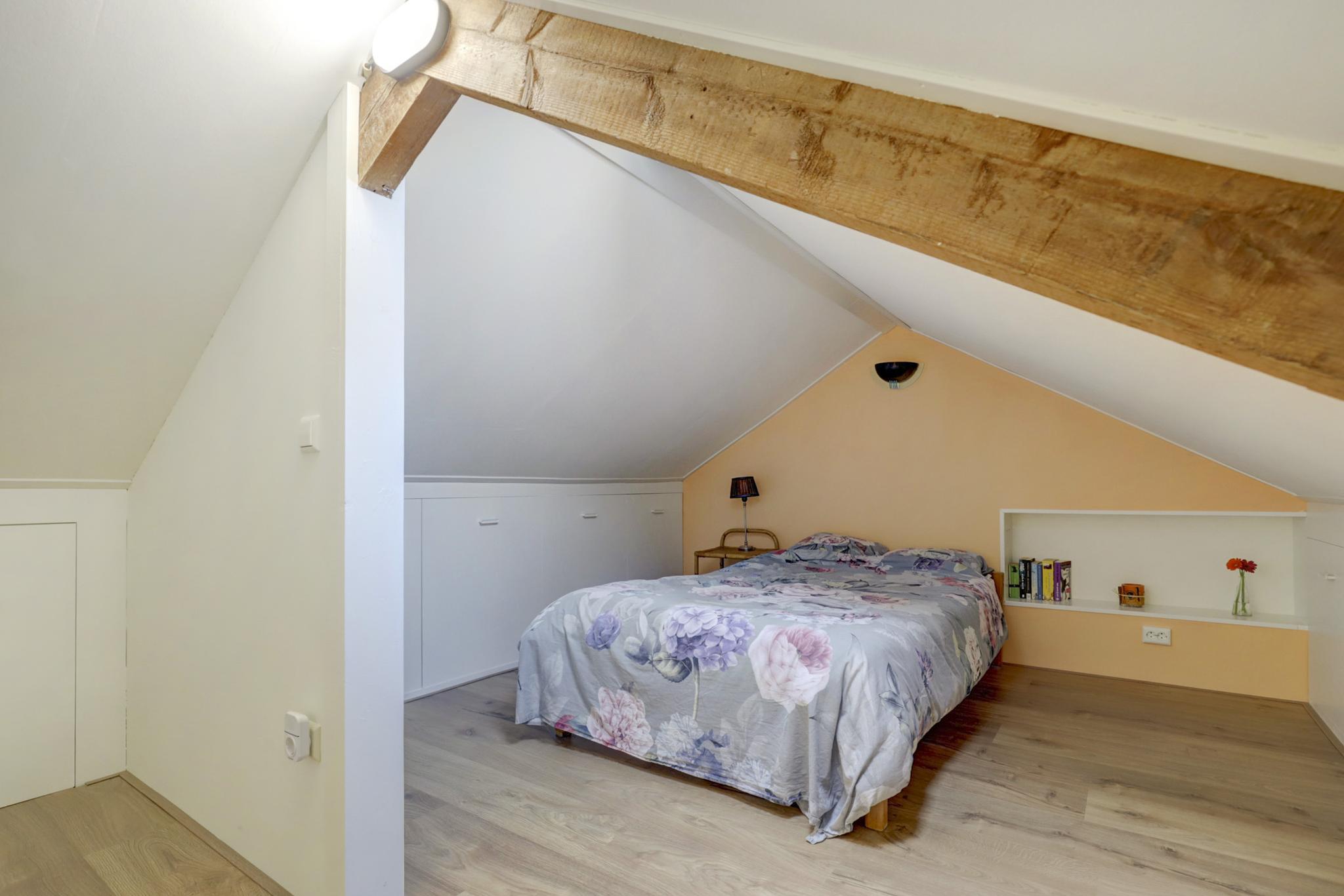 Tweede verdieping: via vaste trap bereikbare zolderetage, momenteel in gebruik als slaapkamer, met veel opbergruimte en cv-ketel (HR Intergas 2022).