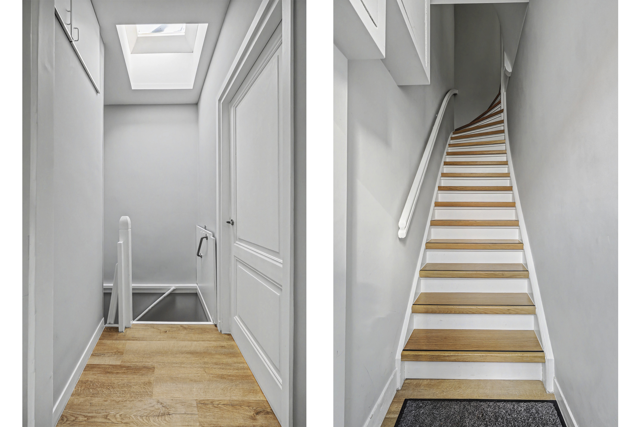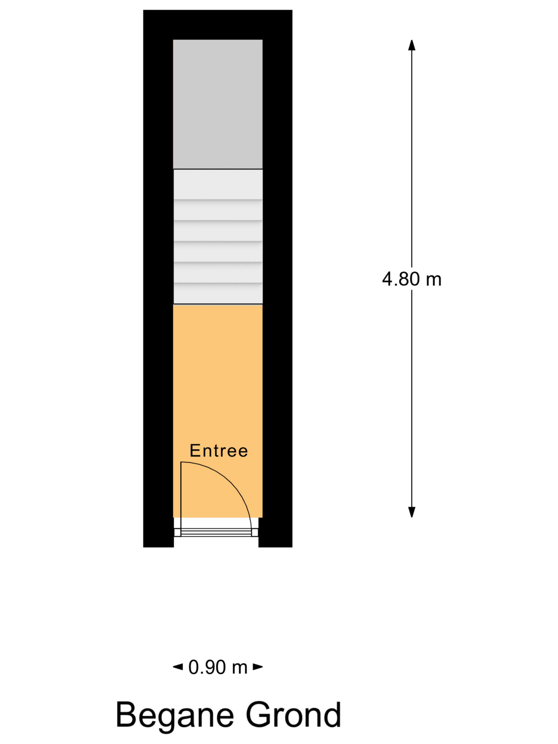 Begane grond: entree, luik naar de kelder, trapopgang naar de eerste verdieping.