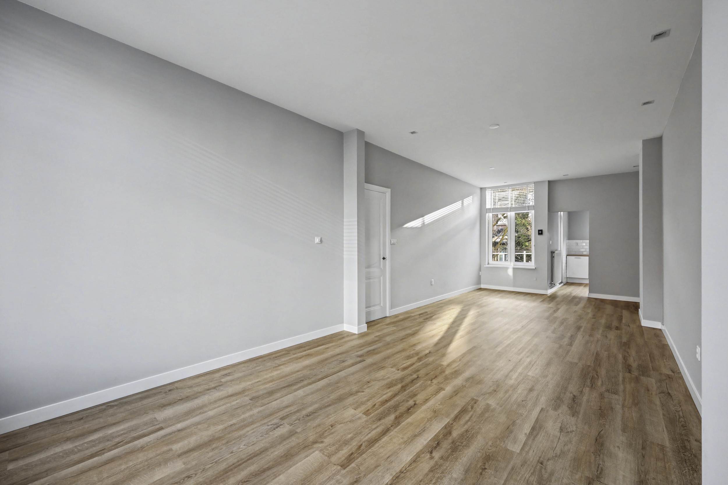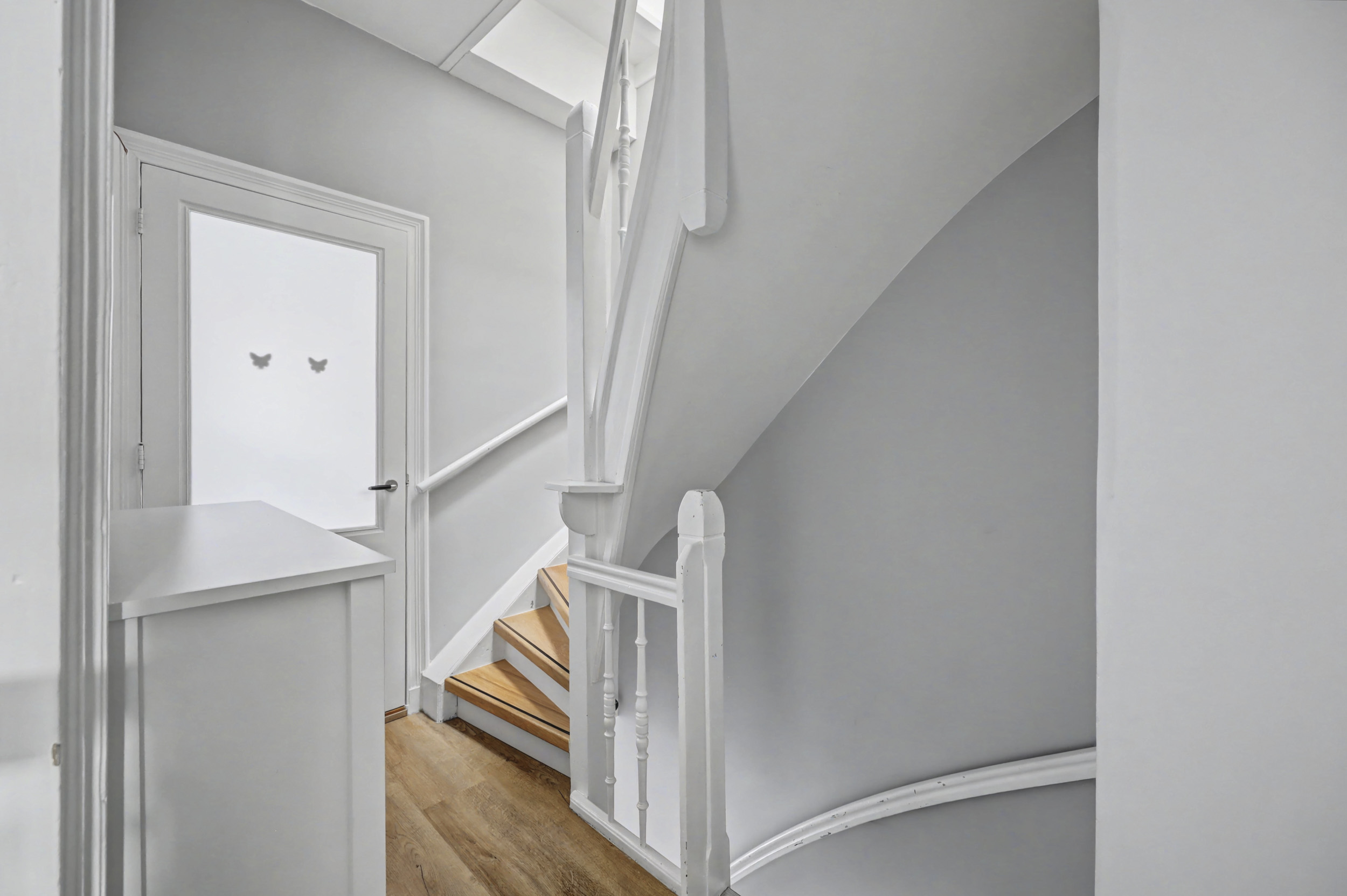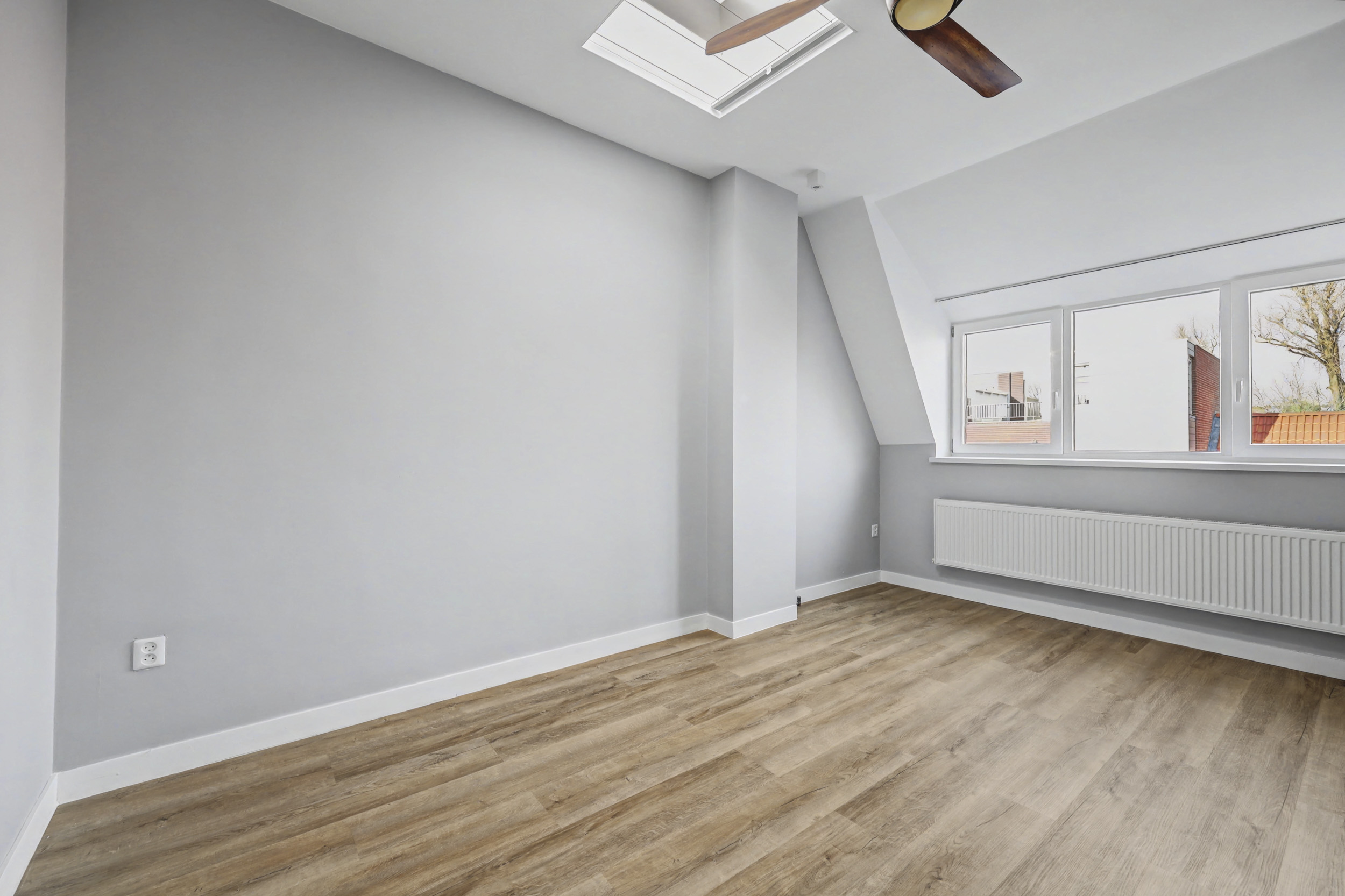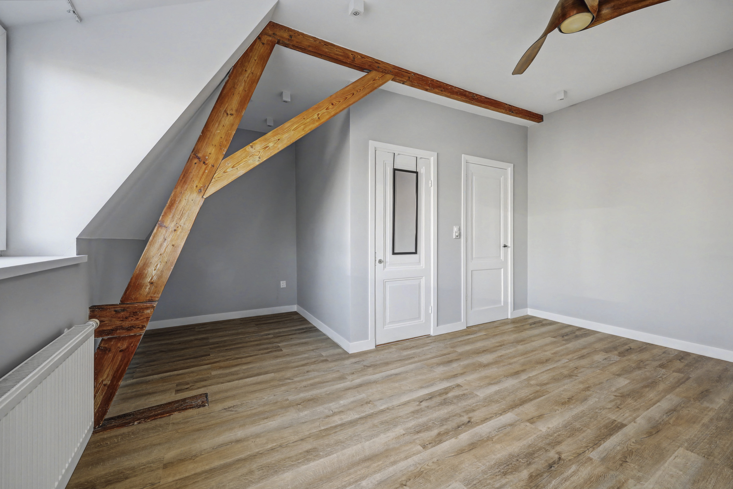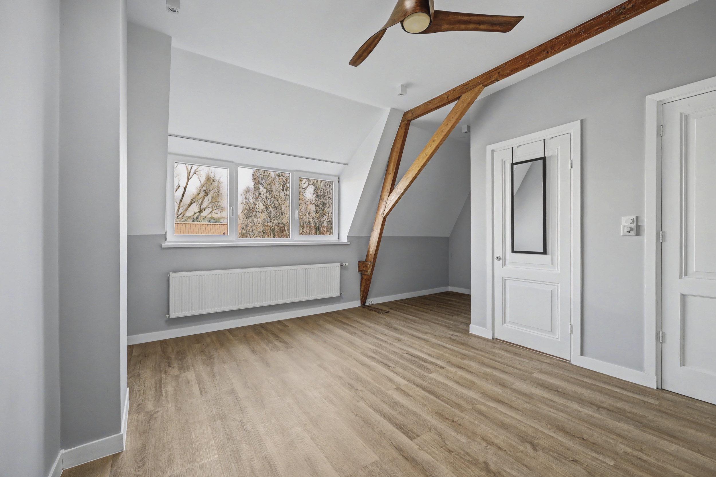 Ook deze verdieping heeft een laminaatvloer met mooie hoge muurplinten.