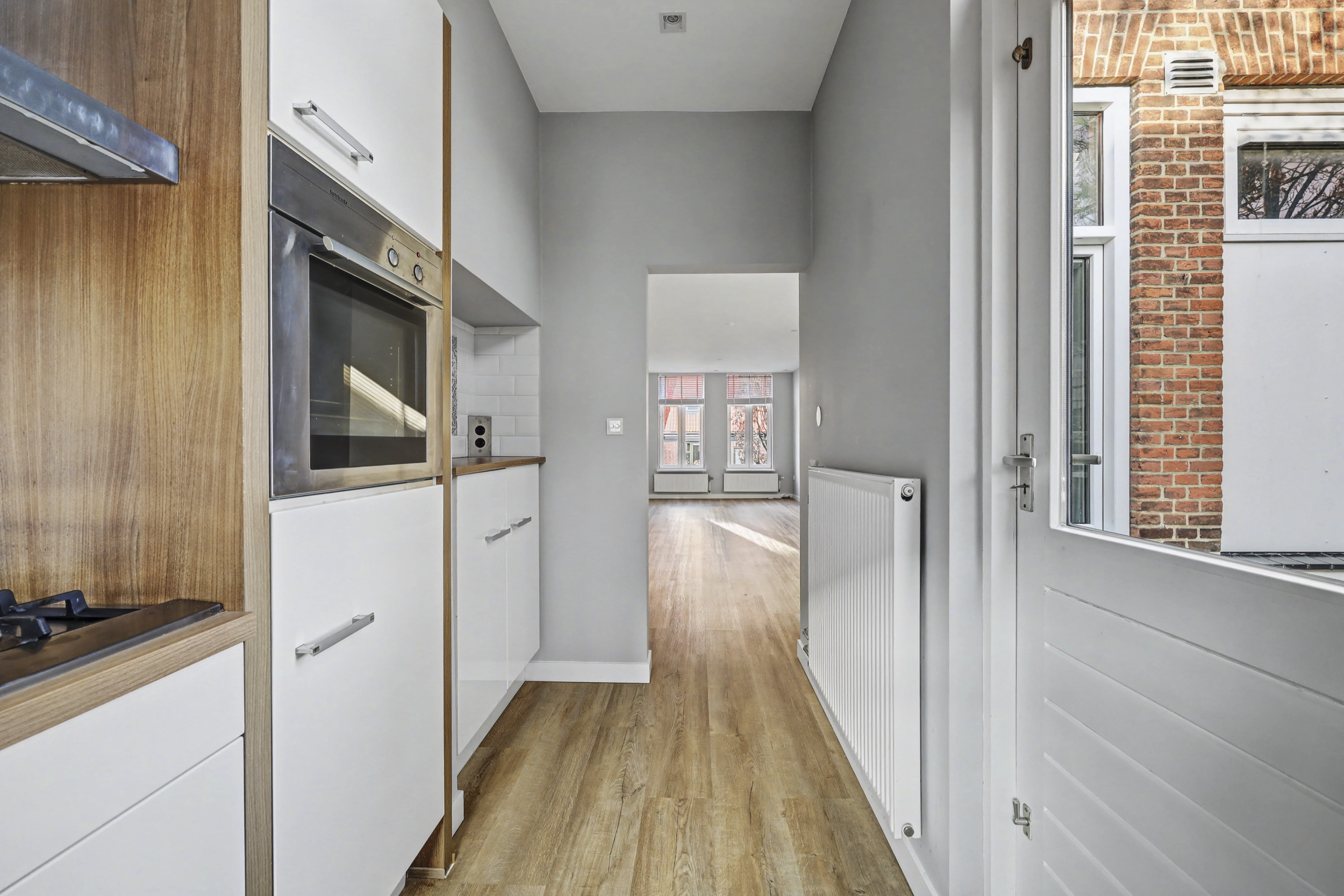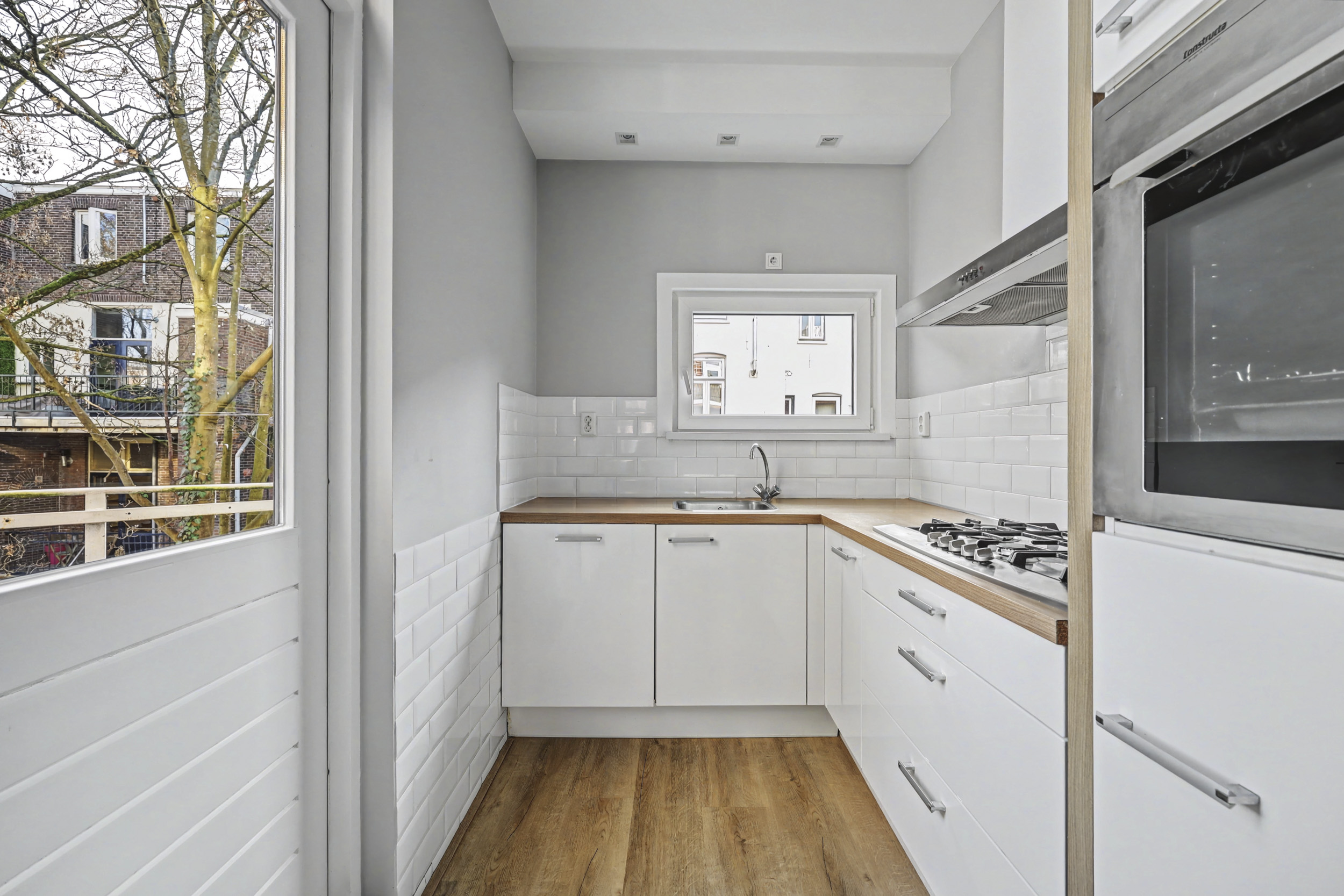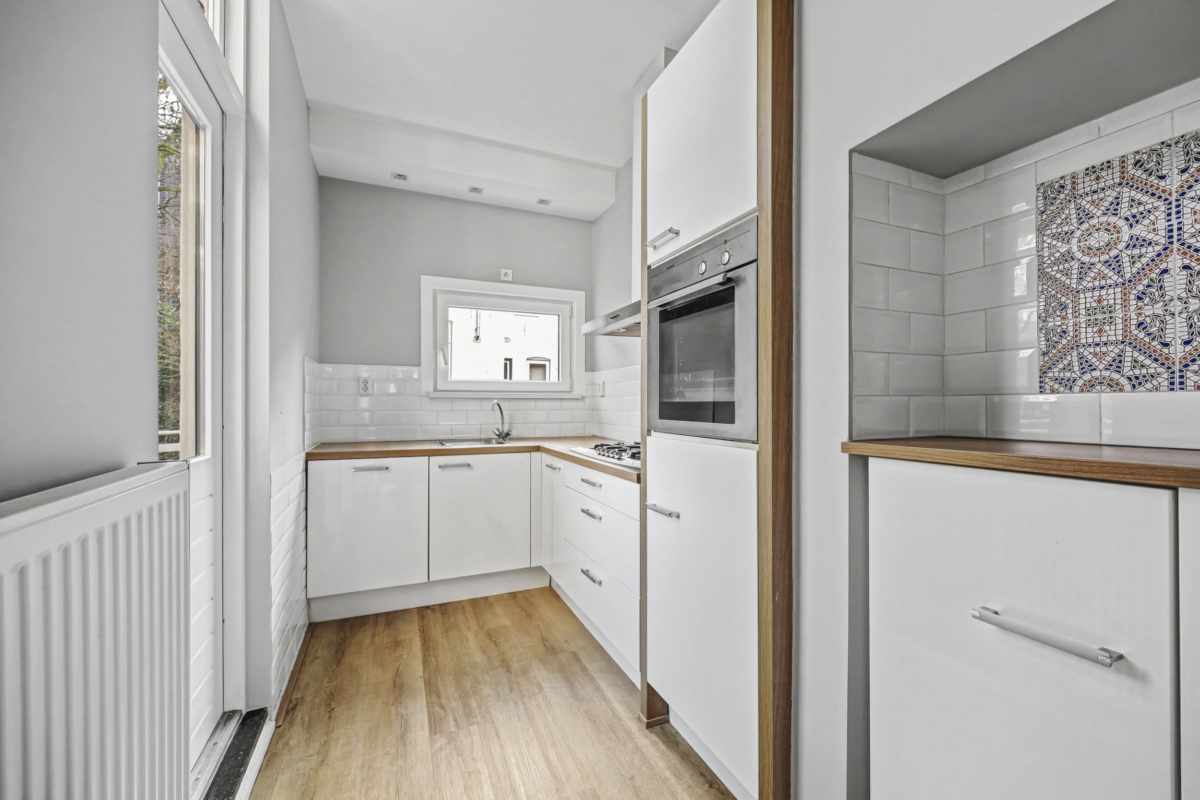 De grote woonkamer is ca 32 m2 groot waarbij je zowel aan de voor- als achterzijde ramen hebt. Aan de woonkamer grenst de keuken die is voorzien van een keurige inrichting inclusief diverse inbouwapparatuur. Vanuit de keuken is het balkon bereikbaar dat gelegen is op het zuidoosten.