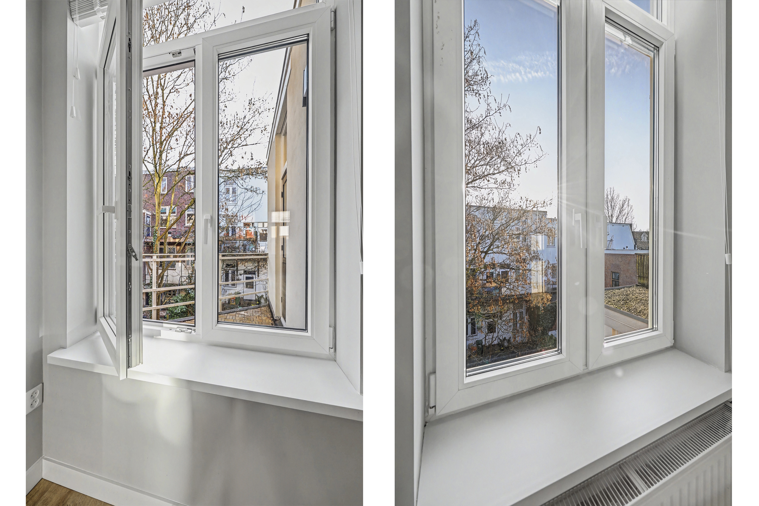 - de woning heeft veel kunststof kozijnen met triple glas (alleen de voordeur is van hout met enkel glas en de balkondeur is van hout met HR++ glas)