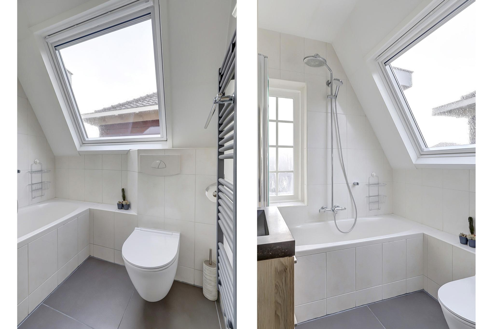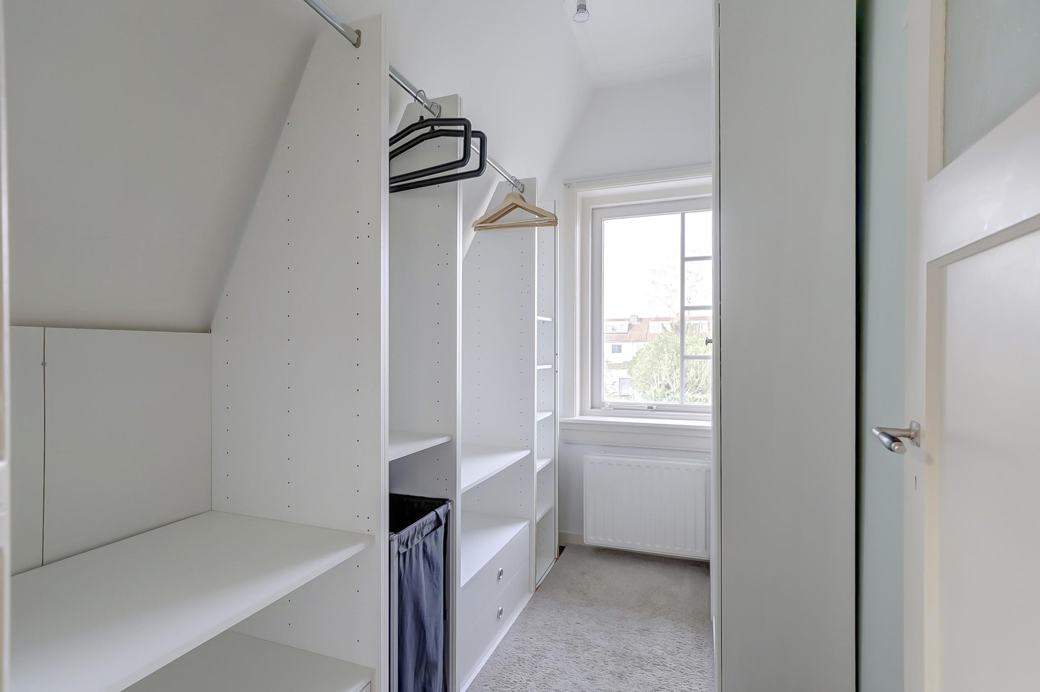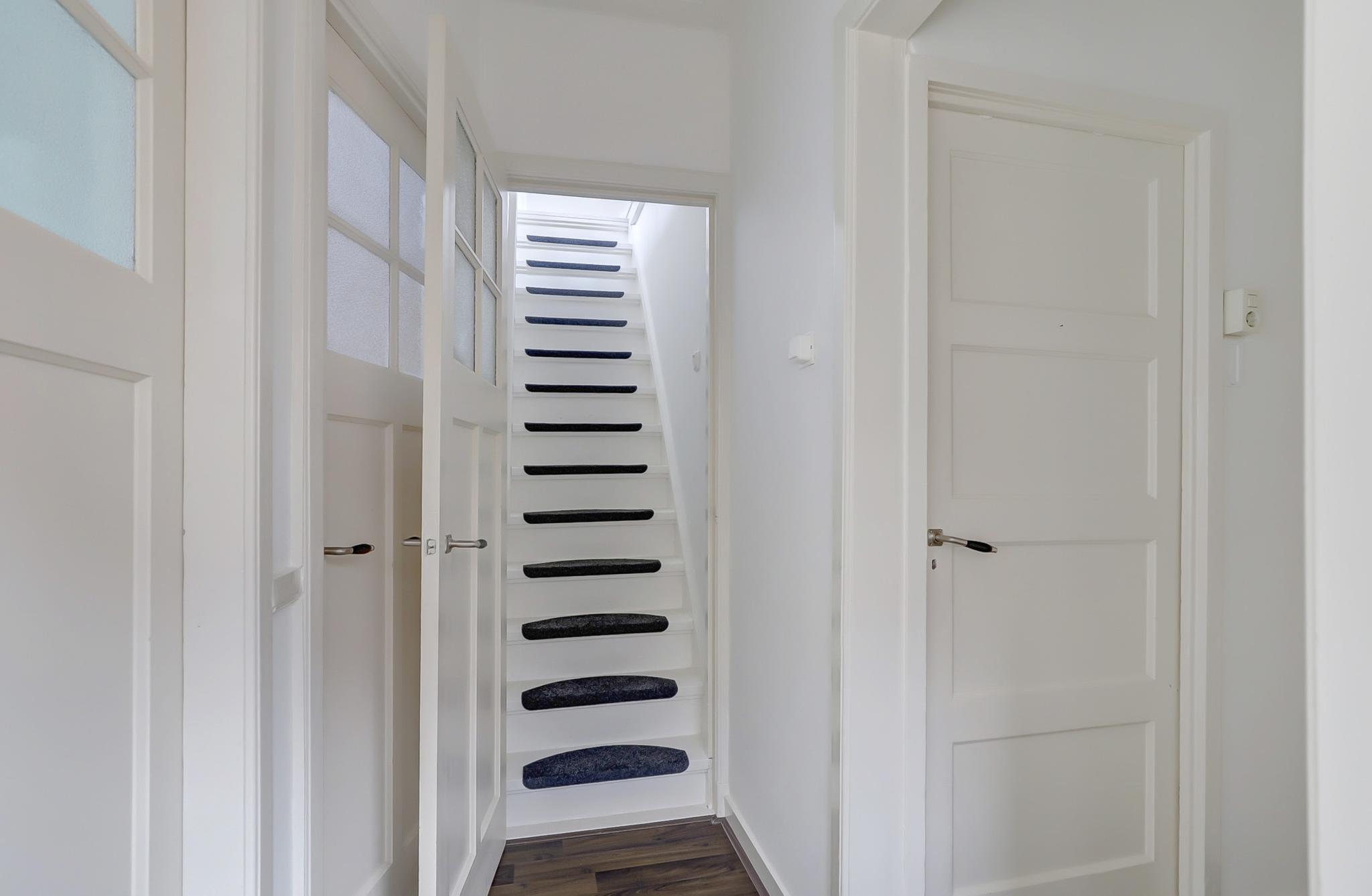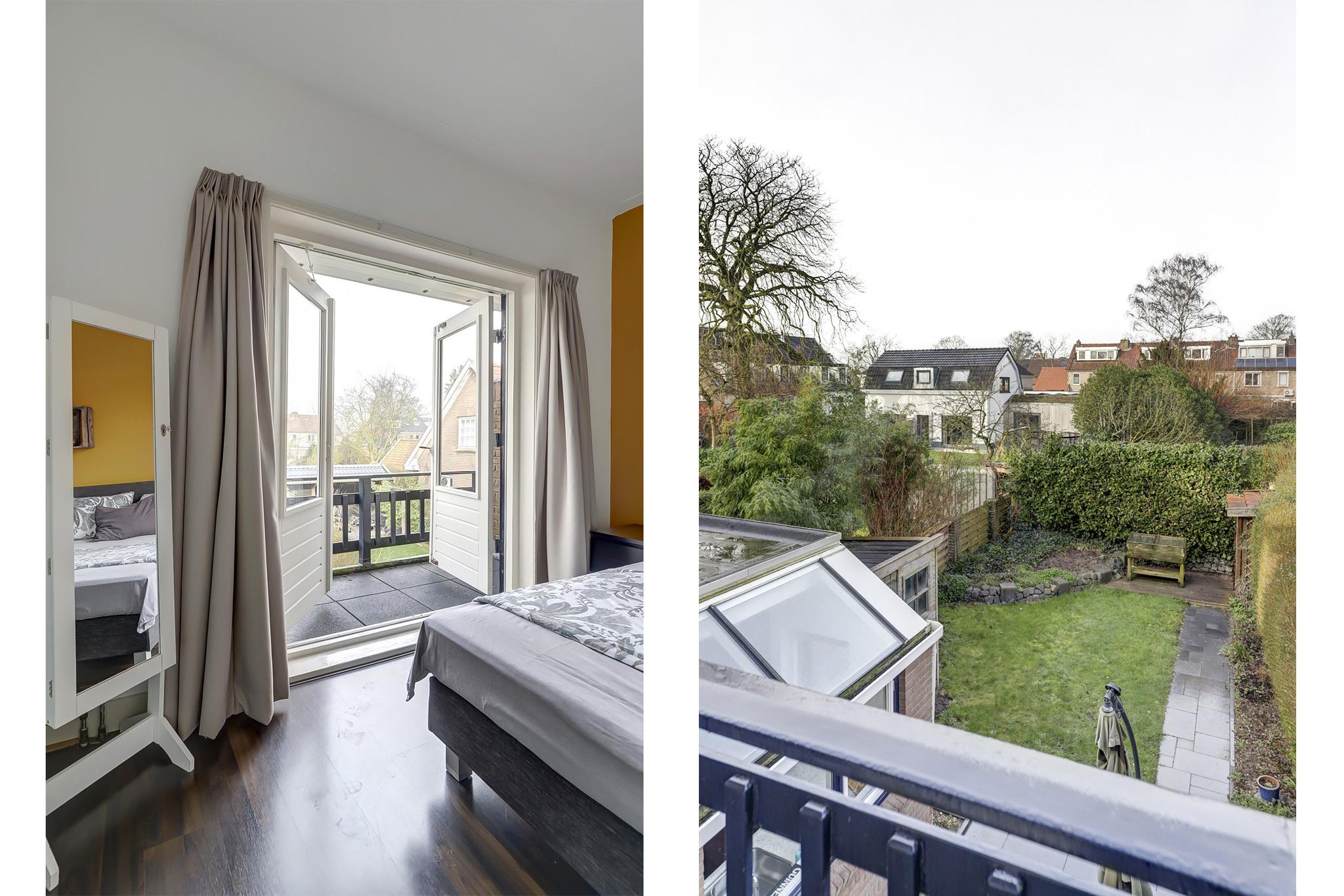 Eerste verdieping: overloop, in totaal zijn er drie slaapkamers, waarbij de kleinste slaapkamer nu in gebruik is als kledingkamer. Vanuit de grote slaapkamer aan de achterzijde kom je op een balkon uit. De moderne badkamer is voorzien van een ligbad/douche, wc en wastafelmeubel.