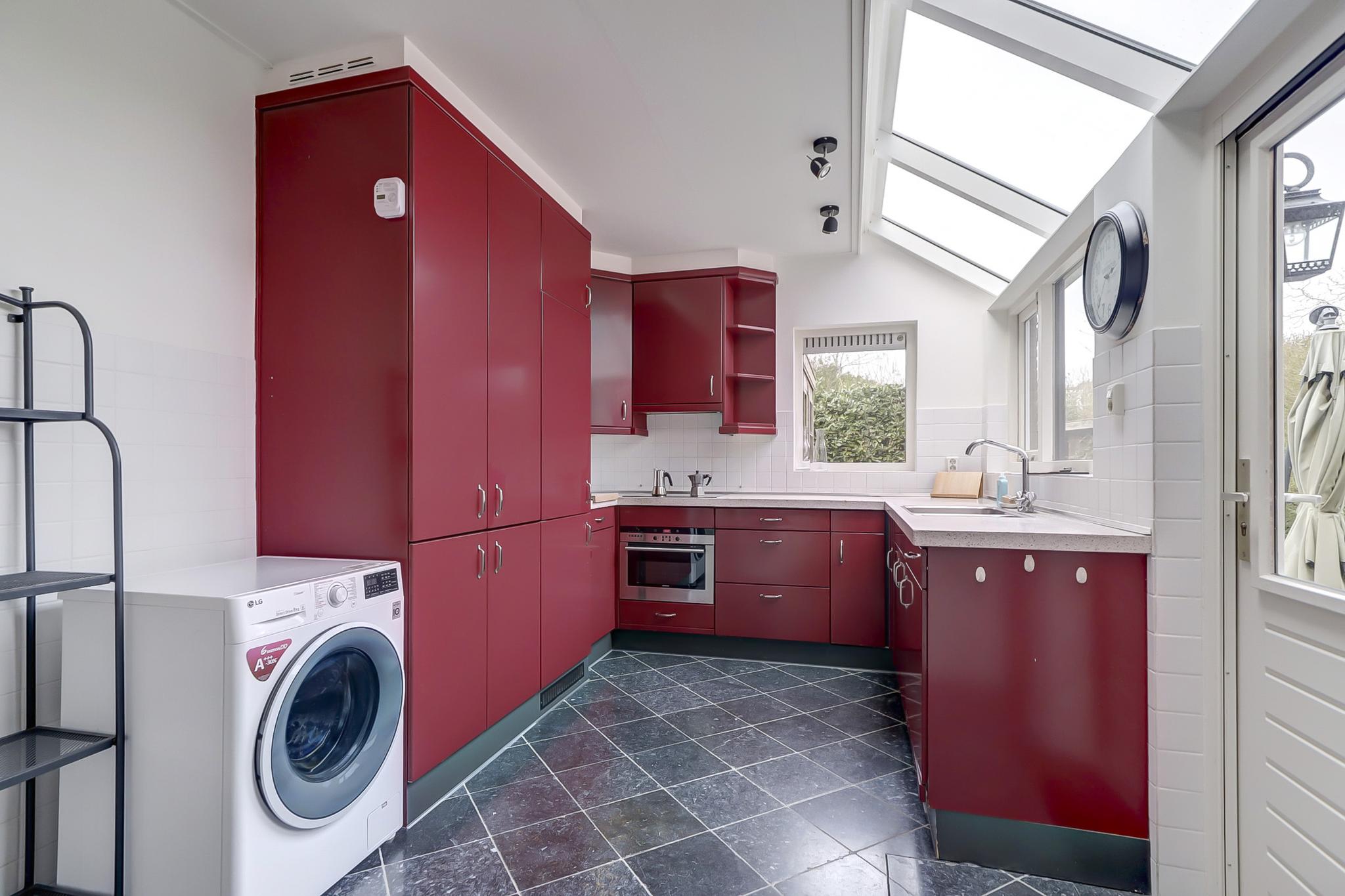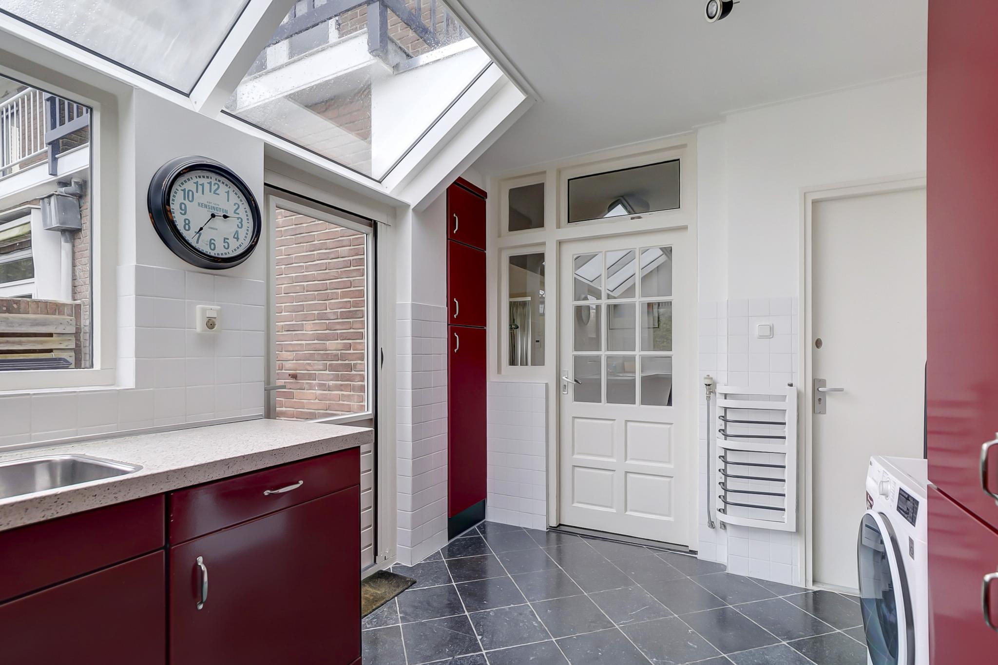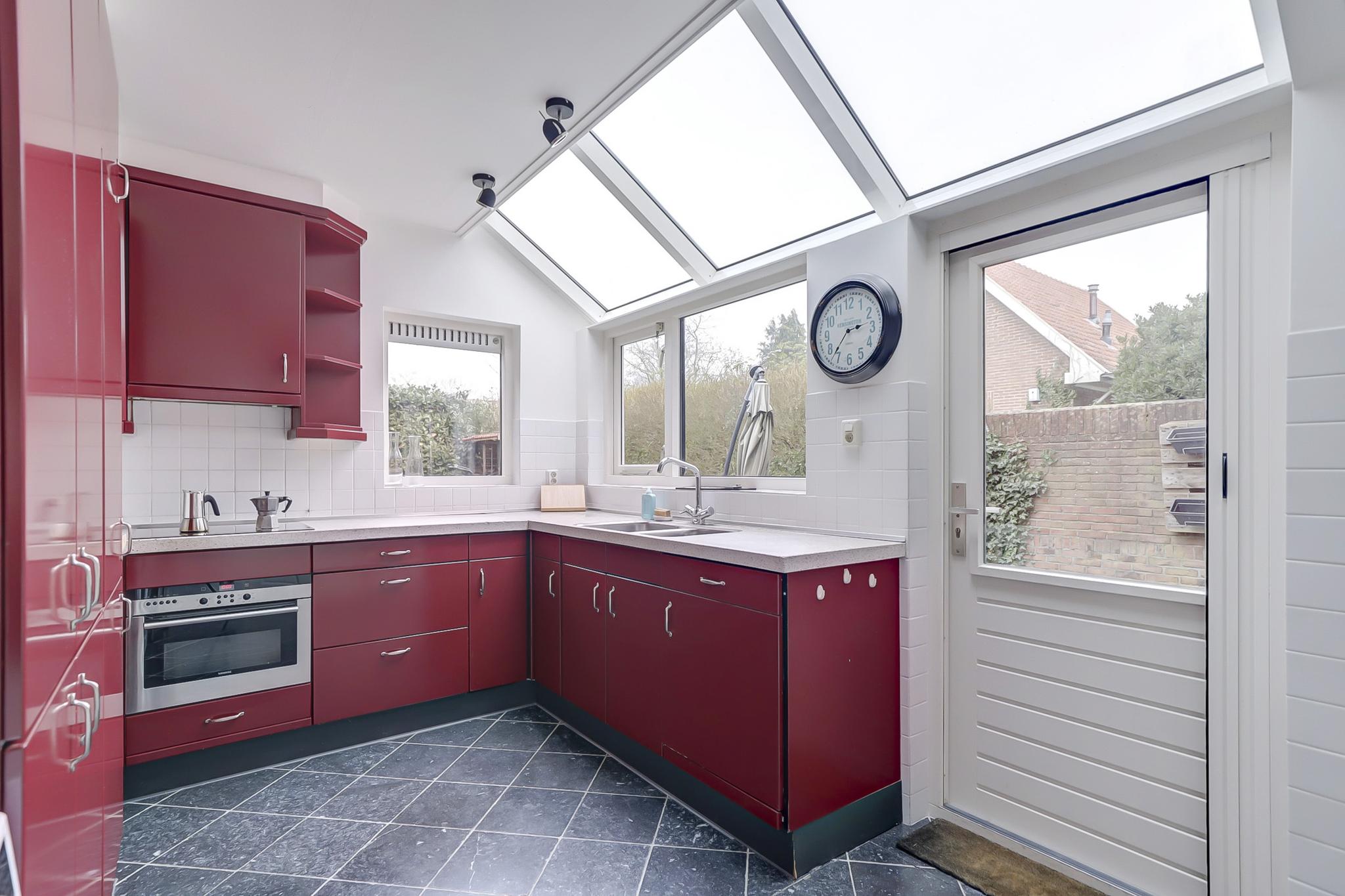 De dichte keuken is in 2017 deels voorzien van nieuwe inbouwapparatuur. Een deur naar de berging aan de voorzijde van de woning geeft toegang tot de fietsen en voorziet in een achterom.