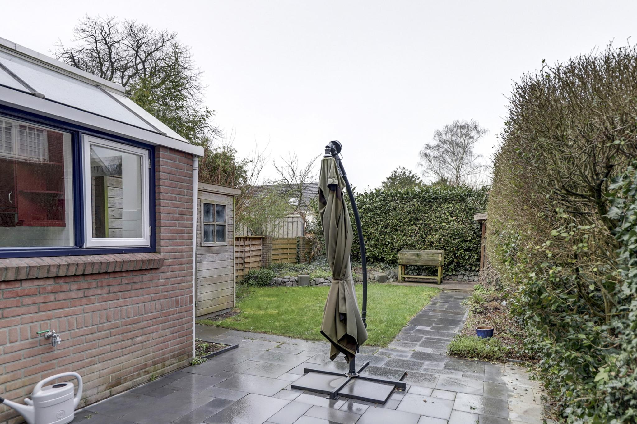 De achtertuin is volledig omsloten, ligt op het westen en is circa 13 meter diep. Doordat er aan de achterzijde niet direct een andere woning is gelegen geniet je van veel privacy in de tuin. In de tuin staat nog een tuinhuisje voor het opbergen van het tuingereedschap.