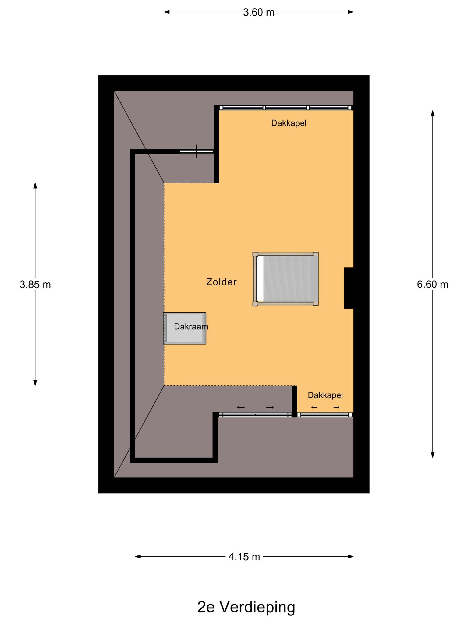 Tweede verdieping: deze verdieping biedt ruimte aan de vierde slaapkamer of kan perfect dienst doen als werkkamer en wordt door de dakkapel en de twee dakramen lekker licht en speels. Achter de knieschotten vind je nog de nodige bergruimte.