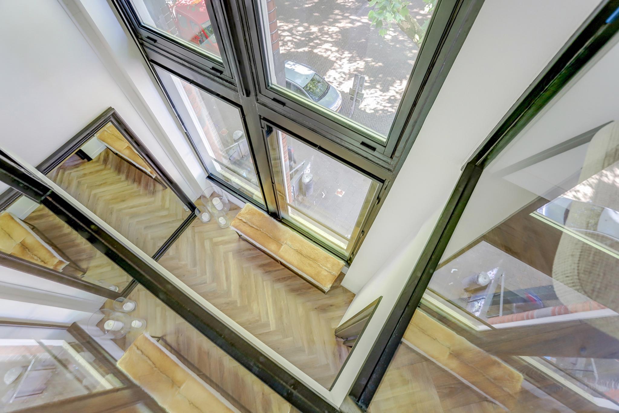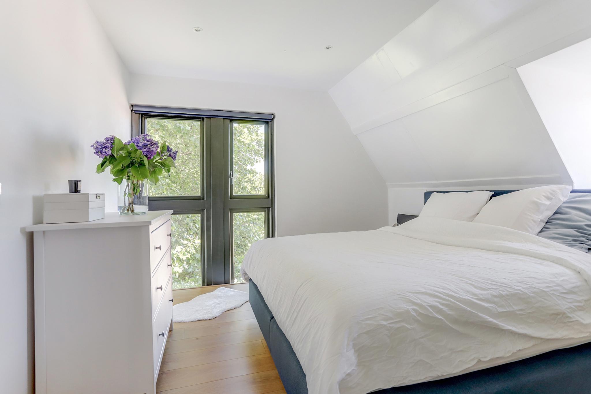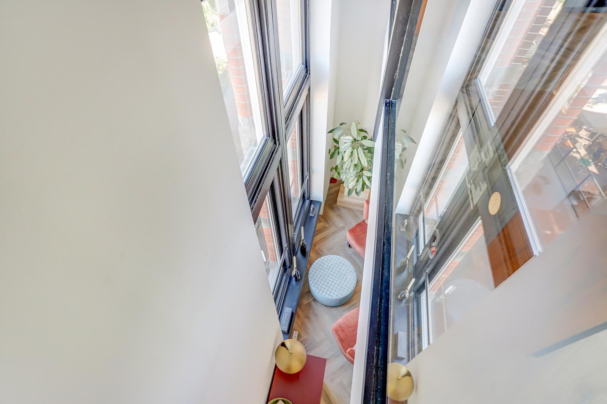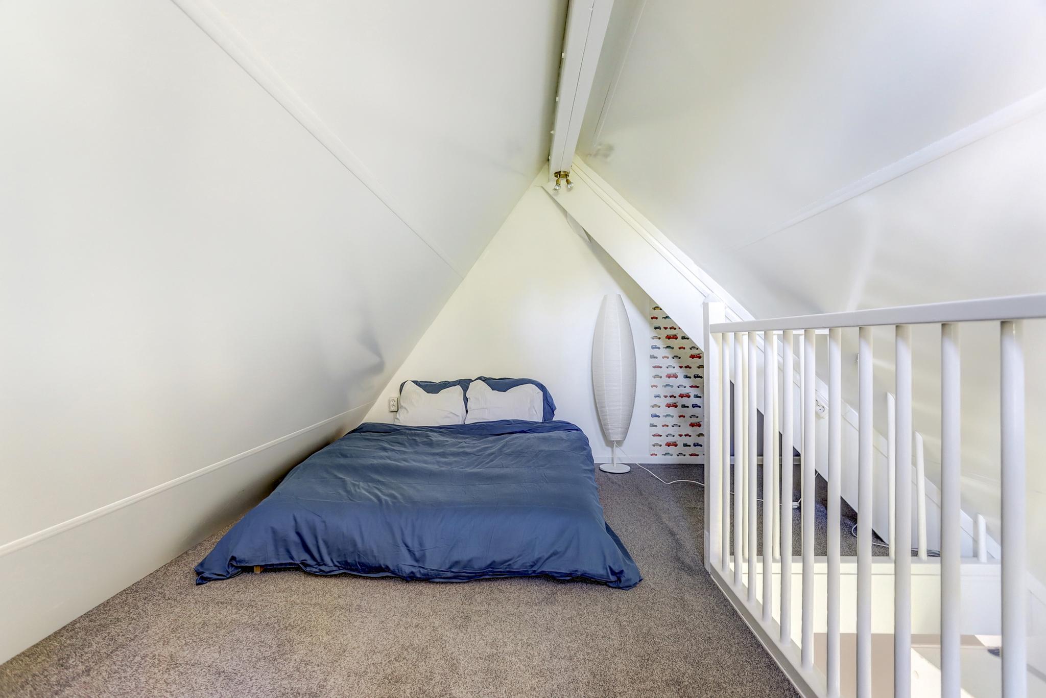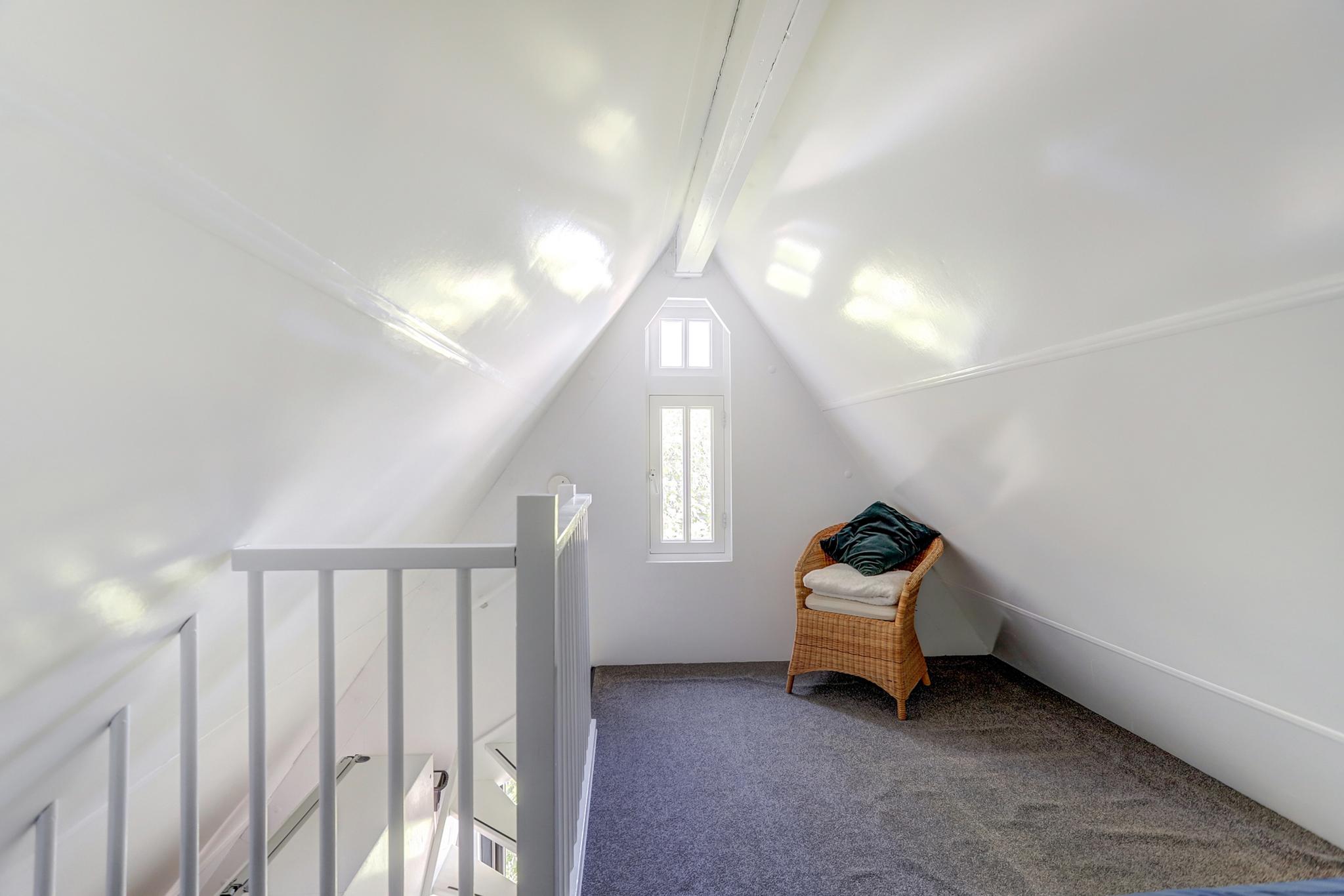 Vierde verdieping: deze verdieping is in 2019 aangebracht en is multifunctioneel; hij wordt nu als logeerkamer gebruikt, maar hij zou net zo goed als grote bergzolder of thuiswerkplek kunnen worden gebruikt. De stahoogte onder de nok bedraagt 2,4 meter.