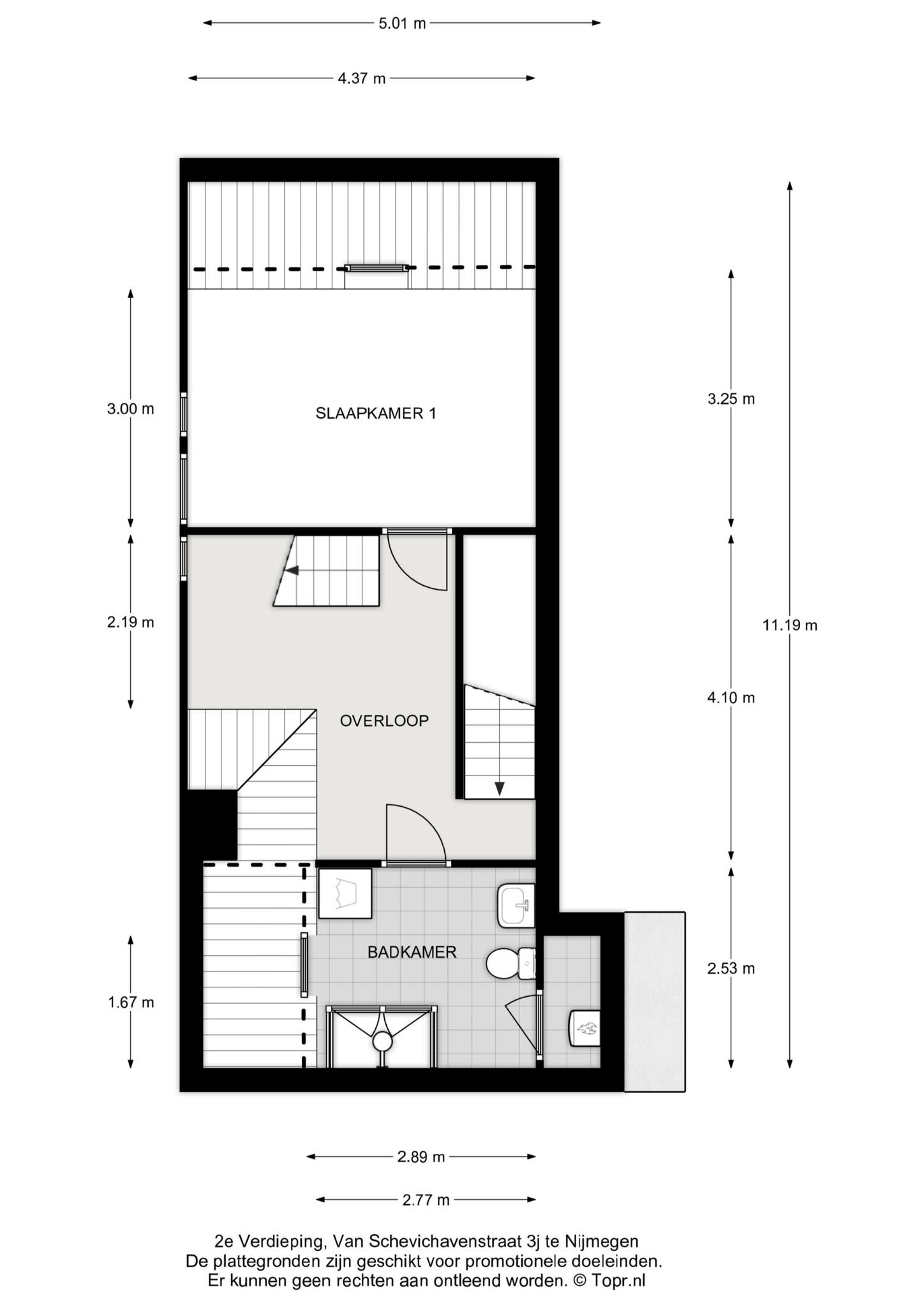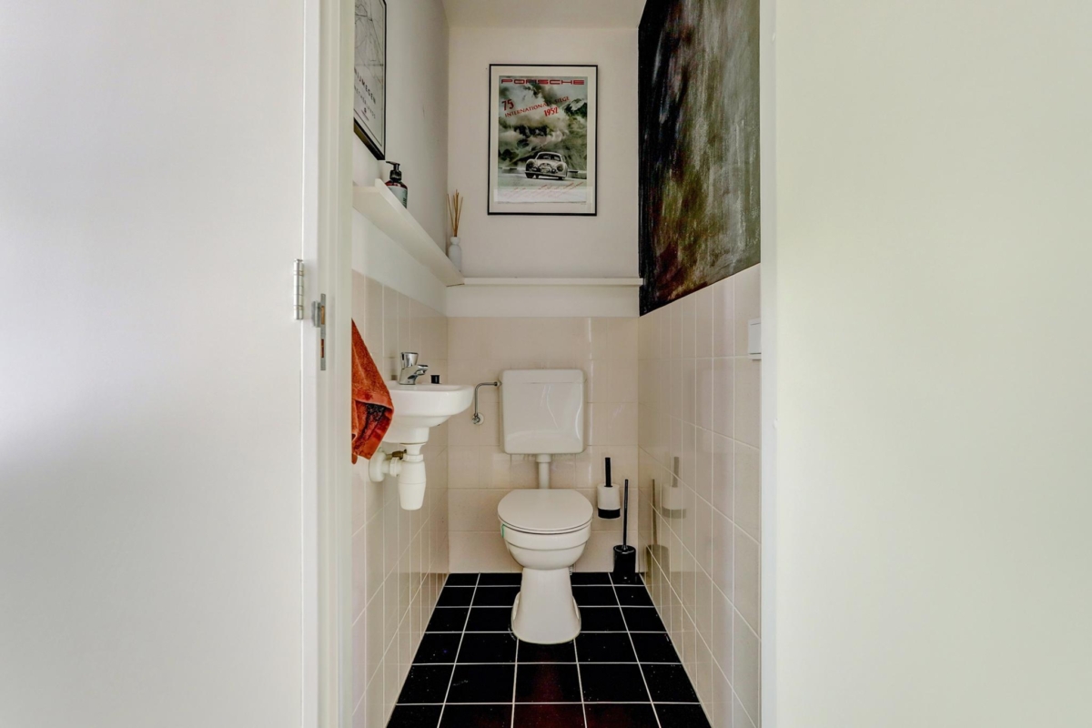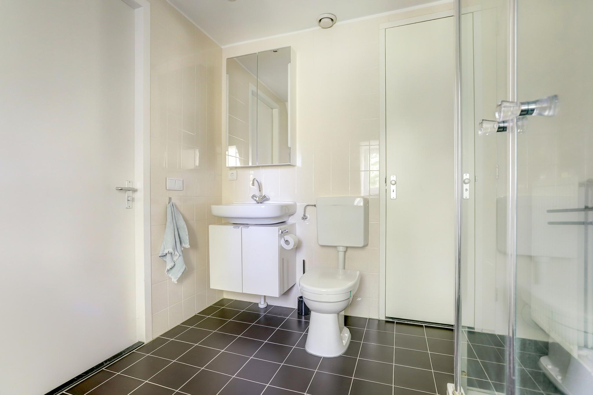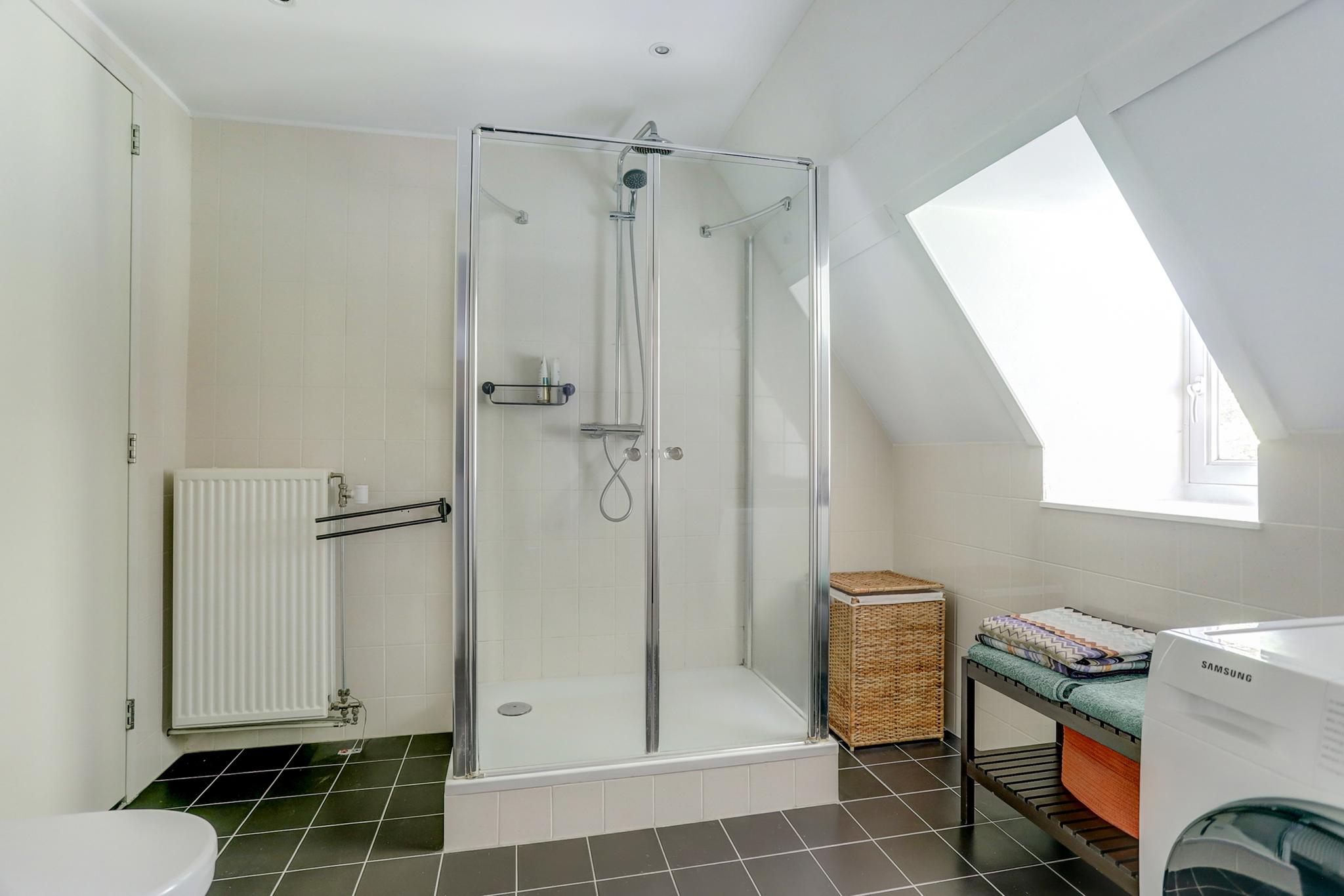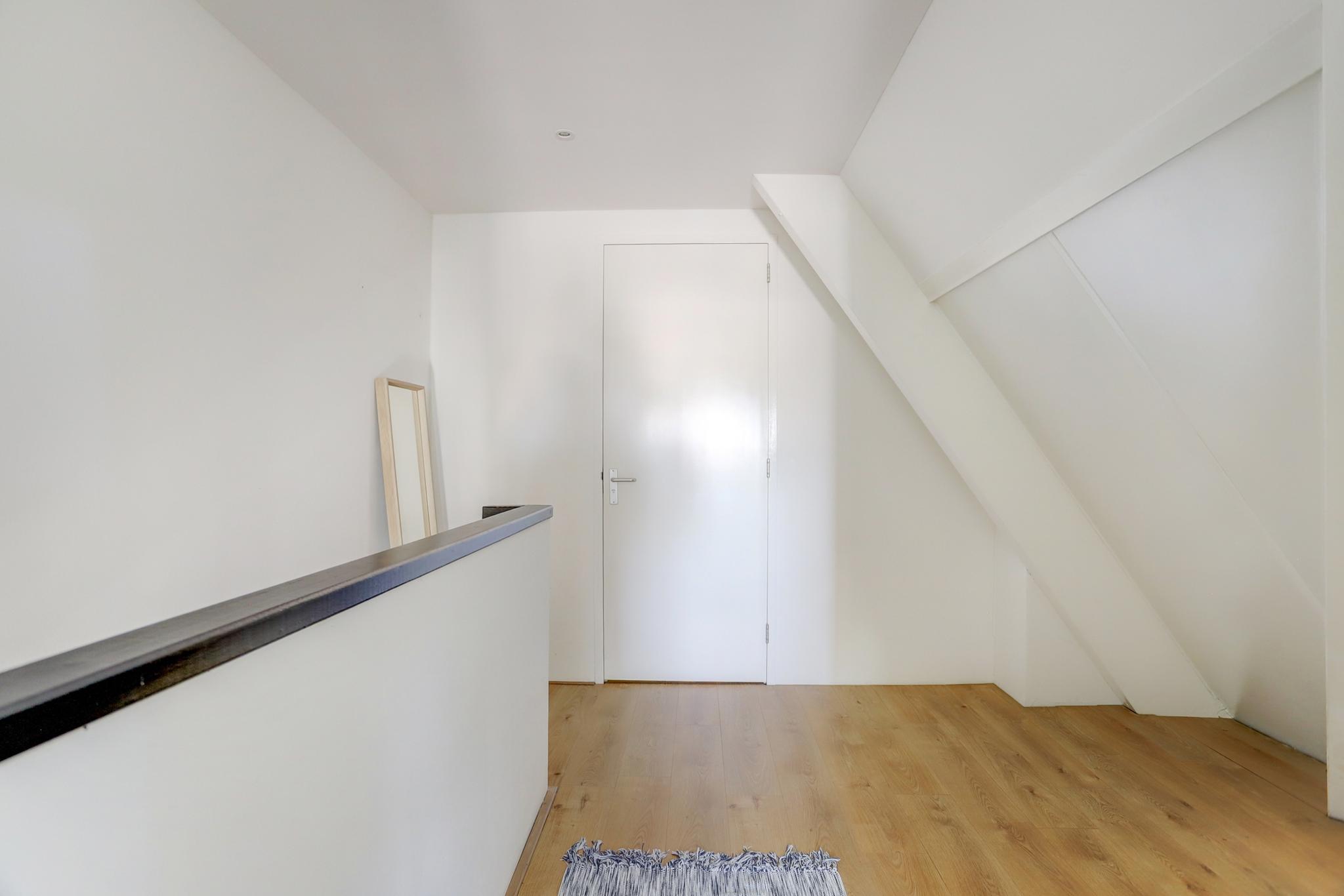 Derde verdieping: ruime overloop met veel bergingsmogelijkheden onder de schuine kap. Aan de ene kant van deze woonlaag is de keurige badkamer. Die is voorzien van een wastafel, een toilet, een douche. Tevens bevinden de wasmachine- en drogeraansluiting zich hier. Vanuit de badkamer is de cv-ruimte bereikbaar waar ook de nodige bergruimte aanwezig is.